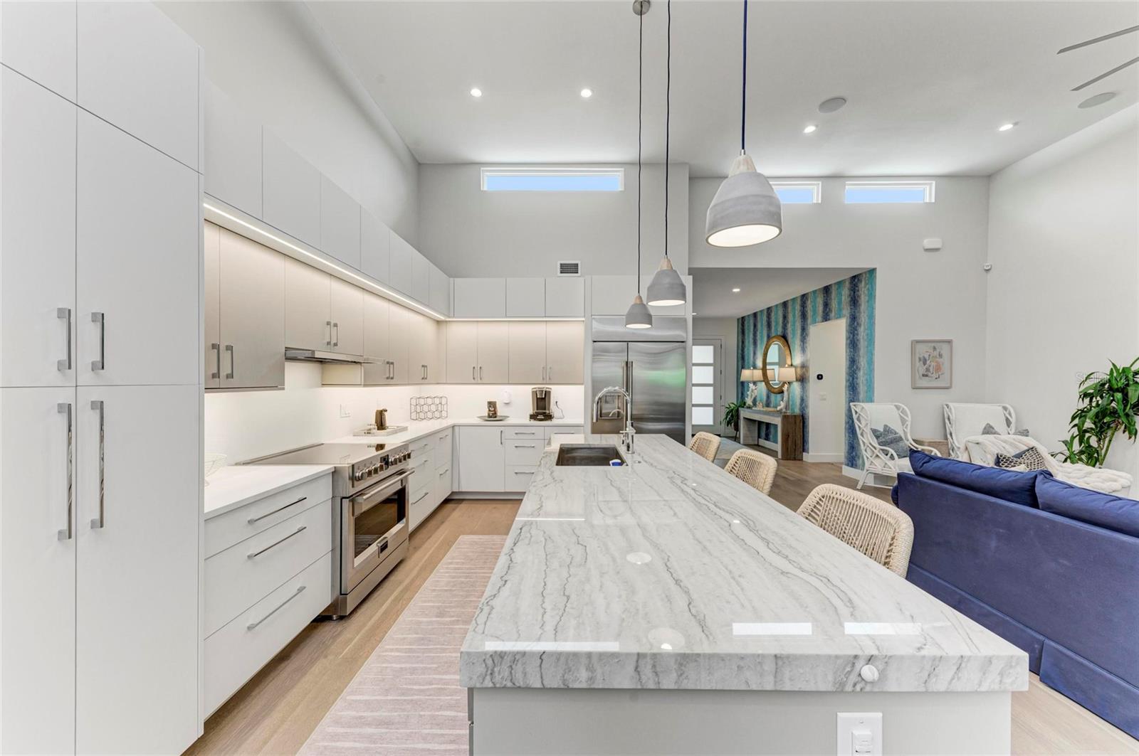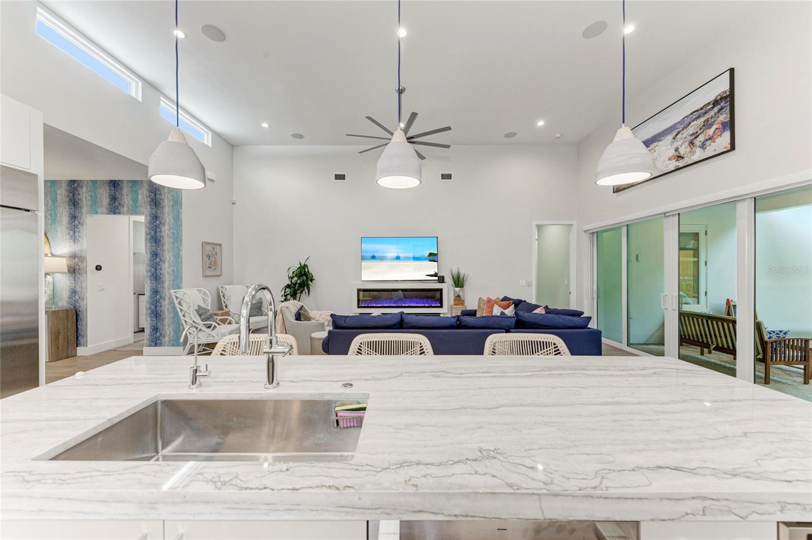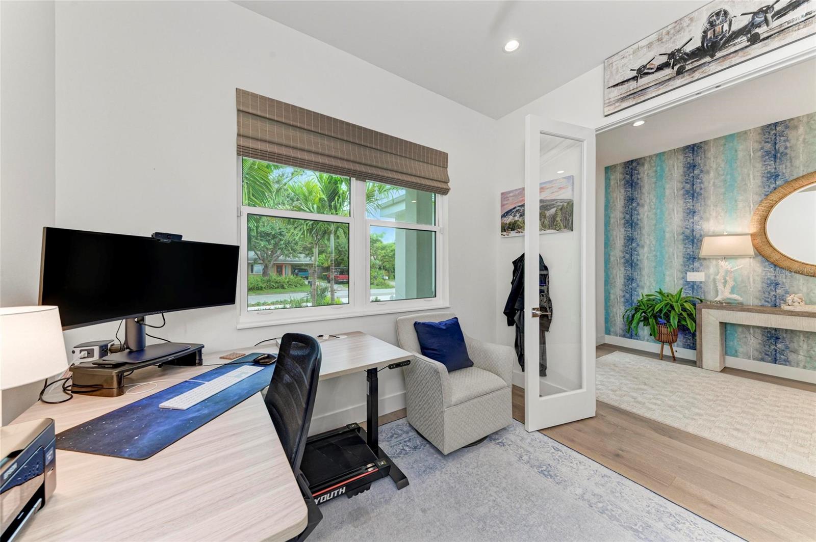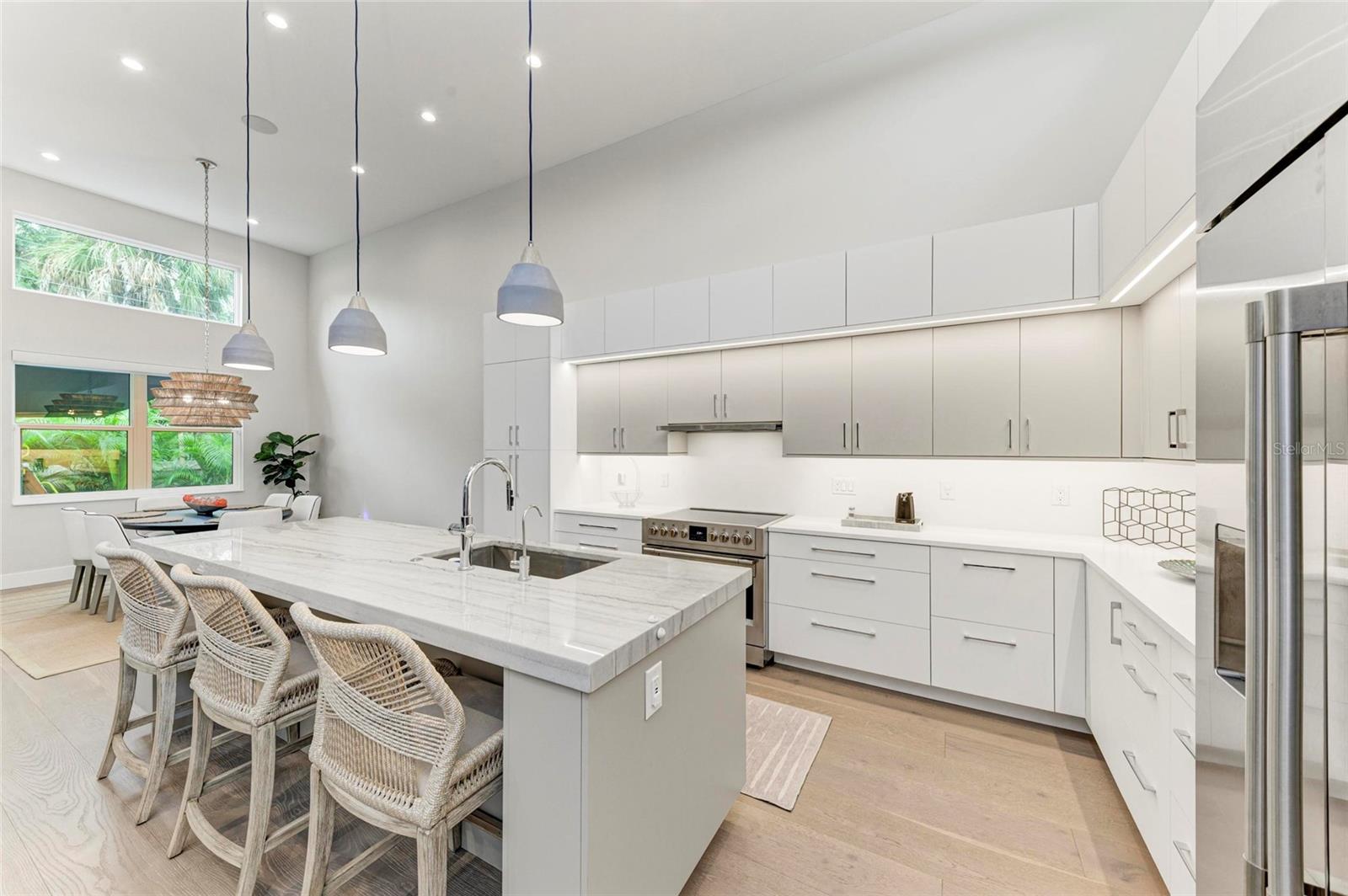Nestled in the coveted Arlington Park neighborhood, this custom-designed home seamlessly blends modern elegance with premium upgrades. The open-concept layout centers around a stunning great room and a state-of-the-art modern kitchen, featuring sleek Monogram appliances, updated pendant lighting, and ample space for entertaining. Boasting 3 bedrooms, 2.5 baths, a den, and a 2-car garage, this residence offers 2,205 SqFt of heated living space and a total area of 2,926 SqFt. Recently refreshed with new interior/exterior paint, new gutters, a $50,000 professional landscaping package, outdoor lighting, security cameras, and a 6-ft privacy fence, it creates a tranquil, low-maintenance retreat. Luxurious interiors include Carrier AC, Kohler fixtures, a smart mirror in the primary bath, custom closets, smart blinds in living/dining areas, and custom window treatments throughout. Enhanced with dimmable lighting, wallpaper accents, and built-in speakers in the living room, primary suite, and lanai, this home exudes sophistication. Conveniently located near Arlington Park's aquatic center, trails, and tennis courts, and just minutes from downtown Sarasota, Sarasota Memorial Hospital, shopping, dining, cultural venues, and Siesta Key Beach.Pool design is available