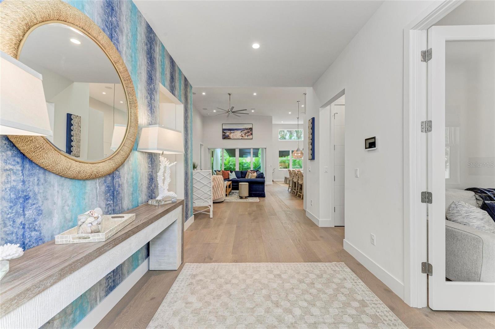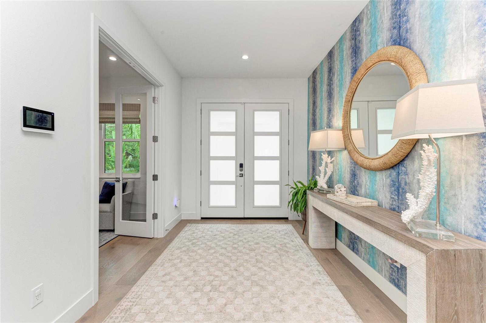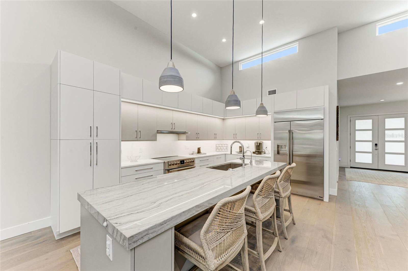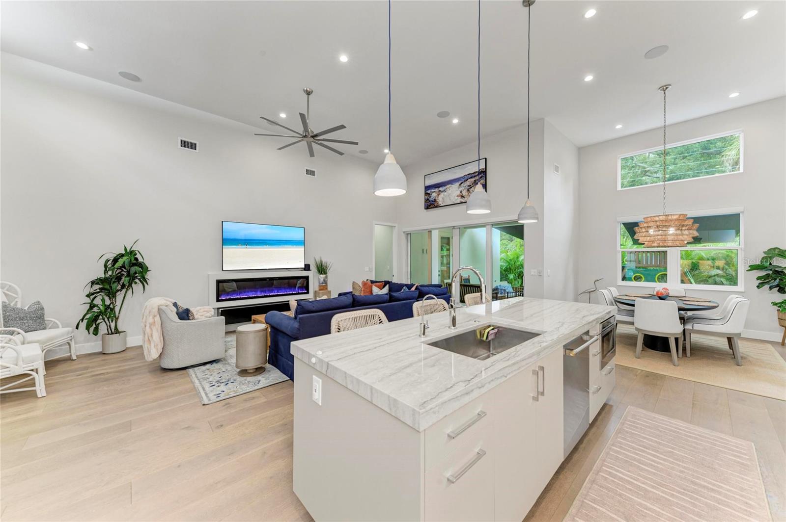 Nestled in the coveted Arlington Park neighborhood, this custom-designed home seamlessly blends modern elegance with premium upgrades. The open-concept layout centers around a stunning great room and a state-of-the-art modern kitchen, featuring sleek Monogram appliances, updated pendant lighting, and ample space for entertaining. Boasting 3 bedrooms, 2.5 baths, a den, and a 2-car garage, this residence offers 2,205 SqFt of heated living space and a total area of 2,926 SqFt. Recently refreshed with new interior/exterior paint, new gutters, a $50,000 professional landscaping package, outdoor lighting, security cameras, and a 6-ft privacy fence, it creates a tranquil, low-maintenance retreat. Luxurious interiors include Carrier AC, Kohler fixtures, a smart mirror in the primary bath, custom closets, smart blinds in living/dining areas, and custom window treatments throughout. Enhanced with dimmable lighting, wallpaper accents, and built-in speakers in the living room, primary suite, and lanai, this home exudes sophistication. Conveniently located near Arlington Park's aquatic center, trails, and tennis courts, and just minutes from downtown Sarasota, Sarasota Memorial Hospital, shopping, dining, cultural venues, and Siesta Key Beach.Pool design is available