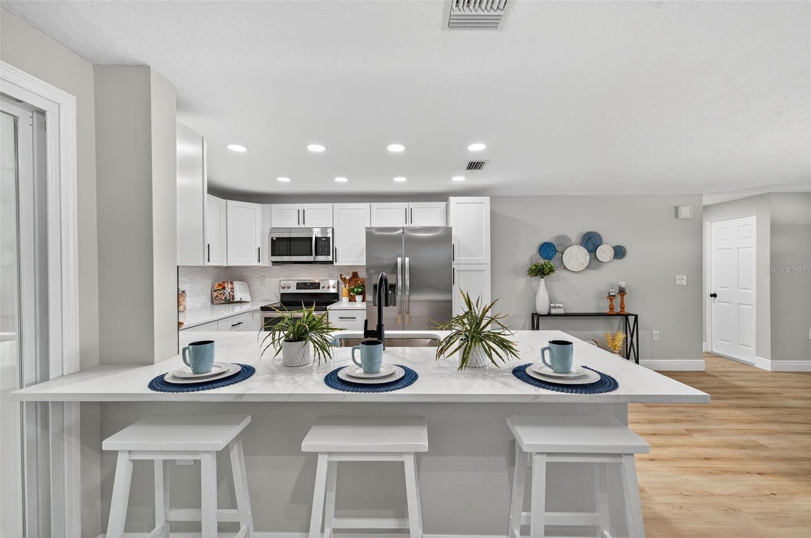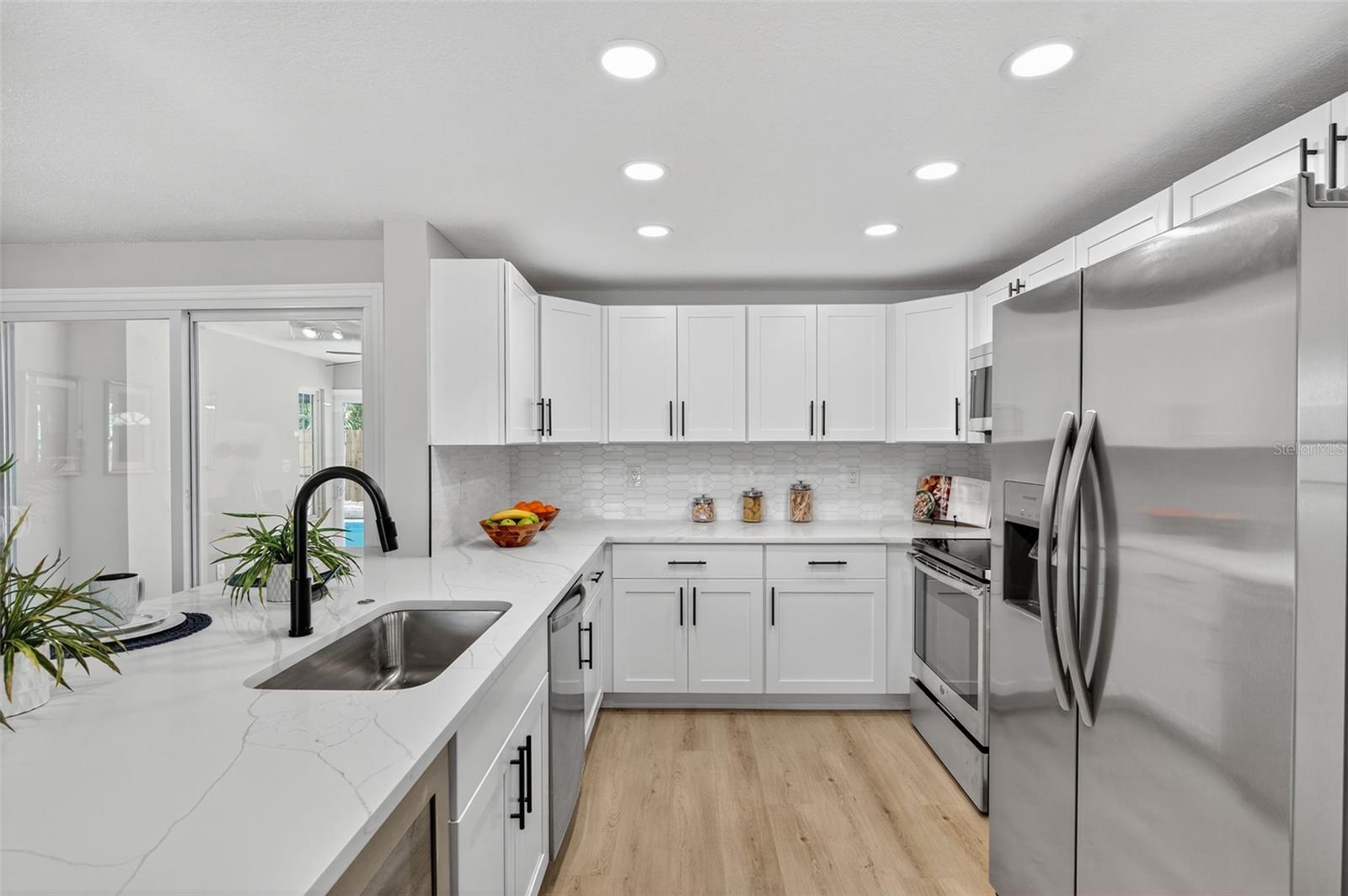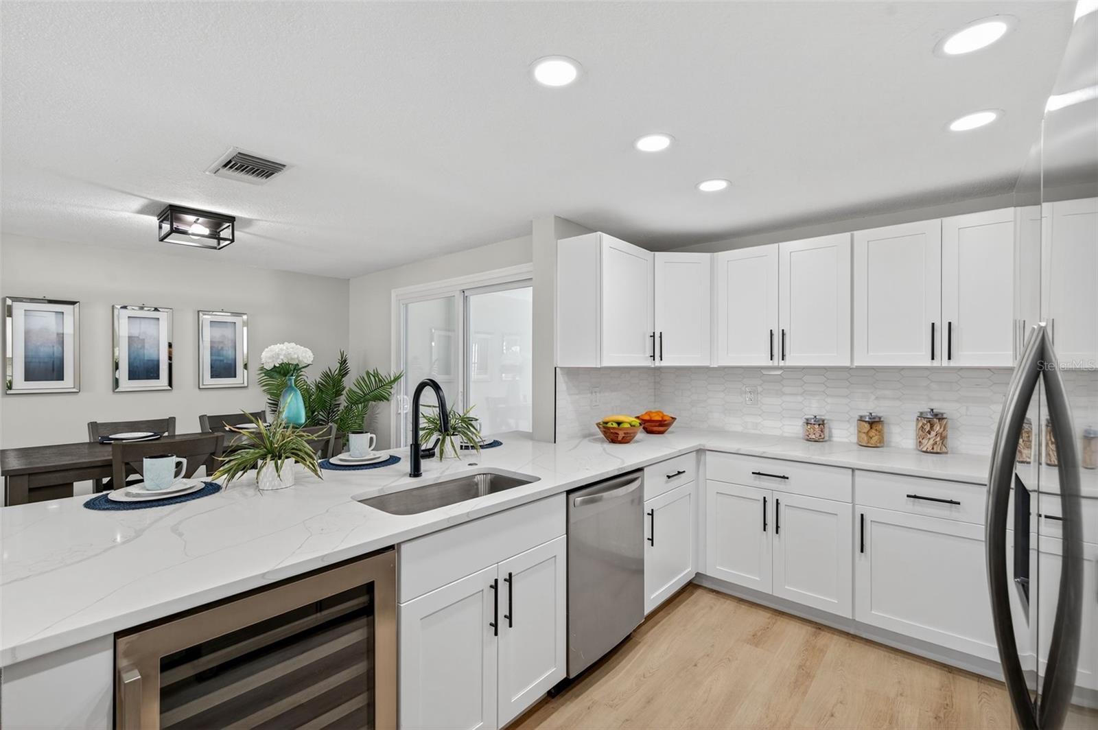 Beautifully renovated pool home. This house has received a full makeover. Updated kitchen features new cabinets, new quartz counters, new tile backsplash, stainless steel appliances and wine fridge. Bathrooms have been updated with new tile, new vanities, new fixtures, new shower door, new tub and new fixtures. New flooring, new baseboard, new light fixtures, new hardware and fresh paint throughout. Screened in pool has been resurfaced with new tile. Fenced in backyard features a shed and a gazebo. Fresh exterior paint and clean hardscaped yard. Roof was installed in 2022, AC 2022, HWH 2022 and windows and sliding doors are also newer. Bayshore Gardens has many amenities including a private marina with boat ramp and fishing pier. Conveniently located near IMG Academy, airport and beautiful beaches. This stunner will go quick!