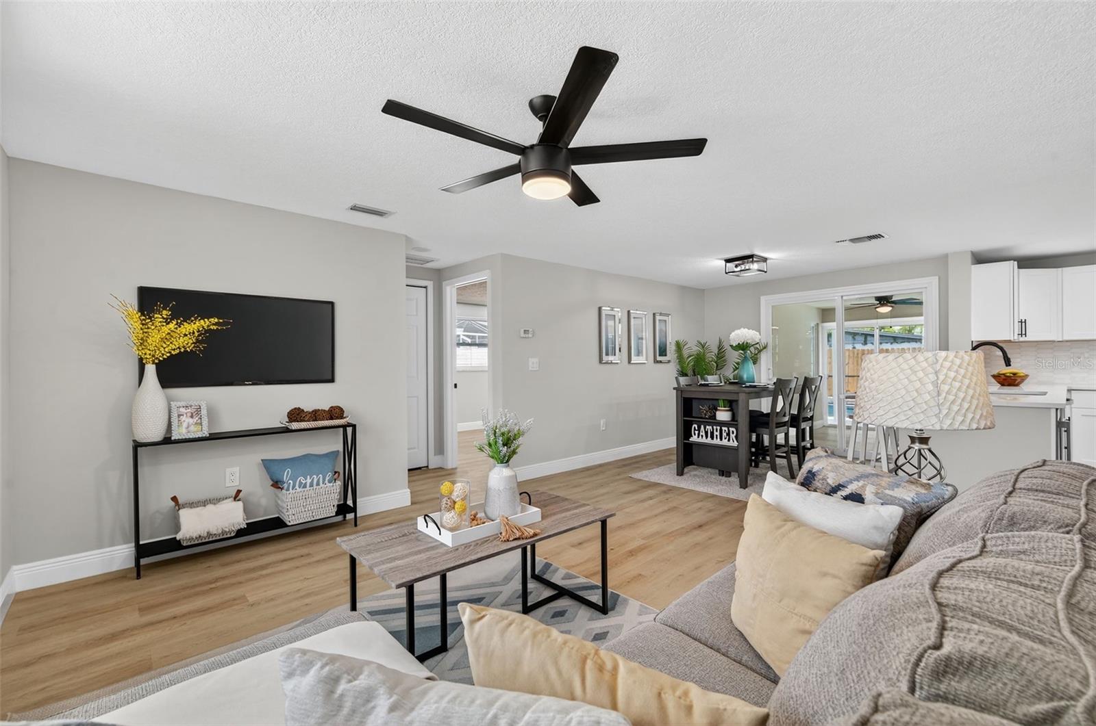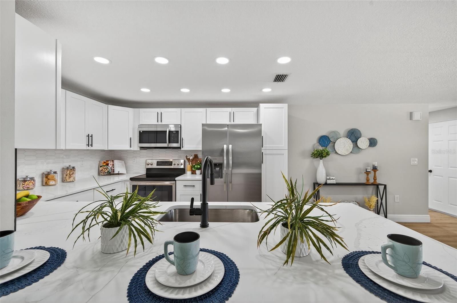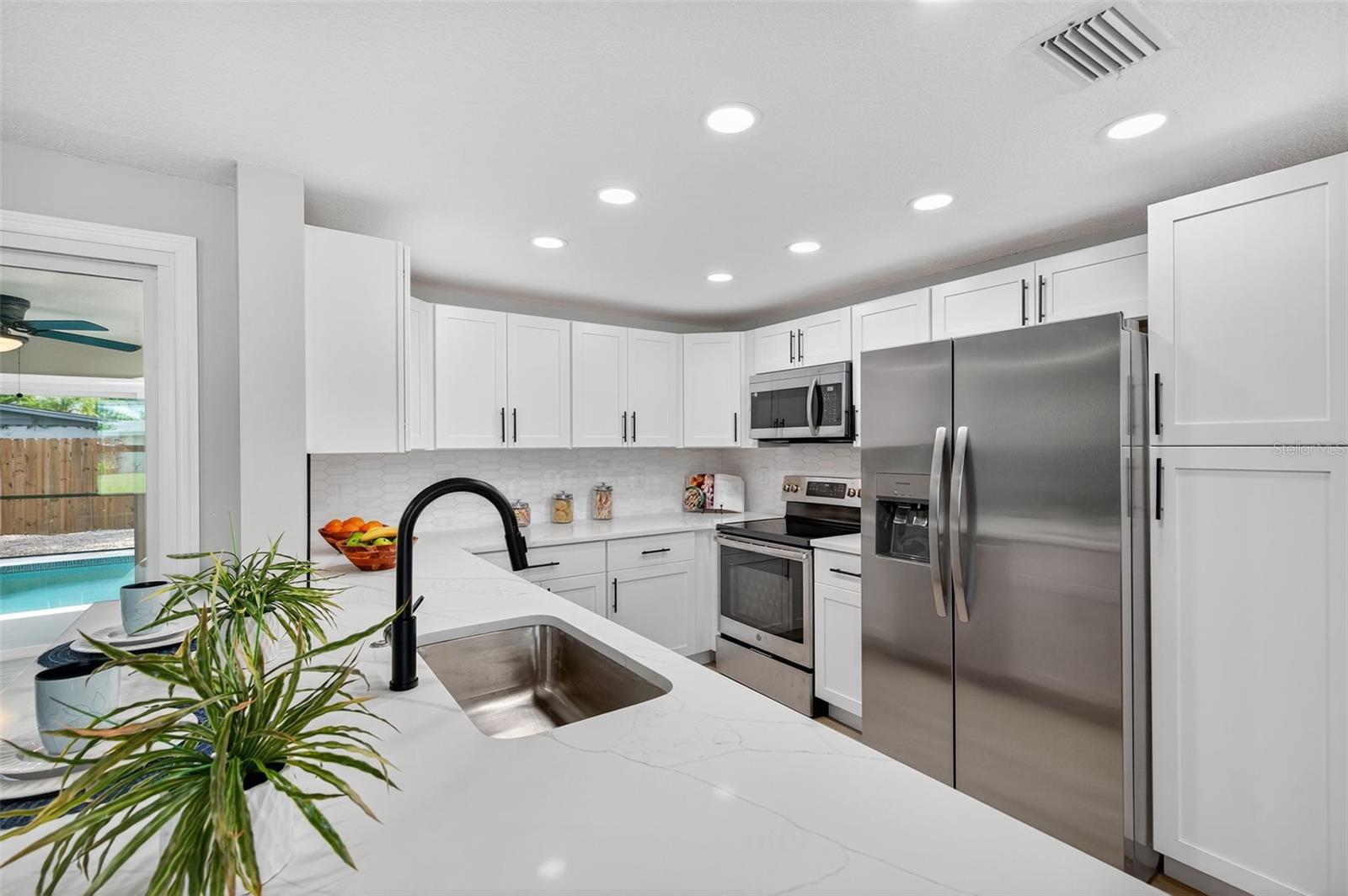 Beautifully renovated pool home. This house has received a full makeover. Updated kitchen features new cabinets, new quartz counters, new tile backsplash, stainless steel appliances and wine fridge. Bathrooms have been updated with new tile, new vanities, new fixtures, new shower door, new tub and new fixtures. New flooring, new baseboard, new light fixtures, new hardware and fresh paint throughout. Screened in pool has been resurfaced with new tile. Fenced in backyard features a shed and a gazebo. Fresh exterior paint and clean hardscaped yard. Roof was installed in 2022, AC 2022, HWH 2022 and windows and sliding doors are also newer. Bayshore Gardens has many amenities including a private marina with boat ramp and fishing pier. Conveniently located near IMG Academy, airport and beautiful beaches. This stunner will go quick!