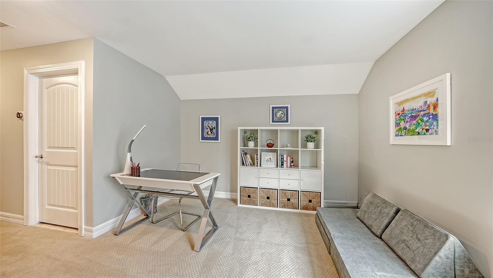 Need more room? This is the home you'll want. This expanded two story Pinnacle model, features 4 bedrooms, 4 baths, plus flex room. Quality built by Divosta/Pulte builders and maintenance free in popular Sandhill Preserve. Upon entering you'll notice the after market, upgraded glass front door. Continue on and find an en-suite bedroom on your left and flex room with french doors to your right. Then continue into the large open Kitchen, Living and Dining room which all look directly out at a lovely lake and large enclosed pavered lanai. The lanai has zero corner sliding glass doors to bring the outside to the inside during our lovely winter weather. Hookups available for an outdoor kitchen complete with gas and water and plenty of room for a pool. The gourmet kitchen has upgraded wood cabinets & stainless steel appliances along with a large middle island. First floor has upgraded wood look ceramic tile flooring in the main living areas and carpet in the bedrooms. Second floor provides an oversized loft/bonus room, bedroom and bath. Make sure to check out the extended garage with room for 3 cars. There you will find extra overhead storage, ceiling bike racks and pull down ladder for attic. There is also a Tesla charging station. Sandhill Preserve is a resort style community with state of the art clubhouse, heated pool/spa, fitness center, tennis, pickle ball and activity director. This boutique community has just 303 homes and is located next to shopping which includes Publix and a gas station. The Legacy Trail has an access very close by. It's just minutes to the world famous Siesta Key, Casey Key and Venice beaches and from the award winning Pine View School.