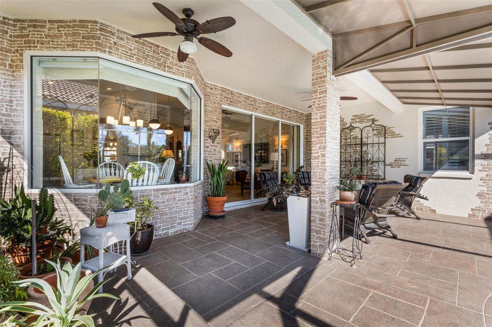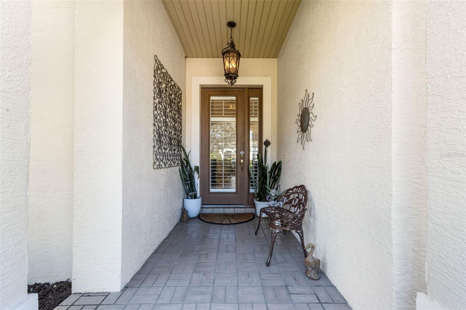 Exterior: Awning(s), Courtyard, Garden, Lighting, Private Mailbox, Shade Shutter(s), Sidewalk, Sliding Doors