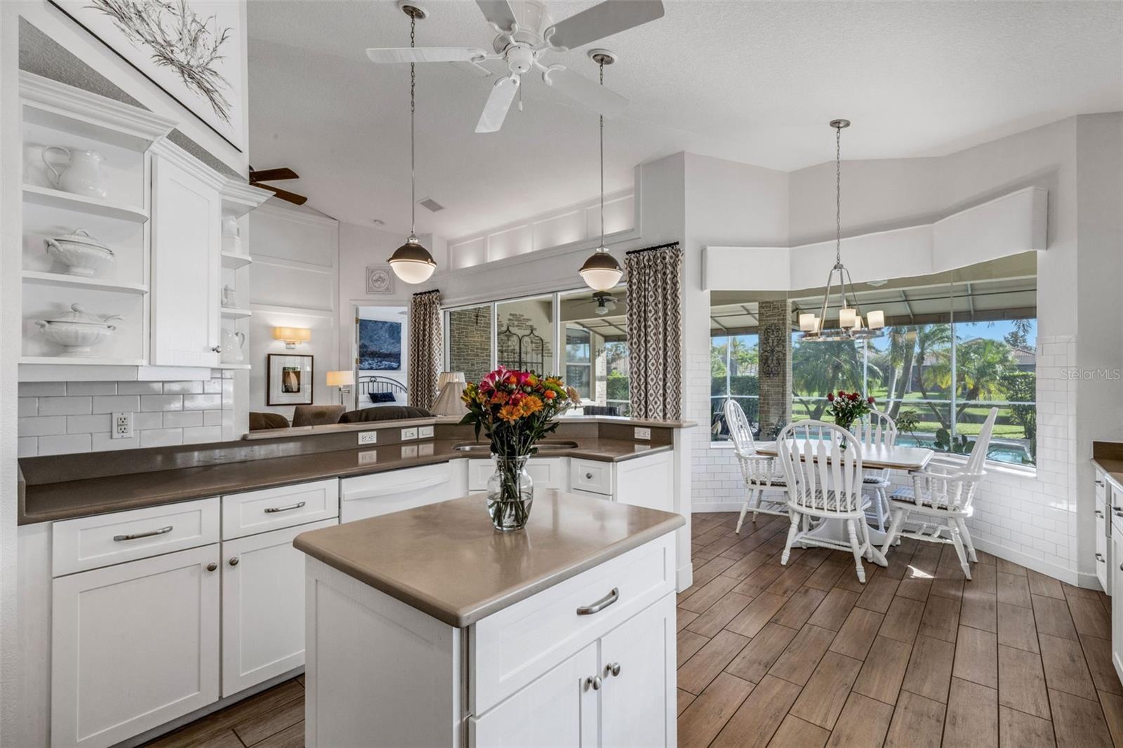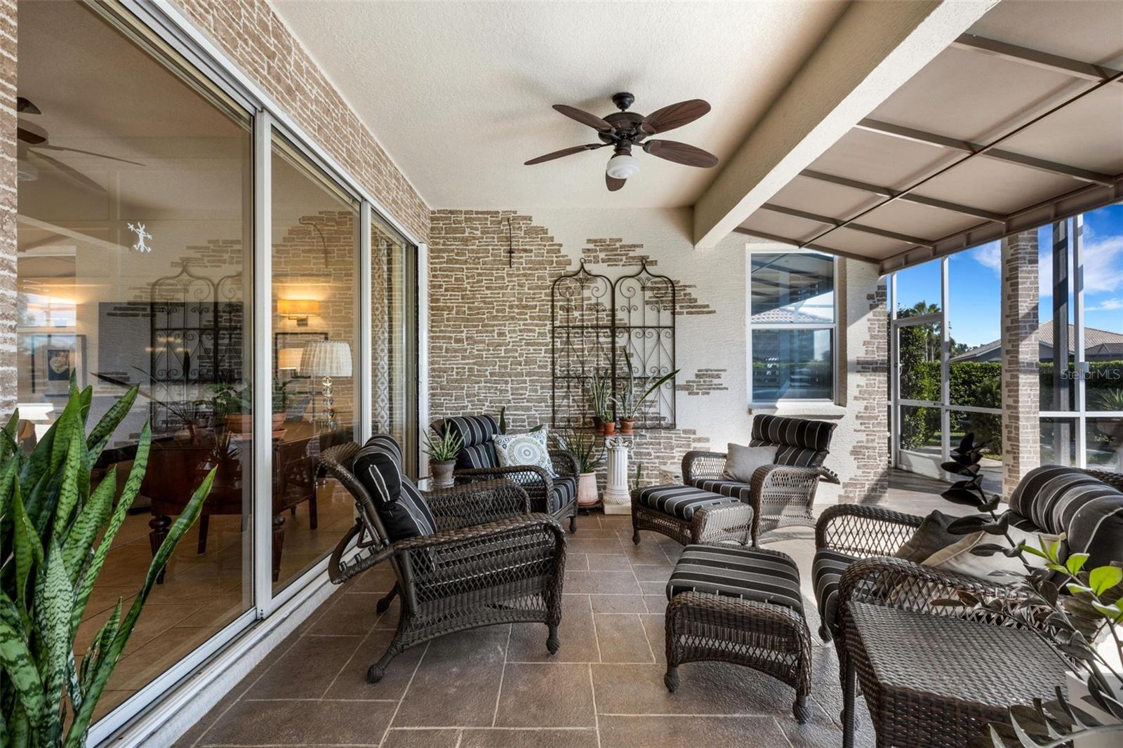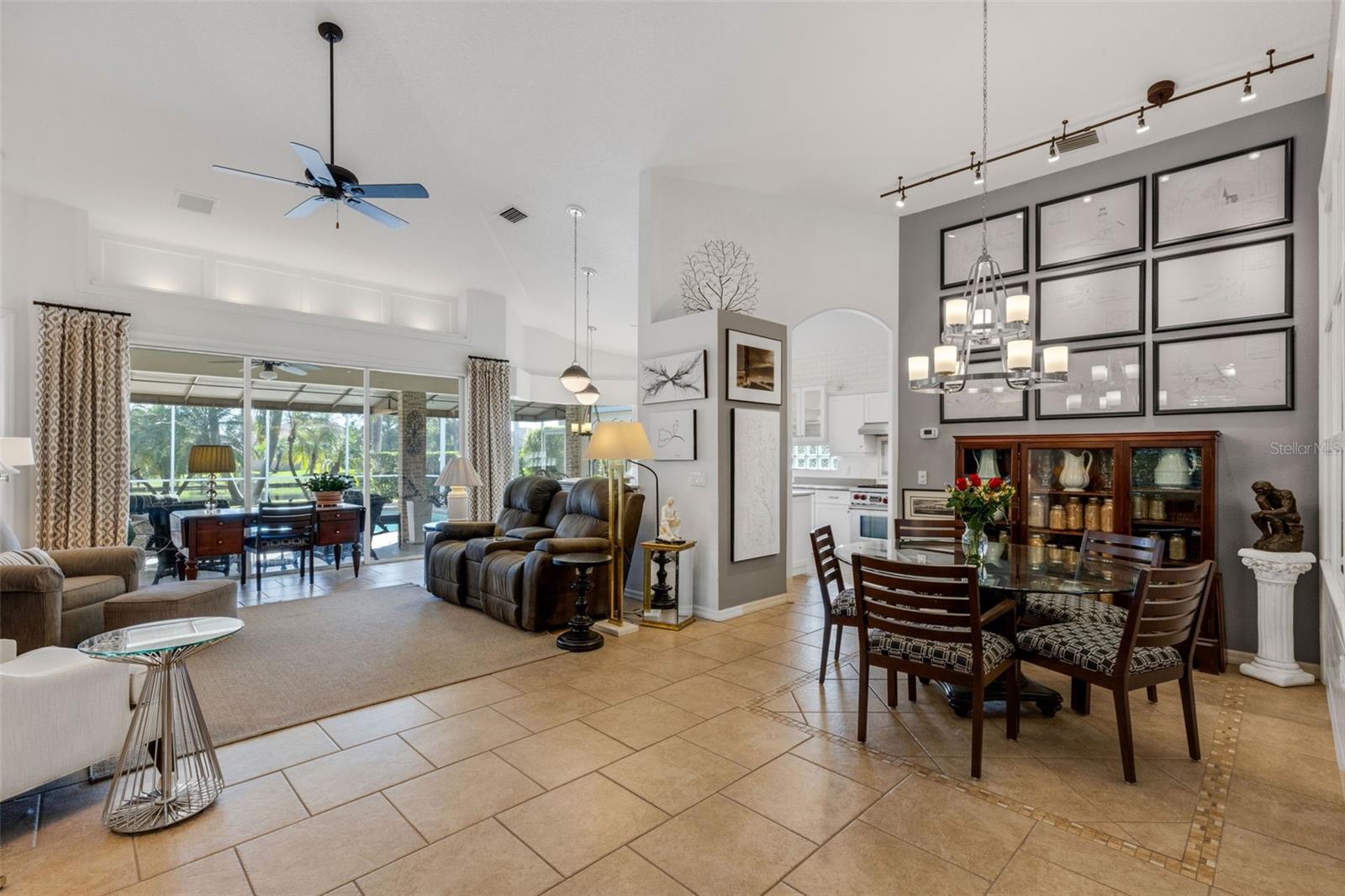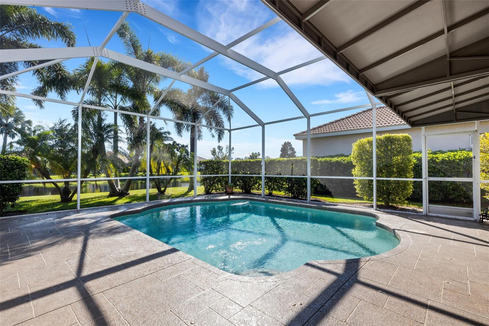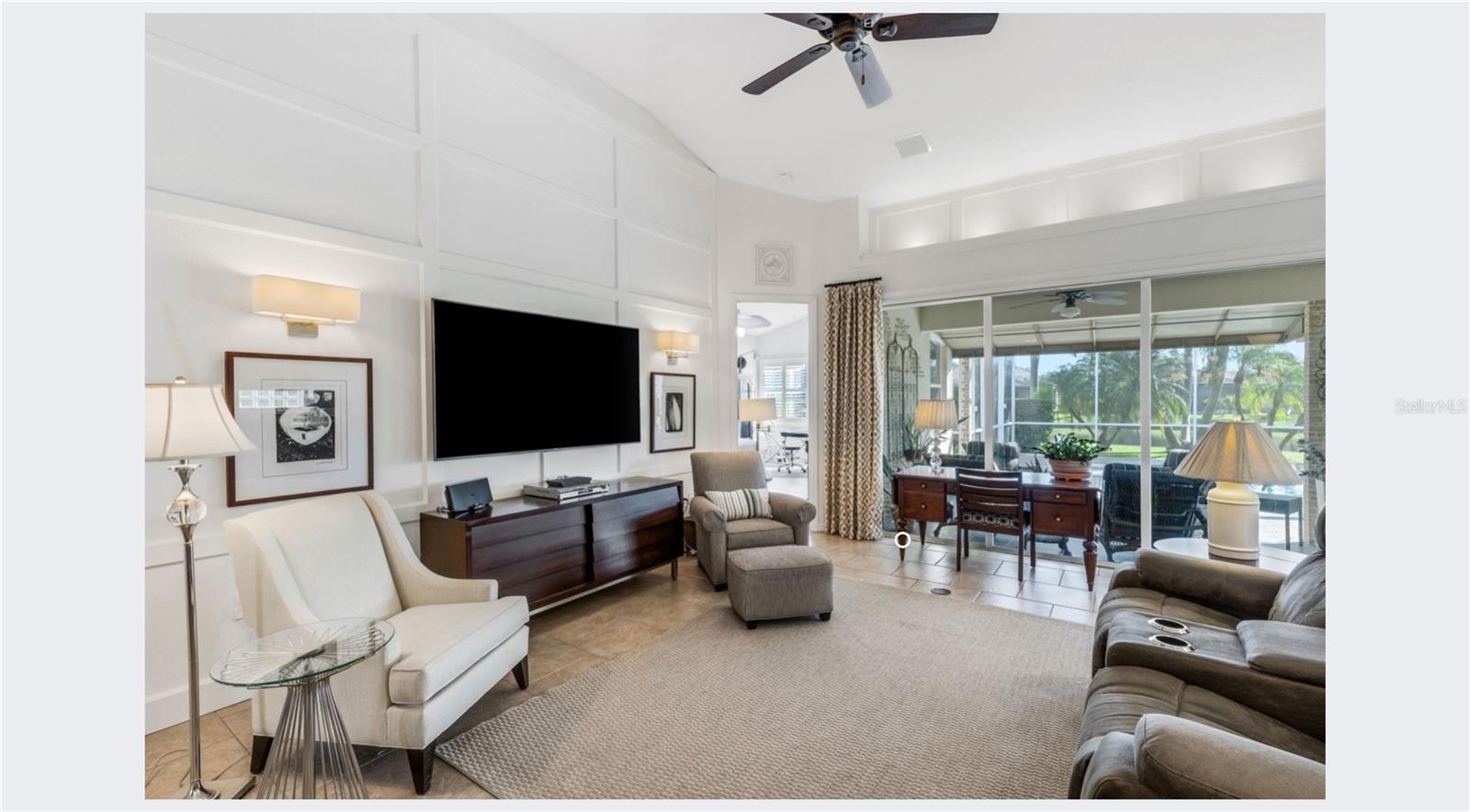 Welcome to this beautifully appointed pool home with 2 bedrooms, 2 baths, plus a large den/office in the sought-after Tara Preserve community. Designed with an artist's eye, every room offers thoughtful details and high-end finishes that set this property apart...custom shiplap, wainscoting, architectural molding, designer lighting and so much more.The heart of the home is the chef's kitchen, featuring a Wolf gas range with designer hood and tile inlay, taupe quartz countertops, shaker-style cabinetry with textured glass fronts and open shelving, and both under-cabinet and uplighting for added ambiance. The sunny breakfast area overlooks the pool and is just perfect for casual meals. High ceilings, plantation shutters, and elegant tile floors flow throughout the open layout (no carpet). The great room shines with a custom trim accent wall, sconce lighting, and dramatic uplighting. A mirrored and trimmed feature wall in the dining room makes it ideal for entertaining.The spacious primary suite boasts lanai access, a sitting area, dual vanities, soaking tub, and walk-in shower with floor-to-ceiling designer tile. Outside, your backyard oasis awaits with a sparkling pool, covered lanai - expanded with permanent awnings. The custom etched and stained concrete floor and painted brick-accent walls along with the picturesque water view beyond the lanai and landscape lighting make this outdoor area quite spectacular. A very special and unique feature is the serene paver courtyard surrounded by lush hedges...your very own private retreat.All of this and you're living in a golf community with OPTIONAL membership. Low HOA fees cover a large array of amenities: tennis courts, pickleball, heated community pool and spa, and clubhouse hosting many neighborhood activities. Internet and cable are included in the HOA fee! Please note taxes include CDD fee. Conveniently located near I-75, UTC Mall, Downtown Sarasota, and, of course, fabulous beaches (Siesta Key, Longboat Key, Anna Maria Island).This home blends style, comfort, and designer features to reflect Florida living at its best--move right in and enjoy!