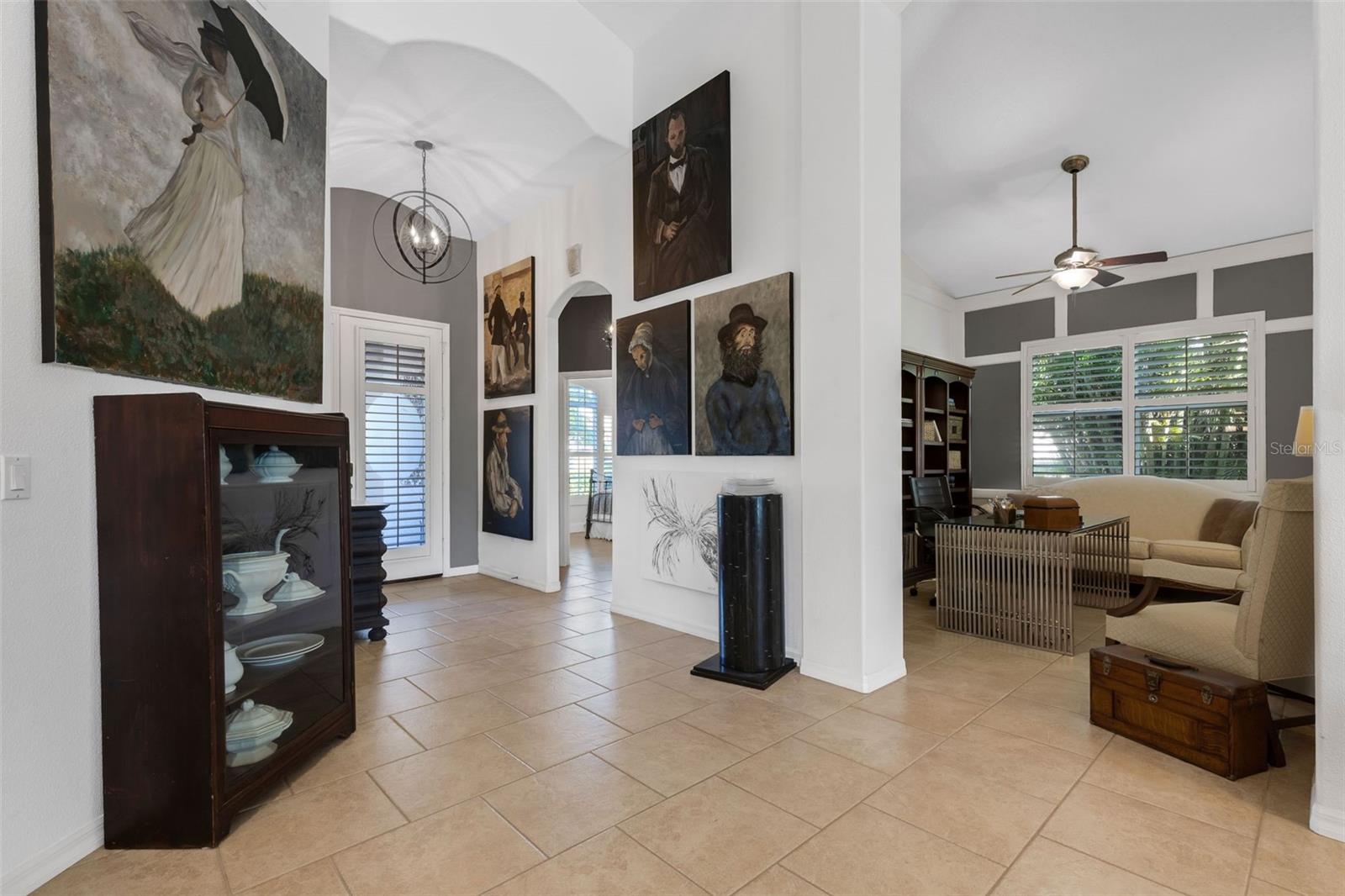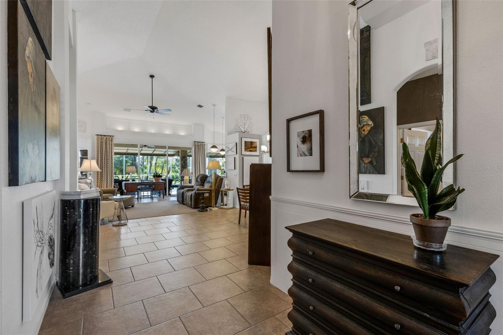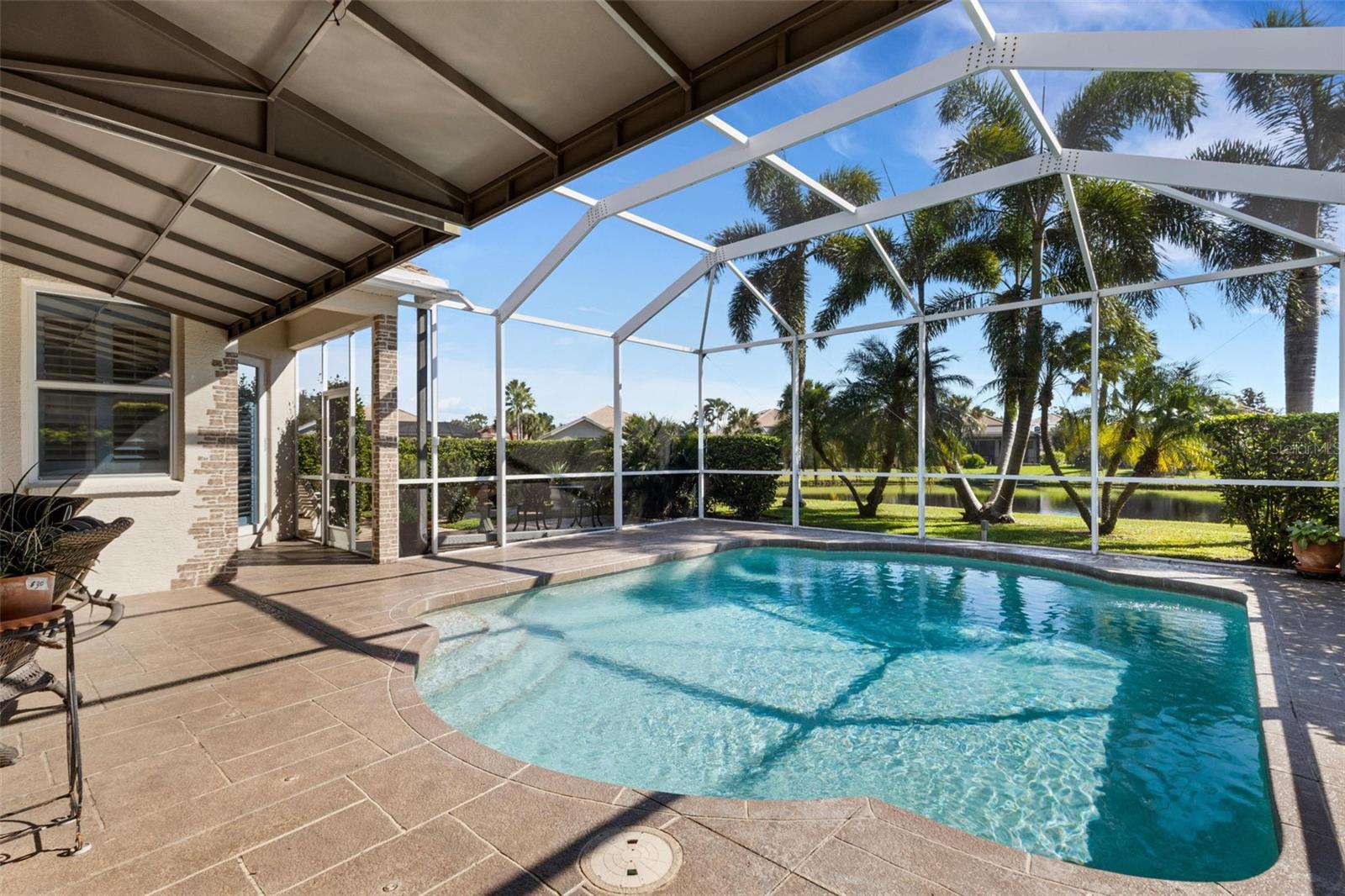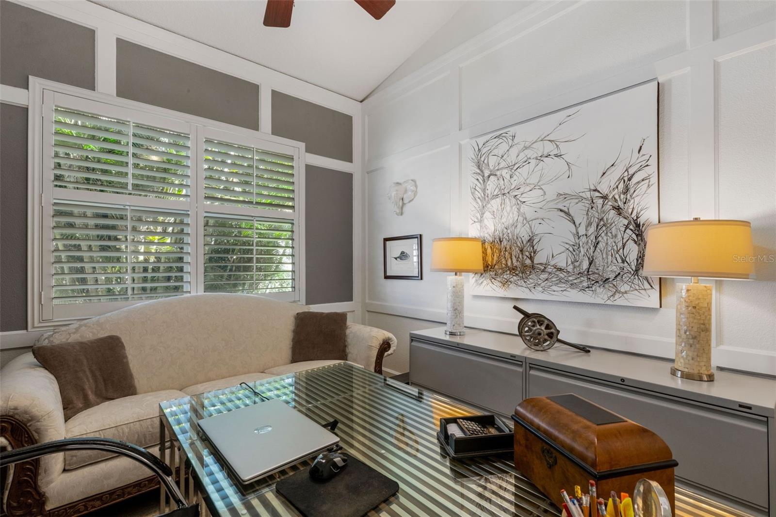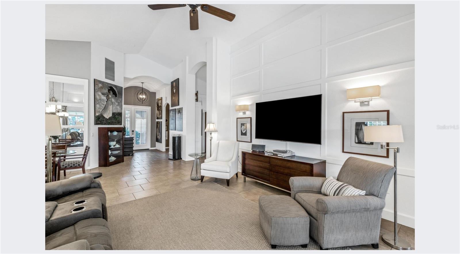 Welcome to this beautifully appointed pool home with 2 bedrooms, 2 baths, plus a large den/office in the sought-after Tara Preserve community. Designed with an artist's eye, every room offers thoughtful details and high-end finishes that set this property apart...custom shiplap, wainscoting, architectural molding, designer lighting and so much more.The heart of the home is the chef's kitchen, featuring a Wolf gas range with designer hood and tile inlay, taupe quartz countertops, shaker-style cabinetry with textured glass fronts and open shelving, and both under-cabinet and uplighting for added ambiance. The sunny breakfast area overlooks the pool and is just perfect for casual meals. High ceilings, plantation shutters, and elegant tile floors flow throughout the open layout (no carpet). The great room shines with a custom trim accent wall, sconce lighting, and dramatic uplighting. A mirrored and trimmed feature wall in the dining room makes it ideal for entertaining.The spacious primary suite boasts lanai access, a sitting area, dual vanities, soaking tub, and walk-in shower with floor-to-ceiling designer tile. Outside, your backyard oasis awaits with a sparkling pool, covered lanai - expanded with permanent awnings. The custom etched and stained concrete floor and painted brick-accent walls along with the picturesque water view beyond the lanai and landscape lighting make this outdoor area quite spectacular. A very special and unique feature is the serene paver courtyard surrounded by lush hedges...your very own private retreat.All of this and you're living in a golf community with OPTIONAL membership. Low HOA fees cover a large array of amenities: tennis courts, pickleball, heated community pool and spa, and clubhouse hosting many neighborhood activities. Internet and cable are included in the HOA fee! Please note taxes include CDD fee. Conveniently located near I-75, UTC Mall, Downtown Sarasota, and, of course, fabulous beaches (Siesta Key, Longboat Key, Anna Maria Island).This home blends style, comfort, and designer features to reflect Florida living at its best--move right in and enjoy!