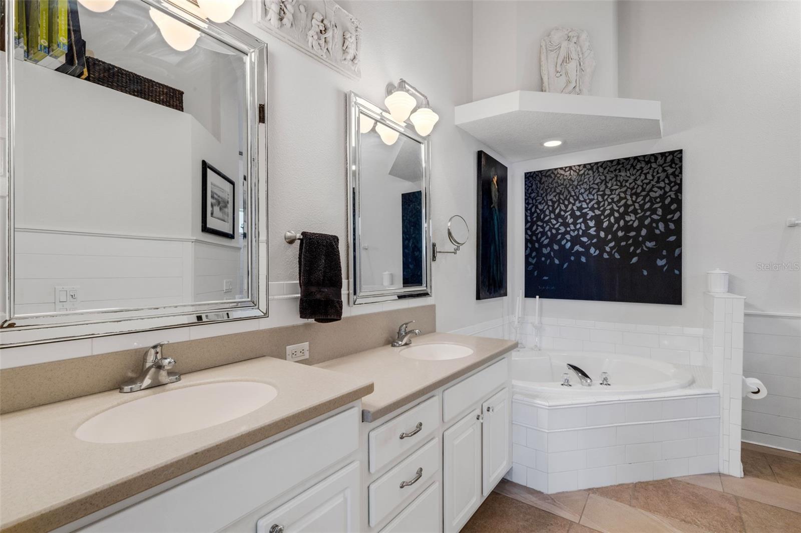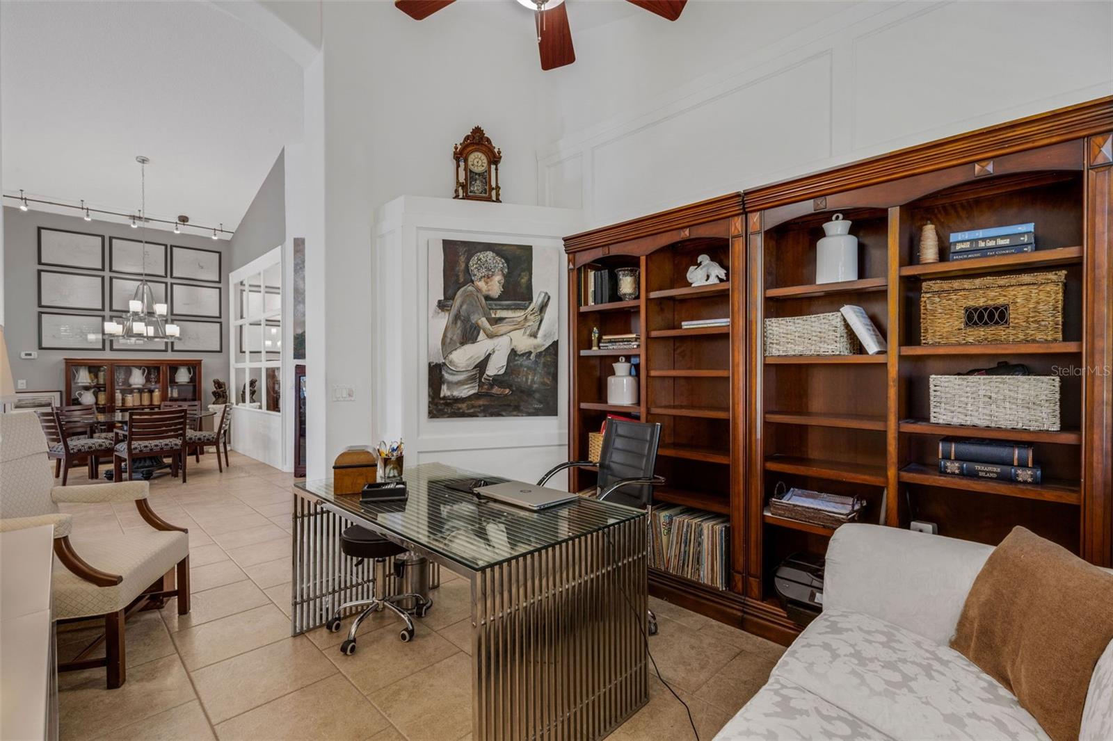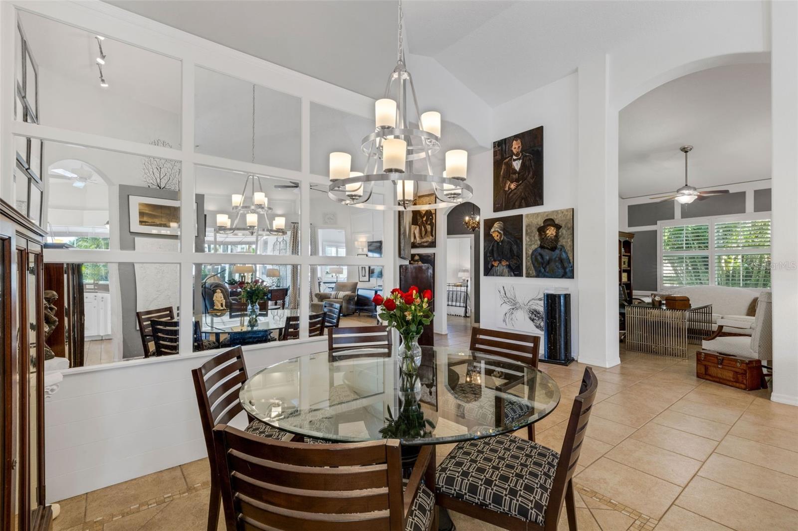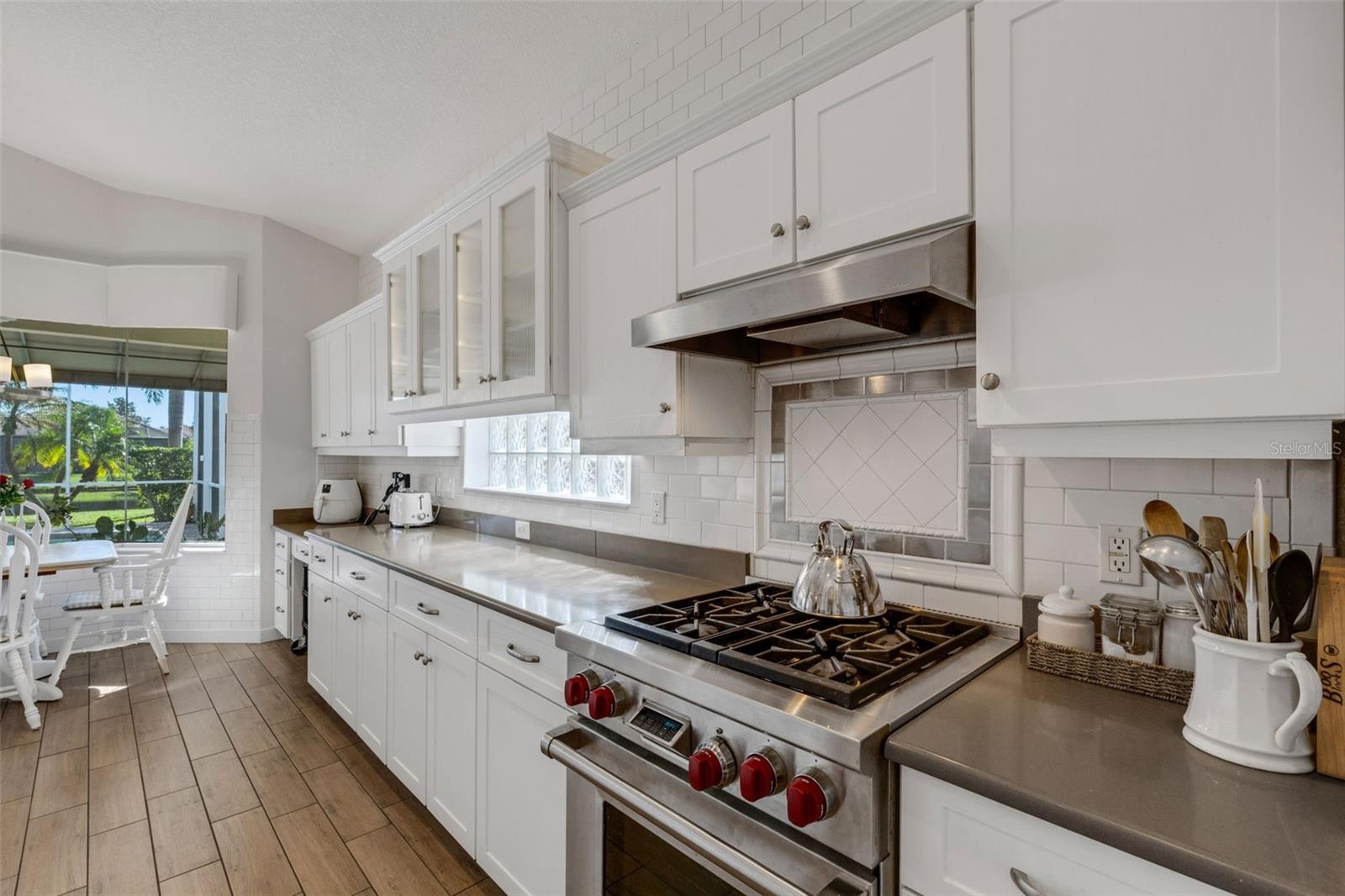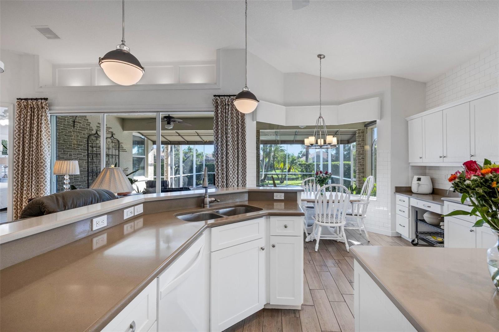 Welcome to this beautifully appointed pool home with 2 bedrooms, 2 baths, plus a large den/office in the sought-after Tara Preserve community. Designed with an artist's eye, every room offers thoughtful details and high-end finishes that set this property apart...custom shiplap, wainscoting, architectural molding, designer lighting and so much more.The heart of the home is the chef's kitchen, featuring a Wolf gas range with designer hood and tile inlay, taupe quartz countertops, shaker-style cabinetry with textured glass fronts and open shelving, and both under-cabinet and uplighting for added ambiance. The sunny breakfast area overlooks the pool and is just perfect for casual meals. High ceilings, plantation shutters, and elegant tile floors flow throughout the open layout (no carpet). The great room shines with a custom trim accent wall, sconce lighting, and dramatic uplighting. A mirrored and trimmed feature wall in the dining room makes it ideal for entertaining.The spacious primary suite boasts lanai access, a sitting area, dual vanities, soaking tub, and walk-in shower with floor-to-ceiling designer tile. Outside, your backyard oasis awaits with a sparkling pool, covered lanai - expanded with permanent awnings. The custom etched and stained concrete floor and painted brick-accent walls along with the picturesque water view beyond the lanai and landscape lighting make this outdoor area quite spectacular. A very special and unique feature is the serene paver courtyard surrounded by lush hedges...your very own private retreat.All of this and you're living in a golf community with OPTIONAL membership. Low HOA fees cover a large array of amenities: tennis courts, pickleball, heated community pool and spa, and clubhouse hosting many neighborhood activities. Internet and cable are included in the HOA fee! Please note taxes include CDD fee. Conveniently located near I-75, UTC Mall, Downtown Sarasota, and, of course, fabulous beaches (Siesta Key, Longboat Key, Anna Maria Island).This home blends style, comfort, and designer features to reflect Florida living at its best--move right in and enjoy!