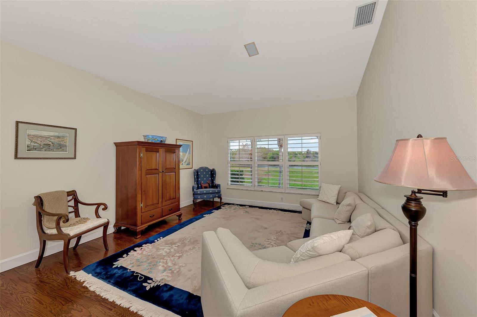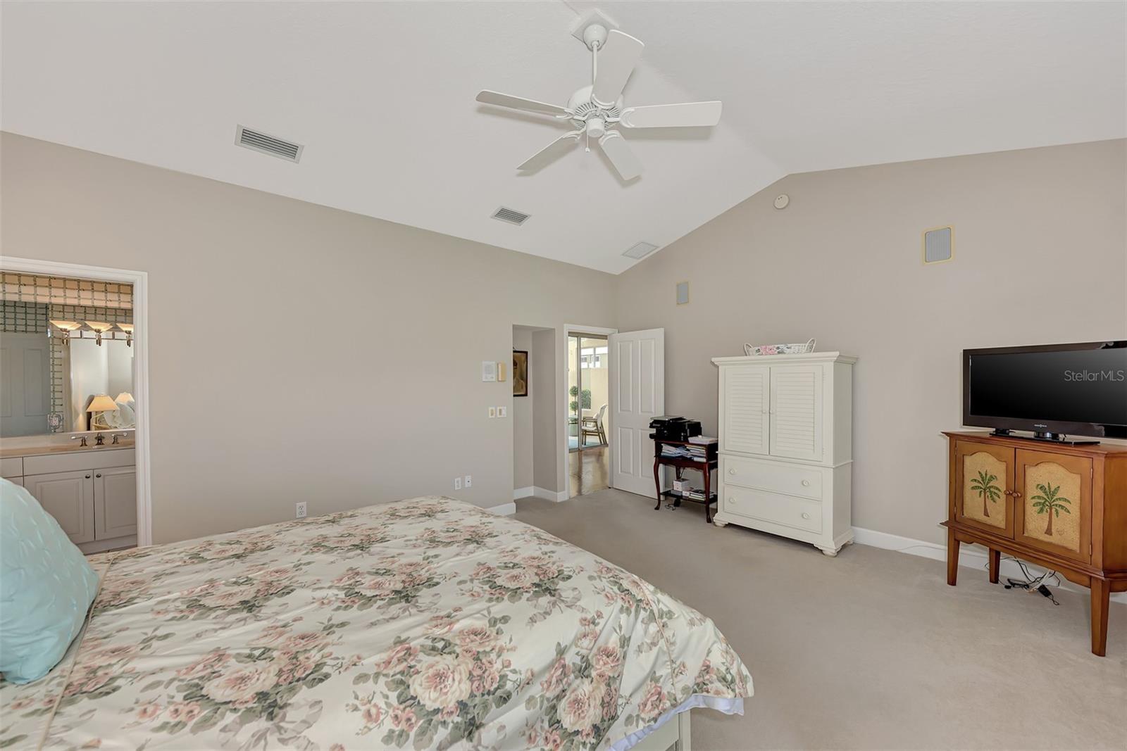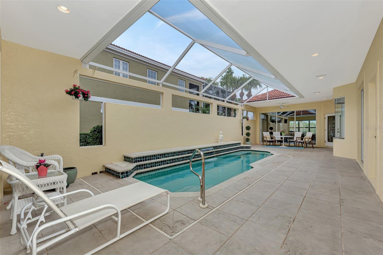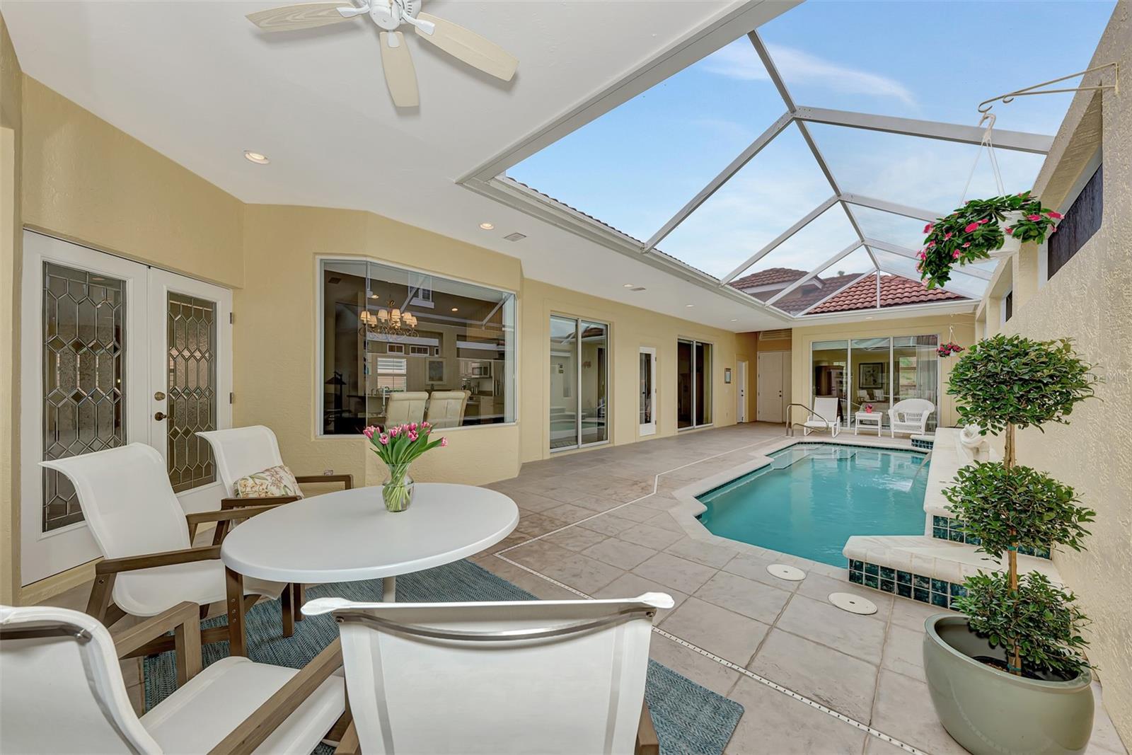 Welcome to your dream home, nestled within the exclusive, gated community of TPC Prestancia Golf and Social Club--a 565-acre oasis of luxury, world-class golf, and serene Florida living. Located in the highly coveted Valencia section, this charming, maintenance-free courtyard-style residence offers over 2,100 square feet of elegant living space, complete with a private pool featuring a soothing waterfall and lush, tropical landscaping. It's the ideal setting for both tranquil relaxation and entertaining guests. This exceptional home includes a private casita, perfect for guests, family, or versatile use as an exercise studio or home office. With natural light pouring in, a full bathroom, and its own private entrance, the possibilities for this unique space are endless. As you enter the main home, you're immediately greeted by a bright, welcoming courtyard that sets the tone for the meticulous attention to detail throughout. The open, airy living areas boast high ceilings, beautiful wood floors, and expansive windows that flood the home with natural light while framing peaceful views of the greenbelt and lake / creek. The spacious gourmet kitchen is a true chef's delight, featuring top-of-the-line stainless steel appliances, generous counter space, and a breakfast bar, all overlooking the oversized family room and dining area. A cozy breakfast nook, highlighted by an aquarium window, provides the perfect spot to savor your morning coffee while enjoying nature's beauty. The owner's suite is a private retreat, offering panoramic views, plantation shutters, and a spa-like bath with double vanities, a soaking tub, a walk-in shower, and a generously sized walk-in closet. The split floor plan provides privacy for guests, with a spacious guest room and a full bathroom that conveniently doubles as a pool bath. Additional amenities include a two-car garage, laundry room, and abundant storage space, seamlessly blending practicality with luxury. TPC Prestancia offers optional memberships for golf and social activities, providing access to 36 holes of championship golf, fine dining, and a calendar of engaging social events. The home's prime location offers unparalleled convenience, with the world-renowned Siesta Key beaches just minutes away, as well as downtown Sarasota, dining, shopping, and the newly extended Legacy Bike Trail. With easy access to I-75 and Sarasota's airport, this is the perfect setting for both relaxation and adventure. This maintenance-free, luxurious courtyard home at TPC Prestancia is a rare find where comfort, style, and Florida living converge. Call today to schedule your private tour and experience the lifestyle you've always dreamed of!