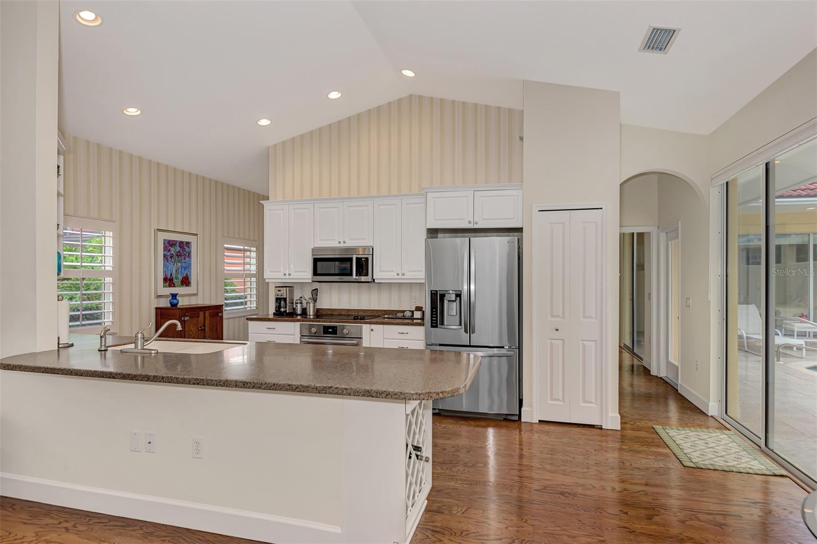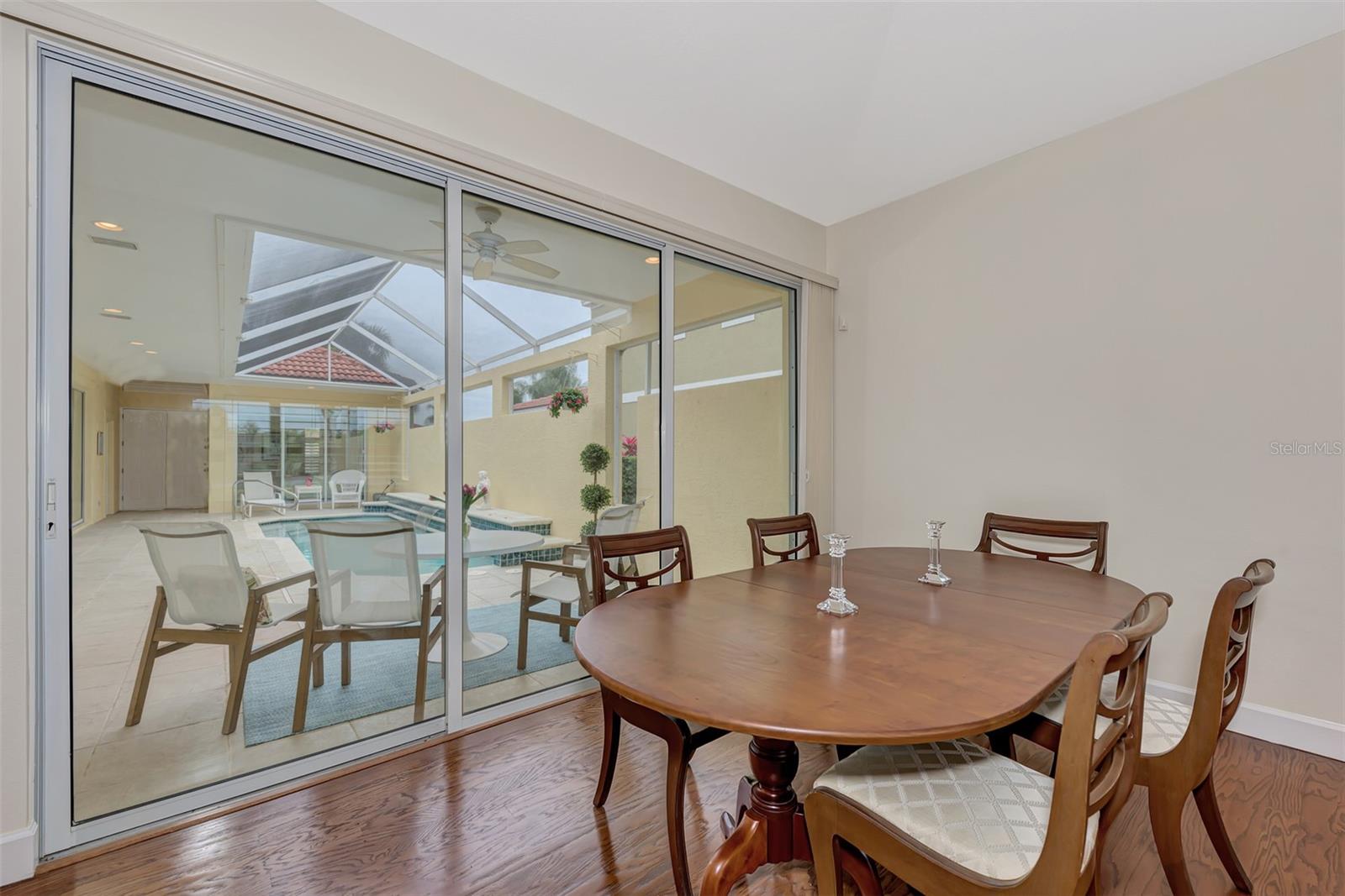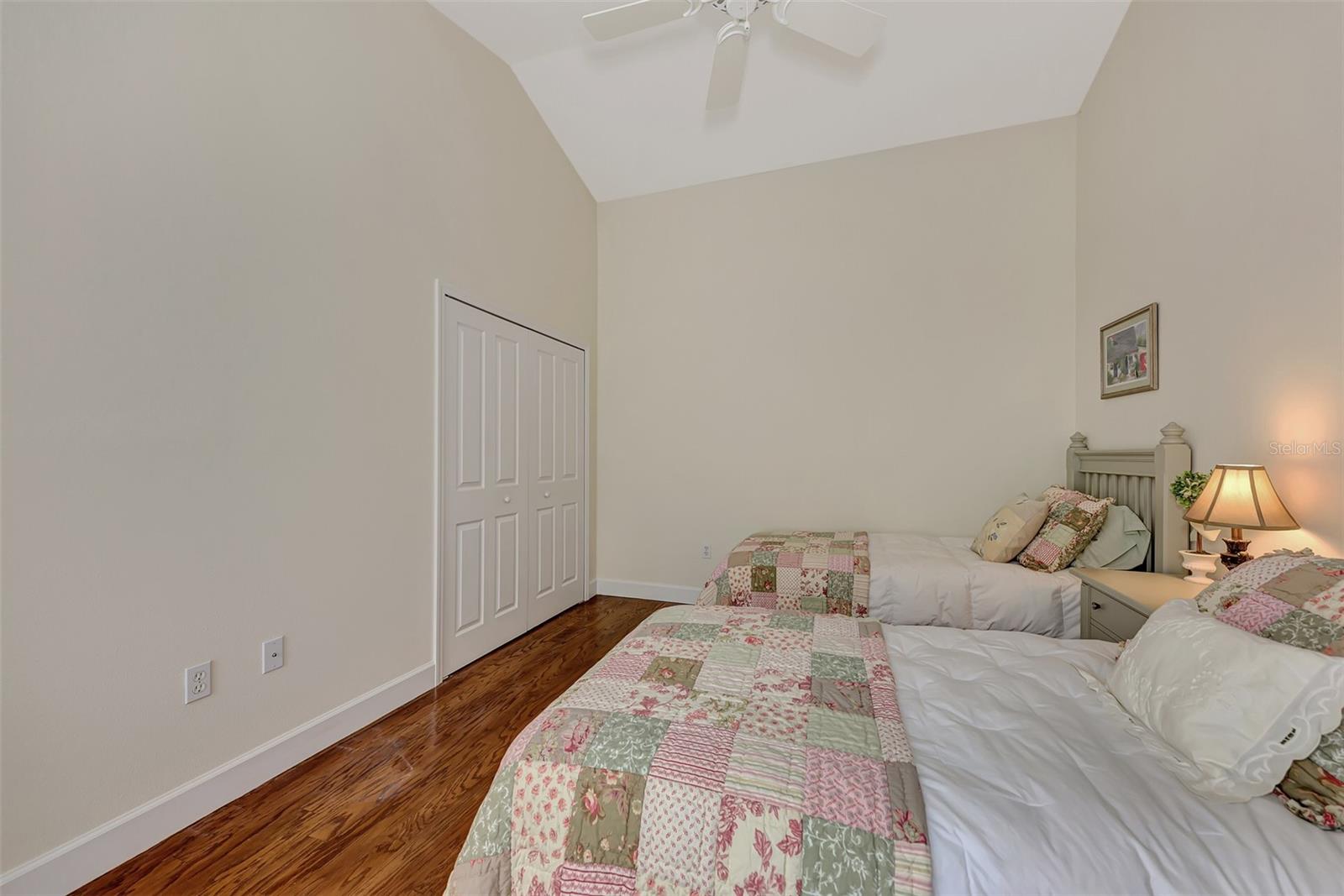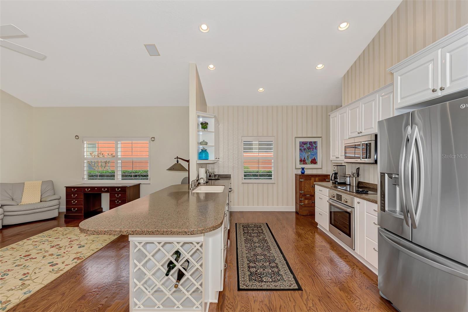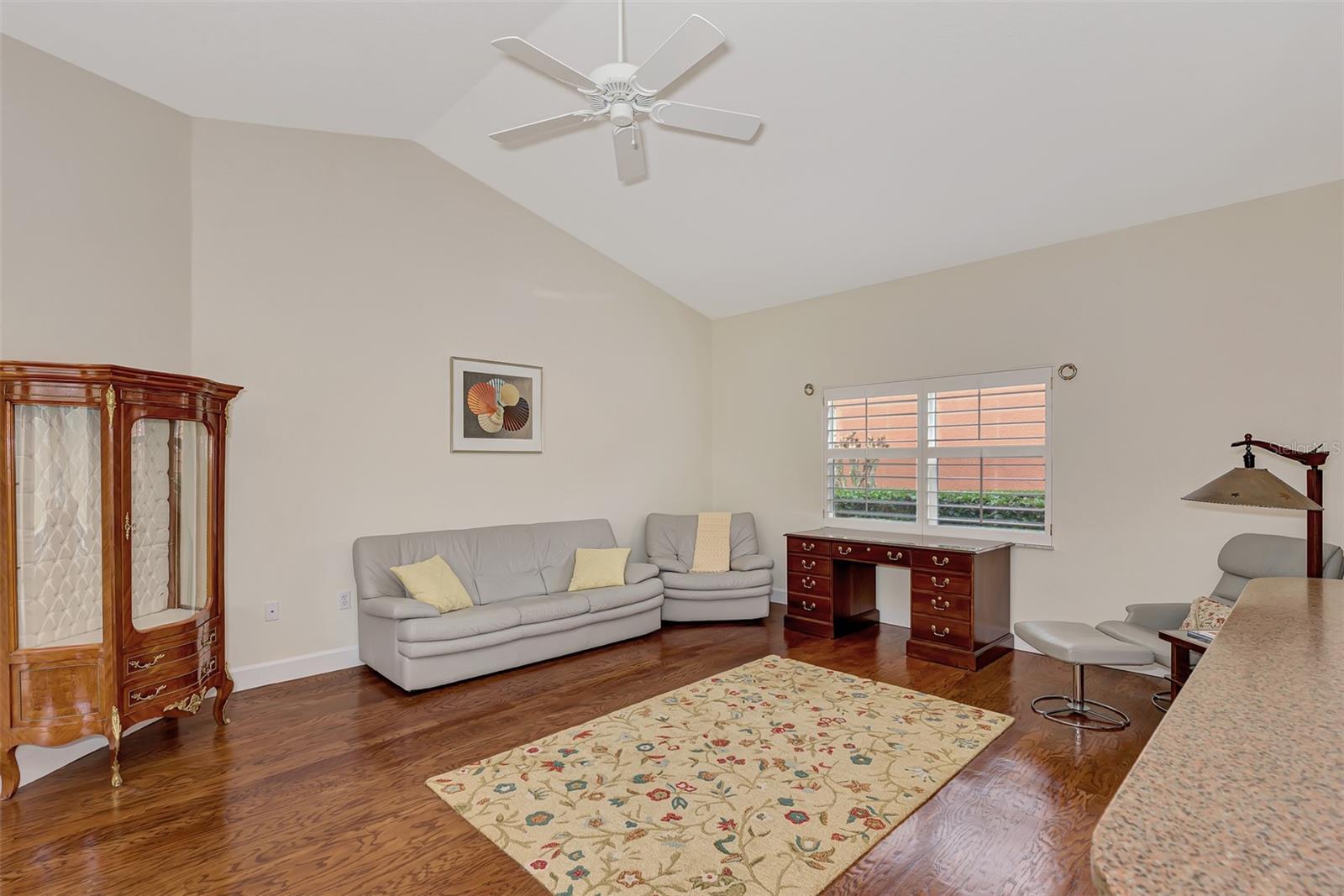 Welcome to your dream home, nestled within the exclusive, gated community of TPC Prestancia Golf and Social Club--a 565-acre oasis of luxury, world-class golf, and serene Florida living. Located in the highly coveted Valencia section, this charming, maintenance-free courtyard-style residence offers over 2,100 square feet of elegant living space, complete with a private pool featuring a soothing waterfall and lush, tropical landscaping. It's the ideal setting for both tranquil relaxation and entertaining guests. This exceptional home includes a private casita, perfect for guests, family, or versatile use as an exercise studio or home office. With natural light pouring in, a full bathroom, and its own private entrance, the possibilities for this unique space are endless. As you enter the main home, you're immediately greeted by a bright, welcoming courtyard that sets the tone for the meticulous attention to detail throughout. The open, airy living areas boast high ceilings, beautiful wood floors, and expansive windows that flood the home with natural light while framing peaceful views of the greenbelt and lake / creek. The spacious gourmet kitchen is a true chef's delight, featuring top-of-the-line stainless steel appliances, generous counter space, and a breakfast bar, all overlooking the oversized family room and dining area. A cozy breakfast nook, highlighted by an aquarium window, provides the perfect spot to savor your morning coffee while enjoying nature's beauty. The owner's suite is a private retreat, offering panoramic views, plantation shutters, and a spa-like bath with double vanities, a soaking tub, a walk-in shower, and a generously sized walk-in closet. The split floor plan provides privacy for guests, with a spacious guest room and a full bathroom that conveniently doubles as a pool bath. Additional amenities include a two-car garage, laundry room, and abundant storage space, seamlessly blending practicality with luxury. TPC Prestancia offers optional memberships for golf and social activities, providing access to 36 holes of championship golf, fine dining, and a calendar of engaging social events. The home's prime location offers unparalleled convenience, with the world-renowned Siesta Key beaches just minutes away, as well as downtown Sarasota, dining, shopping, and the newly extended Legacy Bike Trail. With easy access to I-75 and Sarasota's airport, this is the perfect setting for both relaxation and adventure. This maintenance-free, luxurious courtyard home at TPC Prestancia is a rare find where comfort, style, and Florida living converge. Call today to schedule your private tour and experience the lifestyle you've always dreamed of!