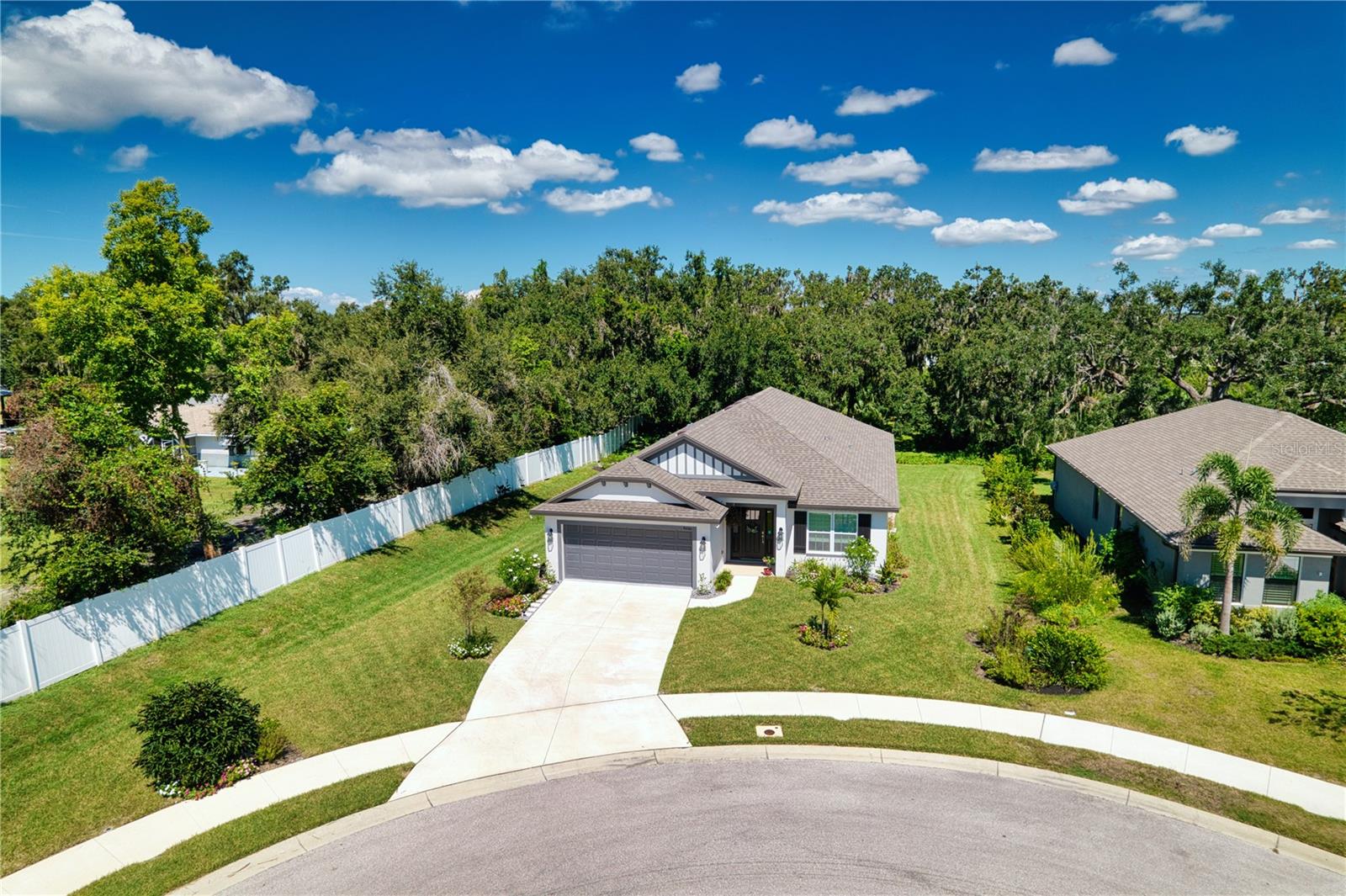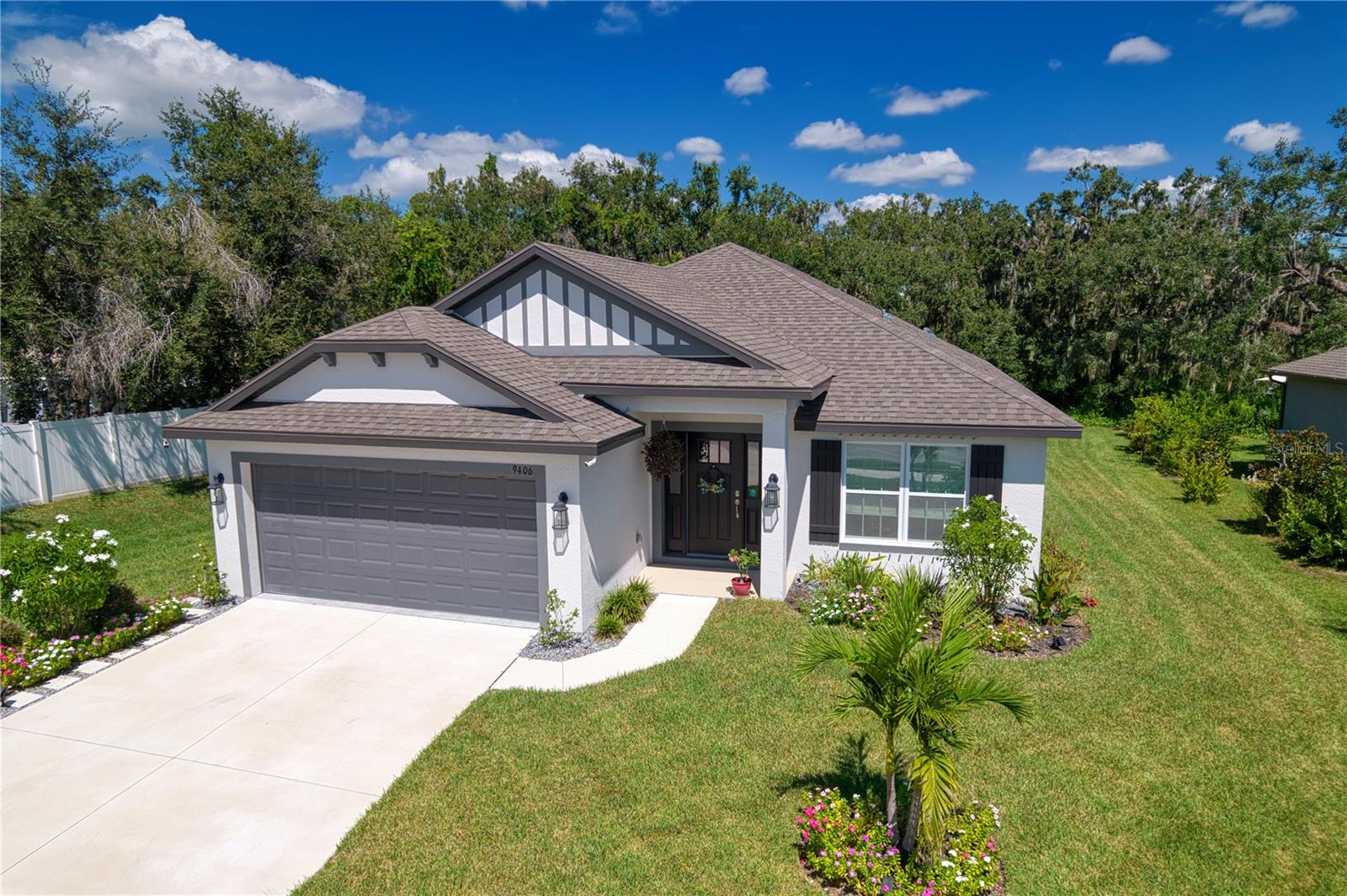 Welcome home to this beautiful 2023 build within a 'no CDD' and 'low HOA' community located within the popular and growing city of Parrish! This lovely four bedroom & three full bathroom one-story is sure to make its' new homeowner pleased. And even more importantly, it sits perfectly at the end of a cul-de-sac with a nice serene view of the conservation area behind. Everything, inside and out, is clean and crisp and ready to go! This 2,217 square foot residence consists of two en-suite bedrooms as well as a Jack and Jill style full bathroom for the other two bedrooms. The family room, dining room, and kitchen access all allow for that spacious & luxurious feel...boasting an open floor plan for both comfort & enjoyment! There's a beautiful covered porch off of the family room to relax among the serene presentation of nature. Experience a privacy feel but yet with Parrish having so much growth going on you are so close to everything you will need. Location, location, location with I-75 nearby for easy access to more shopping, entertainment & restaurants as well as to many gorgeous beaches! Come check out the location, quietness and comfort of this meticulously maintained home!