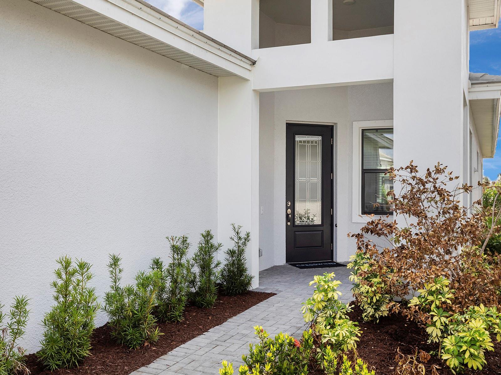 Exterior: Hurricane Shutters, Lighting, Sidewalk, Sliding Doors