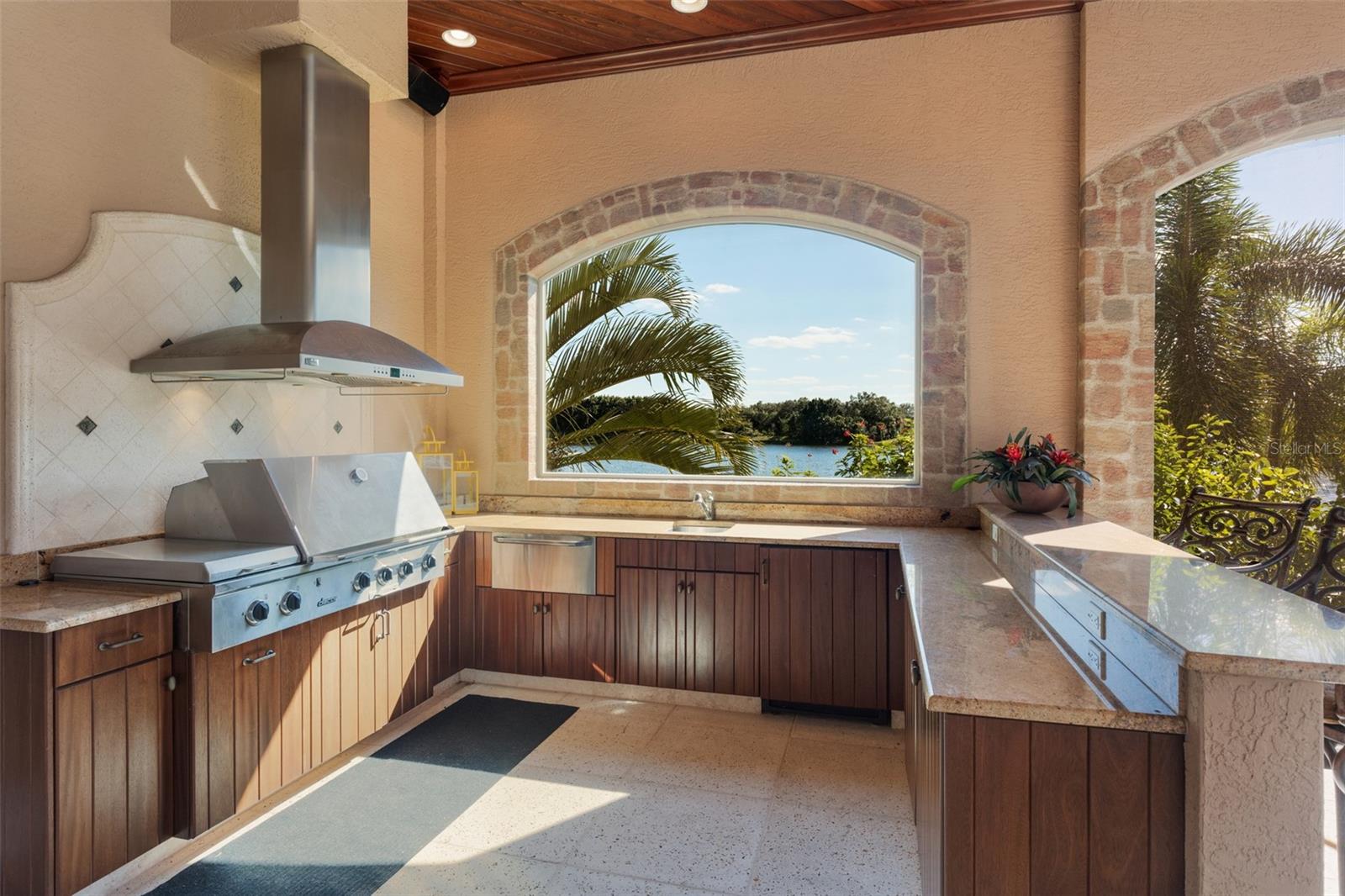 Exterior: Balcony, French Doors, Outdoor Grill, Outdoor Kitchen, Rain Gutters, Sliding Doors