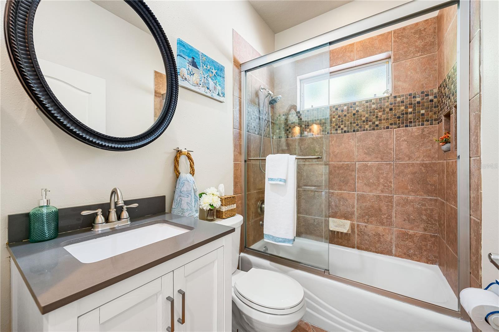 One of the largest homes in Bay Oaks Estates, this 5-bed, 2.5-bath single-story pool retreat delivers the best of indoor-outdoor Florida living with flexible spaces for guests, work, and play. Curb appeal pops with a brick paver circular drive, lush landscaping, and a covered, columned entry with French double doors and an arched transom. Inside, high ceilings and an abundance of natural light set a welcoming tone. The formal living and dining rooms flow to the heart of the home - a well-appointed kitchen designed for everyday living and entertaining, featuring granite counters, tile backsplash, stainless appliances, a center island with raised breakfast bar, closet pantry, built-in desk and wine rack, recessed & pendant lighting, and a picturesque breakfast nook with wraparound windows. The kitchen opens to the spacious family room with a tray ceiling and mirrored media niche. A pocketing three-panel slider seamlessly extends the living space to the covered lanai and screened pool; additional sliders from the formal living room, the primary suite, and a secondary bedroom maintain the indoor-outdoor connection.Out back, the lanai enjoys a private, tranquil, tree-lined backdrop, overlooking a curved, free-form pool with twin arc fountain jets, a raised sun terrace for lounging, and generous space to relax or gather. A screen door leads to the lawn and a separate pergola patio with power - perfect for morning coffee or an evening grill. From the backyard you have direct access to the Legacy Trail, the popular paved, multi-use path linking Sarasota and Venice, for miles of biking and walking through nature.The private primary retreat offers lanai access, two closets (one walk-in), and a spa-like en-suite bath with a Jacuzzi jetted soaking tub framed by an arched window with plantation shutters, separate walk-in shower with wall body sprays, a long double vanity, and a private water closet. Thoughtful split-bedroom design places three secondary bedrooms and a full bath together in their own wing (one is oversized with lanai access that can flex as a game/media space), while a full 5th bedroom - currently used as an office - sits near the primary suite. An interior laundry room adds storage shelves, cabinets, and a utility sink. Major updates for peace of mind include: replumbed water lines, roof (2015), A/C (2019), new water heater (2024), new pool pump (2024), kitchen appliances (2021), washer and dryer (2023), polycarbonate storm panels, and irrigation.All in a well-kept, low-fee, pet-friendly Osprey community conveniently located just minutes from top-rated schools, including the prestigious Pine View School, and close to the Gulf beaches of world-renowned Siesta Key, Nokomis, and Venice, as well as Oscar Scherer State Park, and a variety of shopping, dining, entertainment, and everyday conveniences; the Gulf Coast lifestyle at its finest. Schedule your private showing today and fall in love with the lifestyle that 571 Pine Ranch East Rd has to offer.