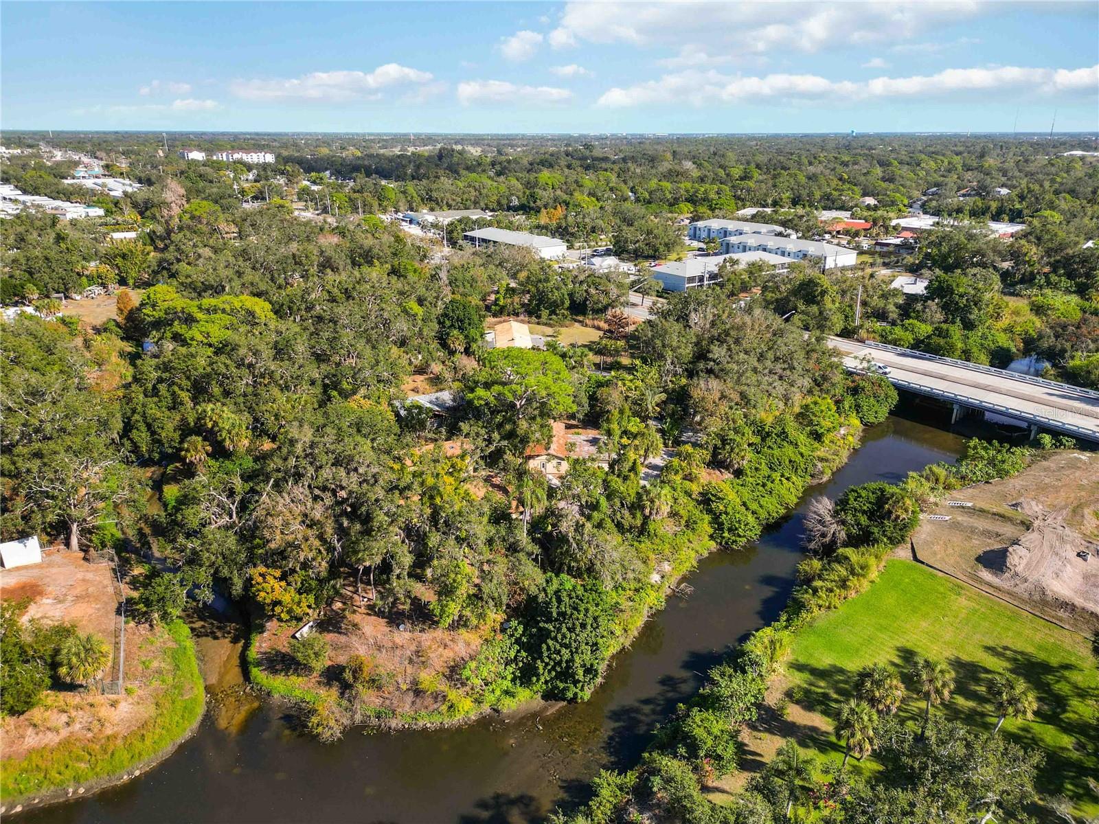 Rare waterfront footage on over 1.4 acres of tropical landscape.This unique property includes a 2 story, 3 bedroom/ 5 bath house, a 1 bed/1 bath guest house, and a 1900 square foot detached garage. It is ideal for storage, a workshop or recreational equipment. Legacy Trail less than 2 miles away. Bring your e bike business and set up shop here. ( Subject to zoning). The property is located on Phillippi Creek , offering direct access and a unique opportunity for a kayak or paddleboard business in a highly desirable recreational area. ( Subject to zoning) While the property has experienced flooding and requires major renovations, the potential returns make it best suited for investors, builders or buyers ready to undertake a significant project.Bring your vision and tools to transform this into a standout asset in a great location. Close to resturants & shopping.Property sold AS-IS.