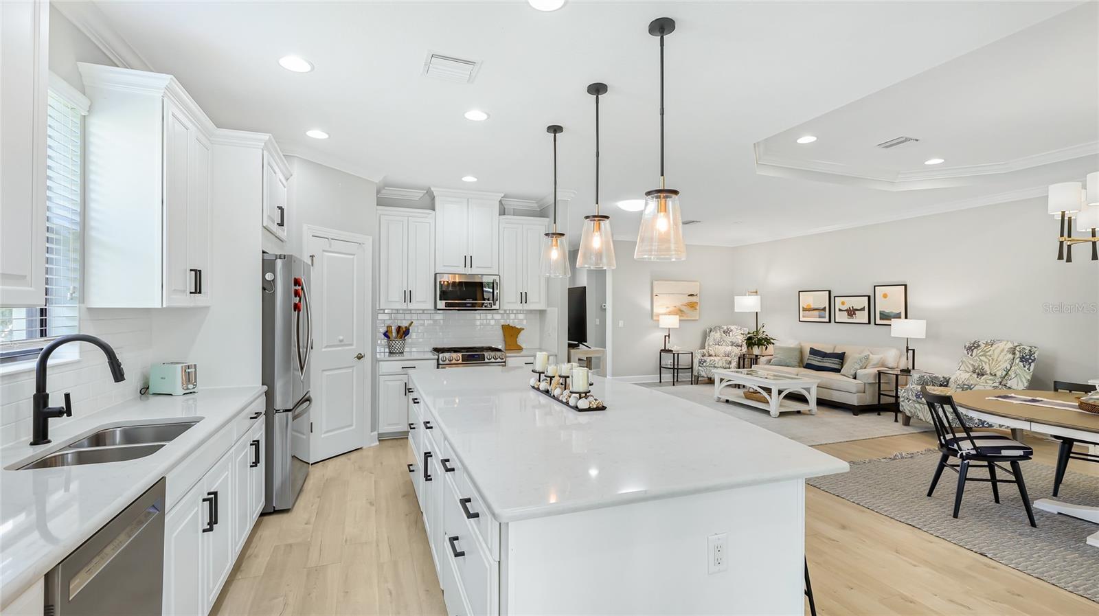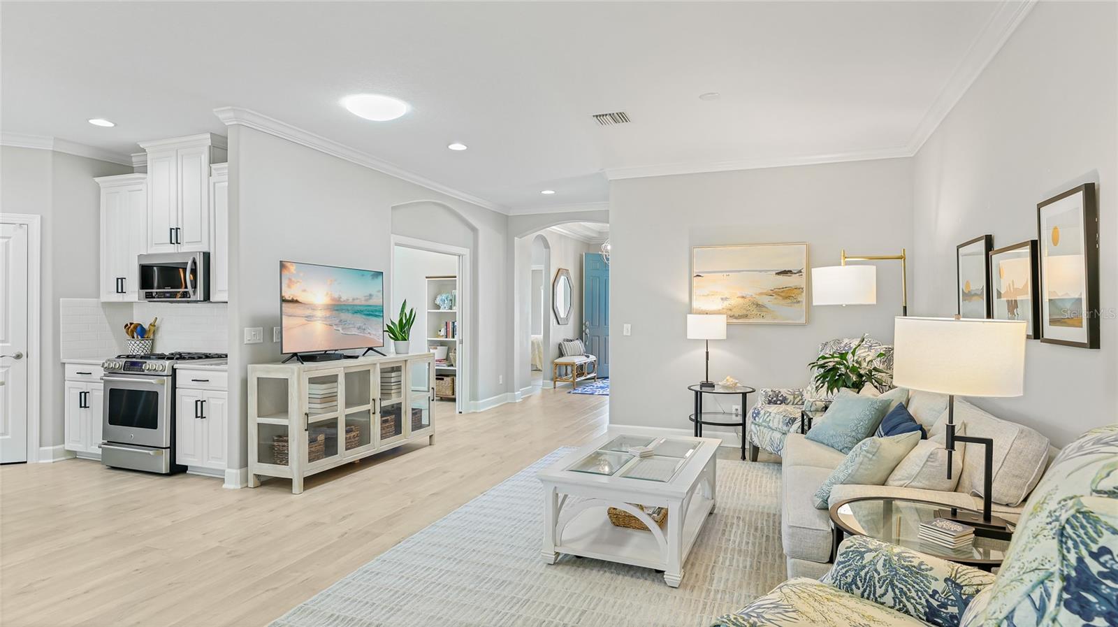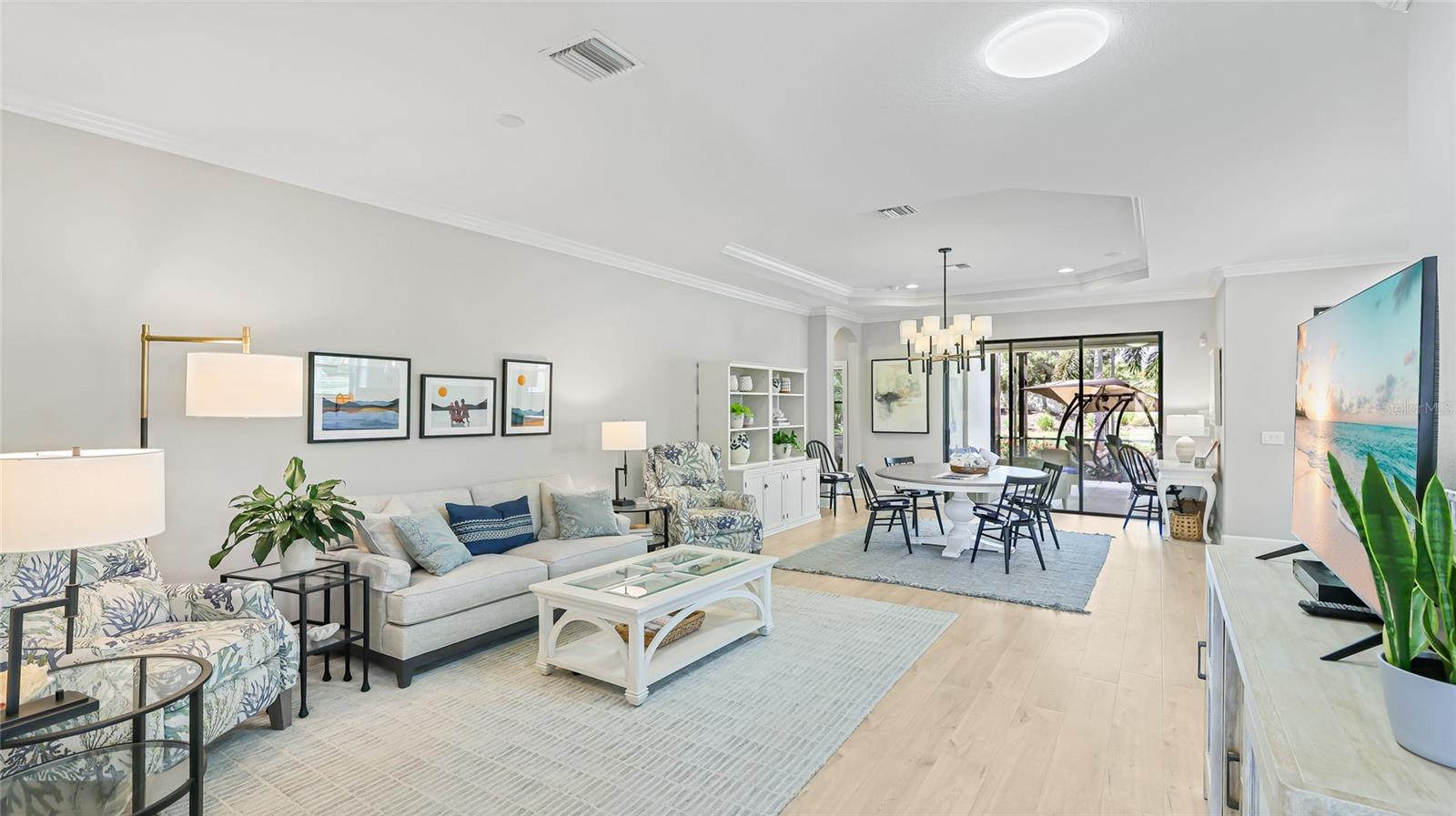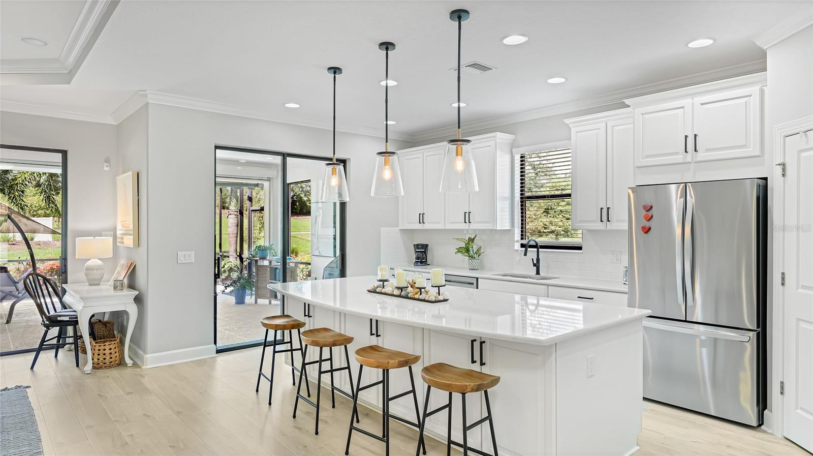 Welcome to 12712 Fontana Loop, a truly delightful retreat that feels just like a model home in the Esplanade Golf and Country Club. This home is perfect for both families and retirees alike. This charming three-bedroom plus den, three-bath home, built in 2014, offers not just a house but a lifestyle full of leisure and comfort.Step inside to discover the great room illuminated by a tubular skylight, bringing in natural light that dances through the space. The heart of the home, the kitchen, features sleek subway tile backsplash, quartz countertops, and luxury vinyl flooring (throughout home), all complemented by a brand-new Emerson light island pendant and a stunning 12-light dining chandelier.The master bathroom is designed for accessibility, while the den offers pocket doors for a flexible space. And don't forget the extra four-foot extended garage. Perfect for extra storage, home gym or a workshop space.Outside, the home has been recently repainted and enhanced with fresh landscaping. Enjoy the extended lanai with remote-controlled Kevlar hurricane screen and an extendable awning, making it the perfect spot to unwind after a game of tennis, pickleball, or golf. Plus, the Renewal by Andersen hurricane windows add both elegance and peace of mind. Speaking of peace of mind, no need to worry about the air conditioner or hot water heater.. they are brand new!In this vibrant community, you'll have access to swimming pools and a wealth of amenities that make every day feel like a vacation. On property you will have access to tennis, pickleball, resistance swimming, leisure swimming, water aerobics, events and of course.. Golf! Whether you're looking to enjoy an active lifestyle or just relax in a beautifully updated home, 12712 Fontana Loop is a place where you can truly feel at home.