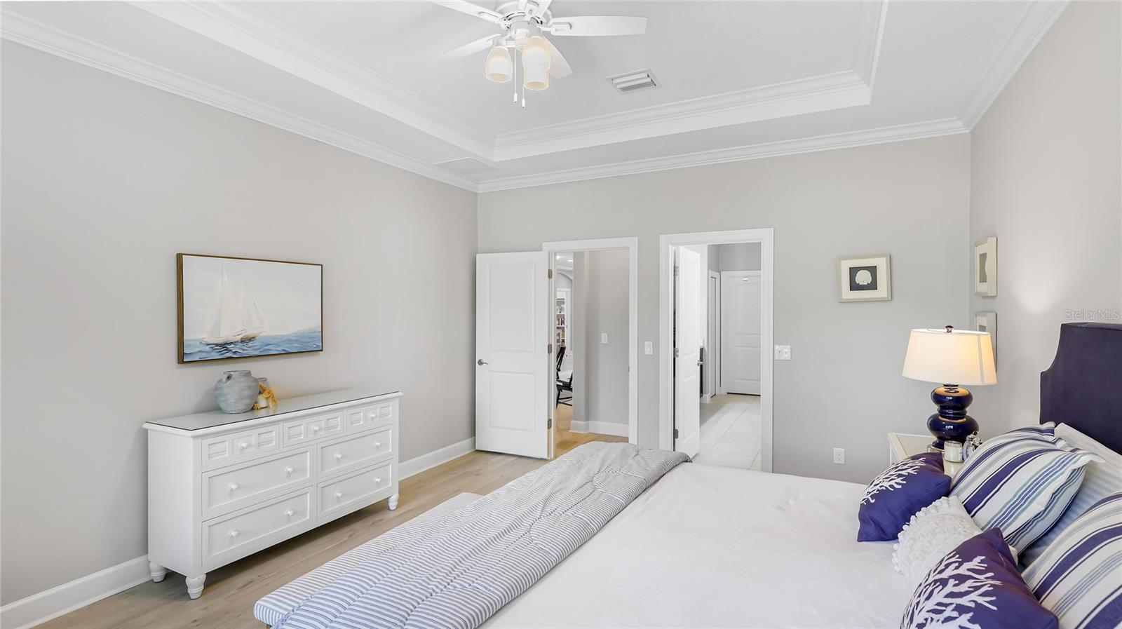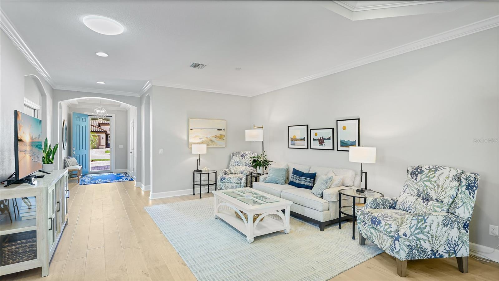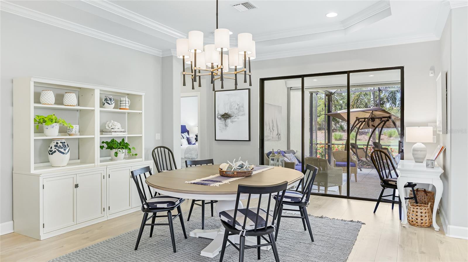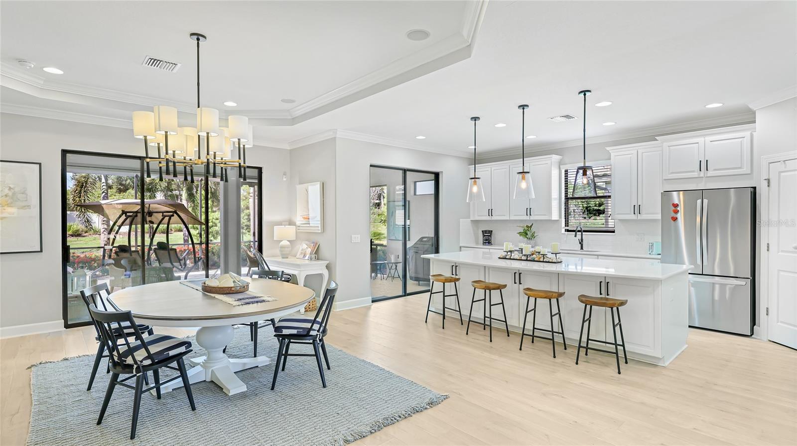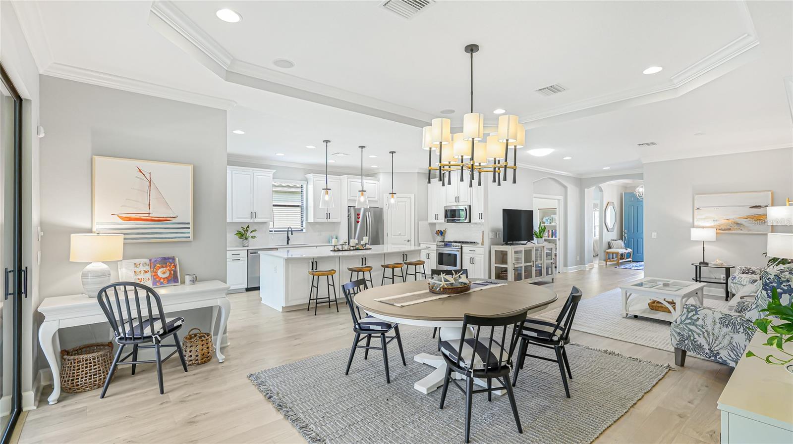 Welcome to 12712 Fontana Loop, a truly delightful retreat that feels just like a model home in the Esplanade Golf and Country Club. This home is perfect for both families and retirees alike. This charming three-bedroom plus den, three-bath home, built in 2014, offers not just a house but a lifestyle full of leisure and comfort.Step inside to discover the great room illuminated by a tubular skylight, bringing in natural light that dances through the space. The heart of the home, the kitchen, features sleek subway tile backsplash, quartz countertops, and luxury vinyl flooring (throughout home), all complemented by a brand-new Emerson light island pendant and a stunning 12-light dining chandelier.The master bathroom is designed for accessibility, while the den offers pocket doors for a flexible space. And don't forget the extra four-foot extended garage. Perfect for extra storage, home gym or a workshop space.Outside, the home has been recently repainted and enhanced with fresh landscaping. Enjoy the extended lanai with remote-controlled Kevlar hurricane screen and an extendable awning, making it the perfect spot to unwind after a game of tennis, pickleball, or golf. Plus, the Renewal by Andersen hurricane windows add both elegance and peace of mind. Speaking of peace of mind, no need to worry about the air conditioner or hot water heater.. they are brand new!In this vibrant community, you'll have access to swimming pools and a wealth of amenities that make every day feel like a vacation. On property you will have access to tennis, pickleball, resistance swimming, leisure swimming, water aerobics, events and of course.. Golf! Whether you're looking to enjoy an active lifestyle or just relax in a beautifully updated home, 12712 Fontana Loop is a place where you can truly feel at home.