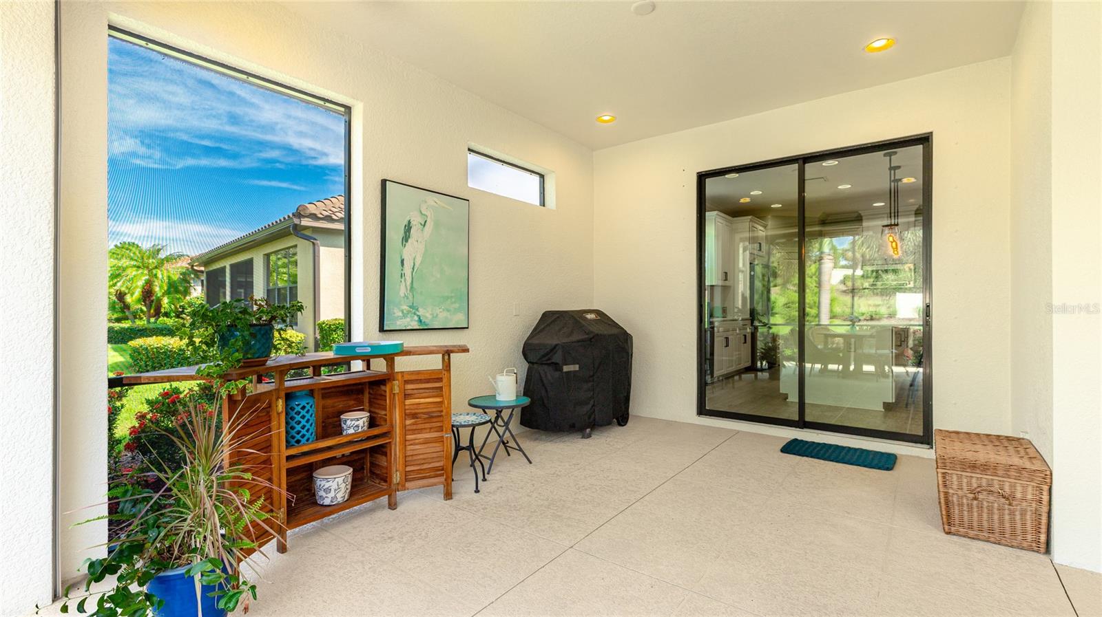 Exterior: Lighting, Sidewalk, Sliding Doors
