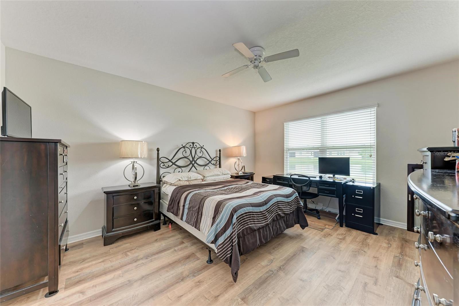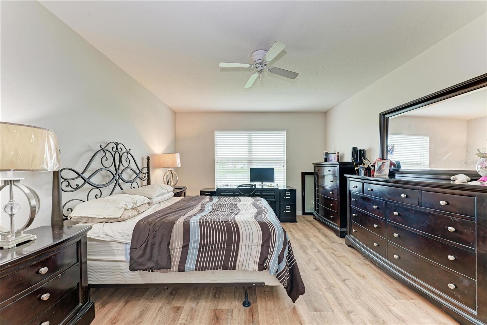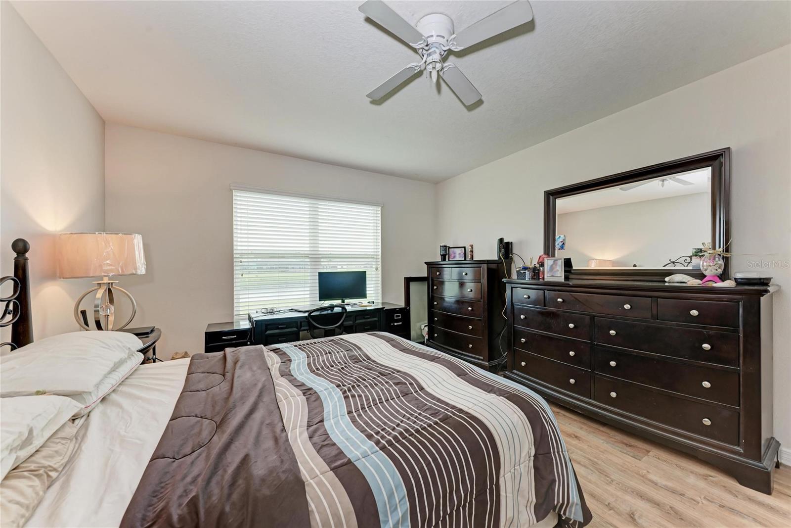Located in the sought-after gated community of Del Tierra. This beautifully designed D.R. Horton home offers 5 bedrooms, 2.5 bathrooms, and over 2,800 square feet of living space, making it the ideal fit for a growing family.Step inside to find an inviting open floor plan with soaring 9.5 foot ceilings and expansive windows that flood the home with natural light while showcasing tranquil lake views. The heart of the home is the chef's kitchen, featuring granite countertops, espresso cabinetry, a corner pantry, and a large center island with seating for casual dining.The first-floor primary suite provides a private retreat with a spa like bathroom complete with a walk in shower, dual vanities, and two spacious walk in closets. Upstairs, you'll find four additional bedrooms, a full bathroom with double sinks, and a versatile loft-style living area perfect as a playroom, media room, study space or possible 6th bedroom. The laundry room is also conveniently located upstairs. A large bonus room, multiple walk-in closets, and a two car garage add to the home's functionality. Del Tierra is known for its resort style amenities, including a sparkling pool, fitness center, playground, soccer field, covered picnic area, and scenic walking paths. With low HOA fees and no CDD, this community offers outstanding value. Ideally situated near Lakewood Ranch, you'll be minutes from top-rated schools, shopping at UTC Mall, dining, I-75, and the Gulf Coast's award-winning beaches.Don't miss the chance to make it yours.