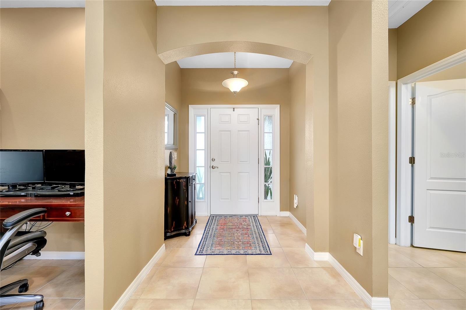 Exterior: Hurricane Shutters, Rain Gutters, Sidewalk, Sliding Doors