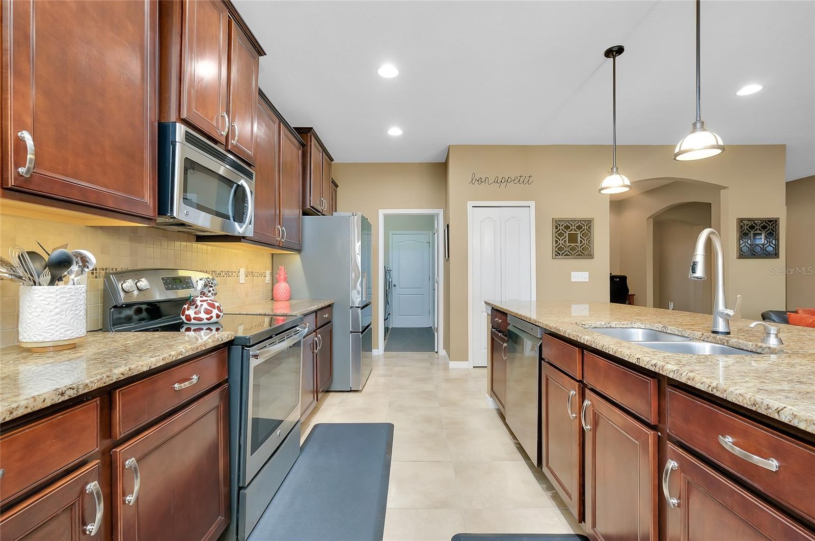 Tucked away on a quiet cul-de-sac in a newer gated community in the Palmer Ranch area, this tranquil and well-appointed home offers the perfect blend of comfort and convenience. Featuring 3 bedrooms, 2 baths, plus a den, the open split-bedroom floorplan is designed for both everyday living and entertaining. The spacious kitchen boasts upgraded 42" cabinetry, granite countertops, and a breakfast bar that seamlessly connects to the living and dining areas, while the den offers a private retreat tucked off to the side. Tile flooring flows through the main living spaces, with low-maintenance laminate in the bedrooms. Step outside to your private patio overlooking a serene pond, where you can relax and enjoy the abundance of birds and wildlife from your fully fenced backyard haven. This home is equipped with numerous upgrades, including a high-efficiency 15 SEER HVAC system, programmable thermostat, radiant roof barrier sheathing, and energy-saving double-pane low-E windows and sliding glass door and hurricane shutters for peace of mind. If it is a pool you desire, there is room for one here (sketch attached). This upscale community of 49 homes showcases timeless curb appeal, with each home featuring brick paver driveways and entry walks, elegant stone exterior accents, and durable barrel tile cement roofs. The low HOA fee includes gated entry, grounds maintenance, lawn irrigation, and access to the community playground. Ideally located near I-75, this community is just minutes from world-famous Siesta Key, vibrant downtown Sarasota, and an array of shops, dining, parks, and trails, some just a couple blocks away. Top-rated schools are also nearby, making this home an exceptional choice. Up to 1% of the loan amount for rate buy down or lender credits are being offered specifically for this home