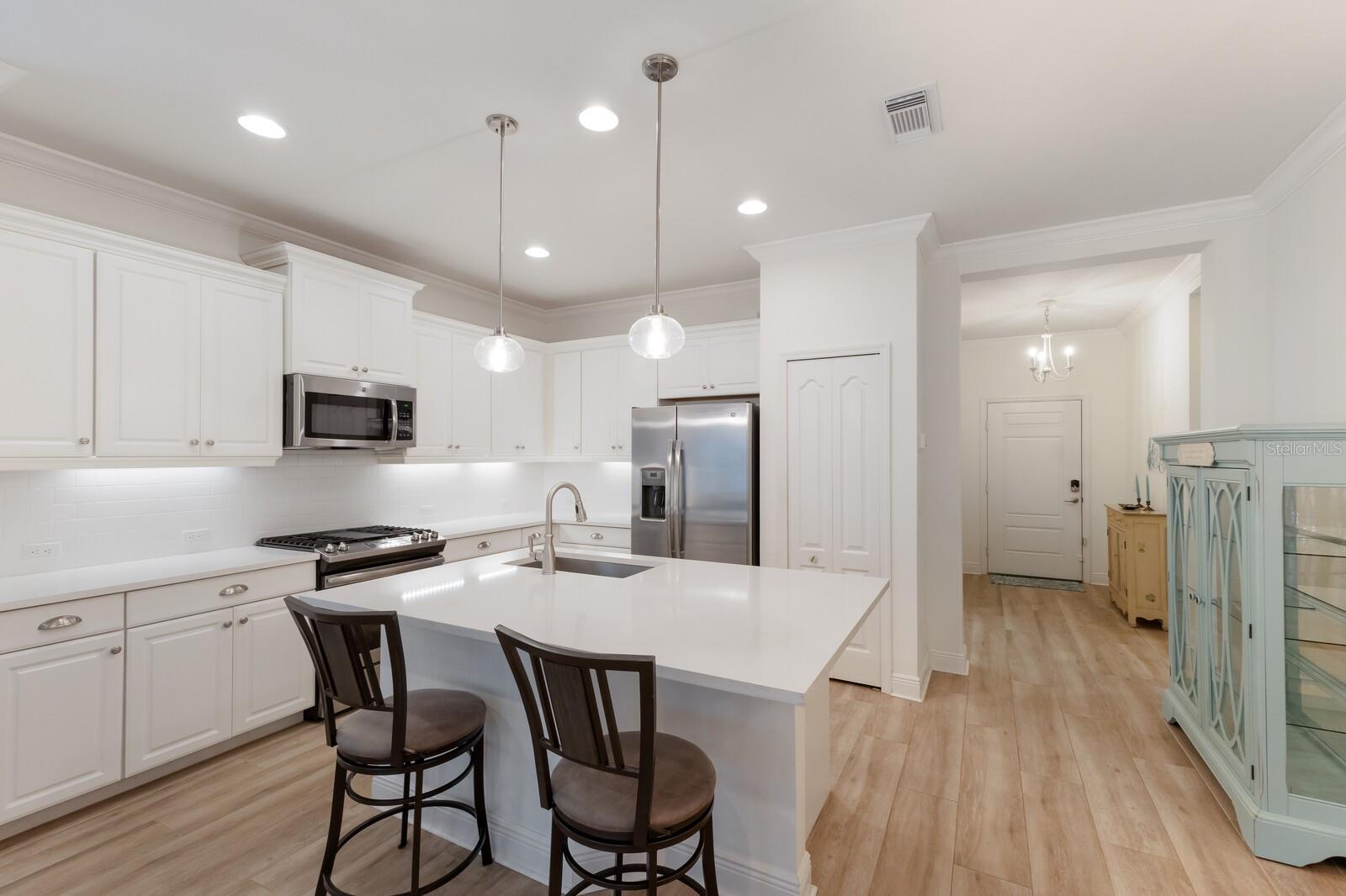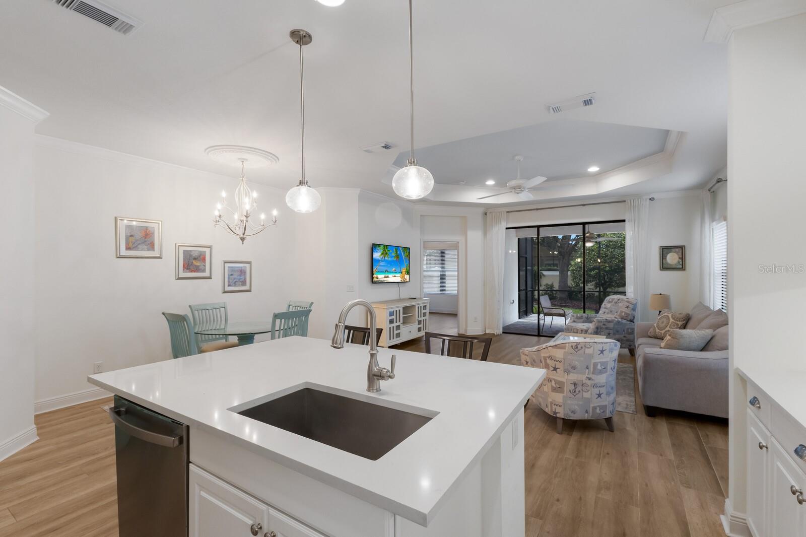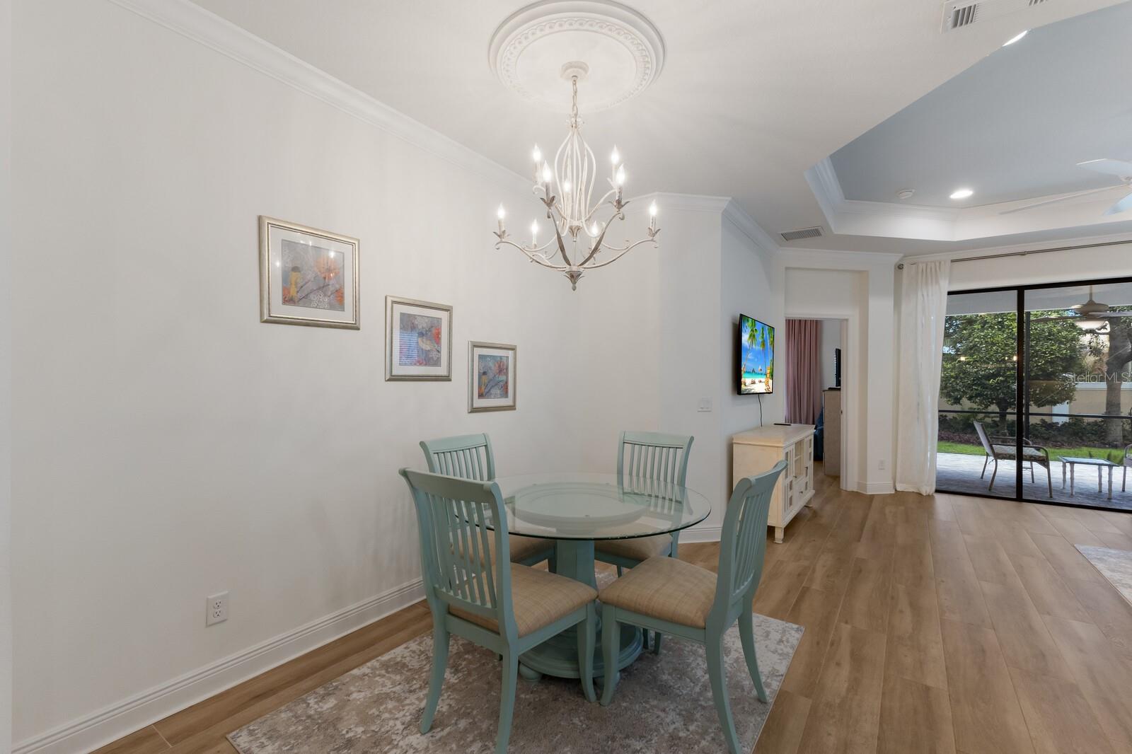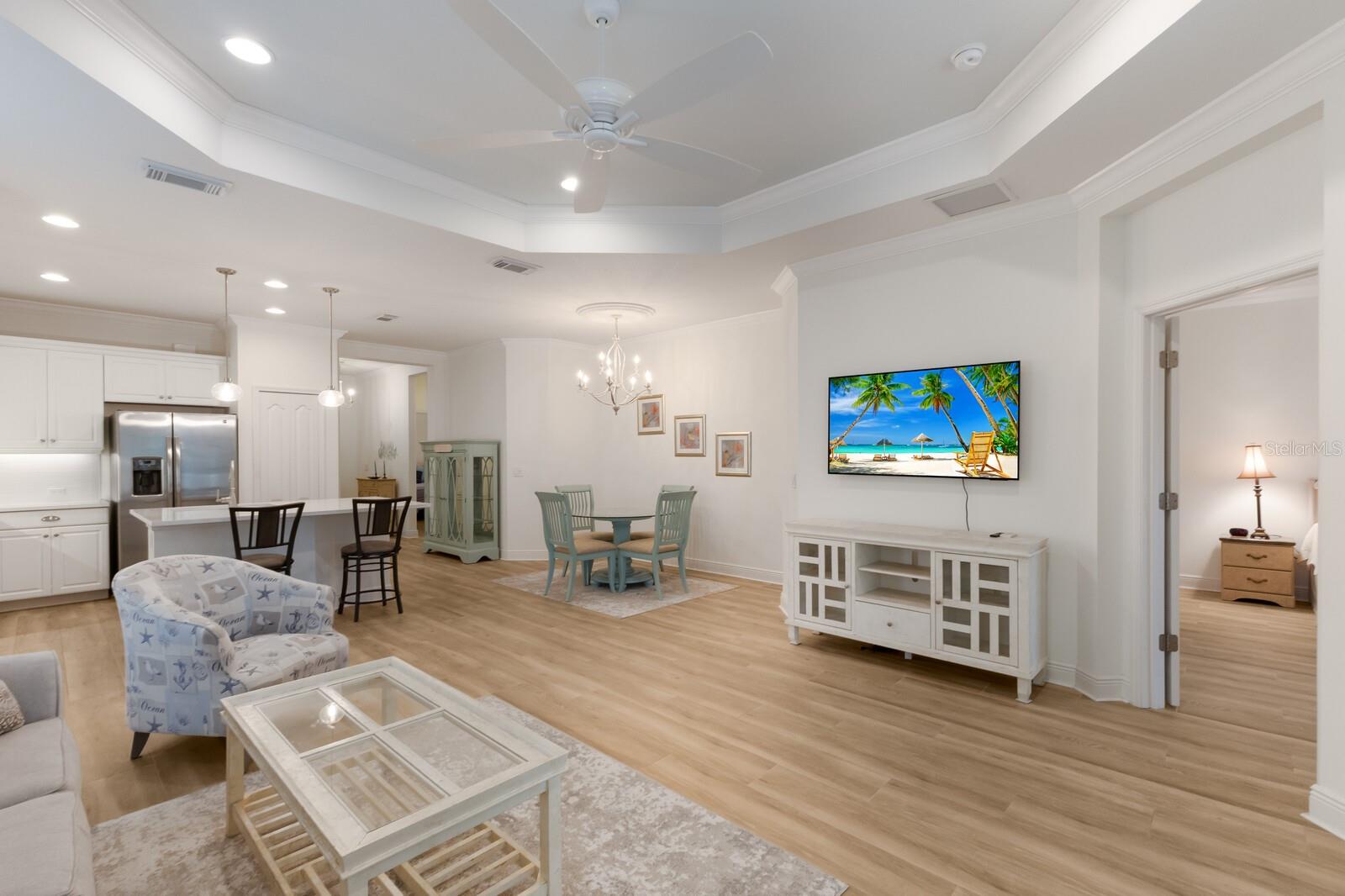 The Art Of Florida Living - Found In Villa Amalfi! Welcome home to this beautiful 2/2 + DEN, Tidewater model where style, comfort, and functionality come together in perfect harmony. Designed with an open-concept floorplan, this villa is ideal for both everyday living & entertaining! You'll fall in love with the beautifully equipped kitchen with extended island, quartz countertops & stainless appliances with gas range. Just to the left there is a charming dining nook perfectly positioned, creating a warm space for memorable meals. Flowing seamlessly from the kitchen, the great room impresses with a tray ceiling & a wall of glass sliders that bring the natural beauty of the outdoors in. The Primary suite boasts an en-suite bath with dual quartz vanities, a large walk-in closet and 2 closets (1 being a walk-in). Just off the foyer, French doors open to a versatile space perfect for a home office or a cozy media room. A thoughtfully designed split plan allows guests to enjoy their privacy in the 2nd bedroom and bath. Beyond the living spaces lies the home's true highlight... A spacious extended lanai, adorned with stunning tile work. It is perfect for lounging in the FL sun or enjoying a glass of wine as evening falls. An added brick patio offers a great grilling spot to dine al fresco and there is a gas hook-up for convenience outdoors as well! Other notable features not to be missed include: High-end plank (wood look) tile flooring throughout, crown moldings, an upgraded laundry, a new screen enclosure at the front entry and a new accordion hurricane shutter on the back sliders for added piece of mind. A two-car garage, paver drive & lush tropical landscape complete this picture-perfect retreat! Living is easy in this gated & pet friendly Neal community, which offers its residents a relaxing community pool/spa, covered cabanas & outdoor kitchen. There are NO CDD's and the lower HOA fee includes all exterior maintenance and reserves for new roofs as well! It is in a prime location near SRQ Airport, I-75, downtown SRQ and the University corridor which offers amazing dining, endless shopping, convenient healthcare, golf options and a short drive to our award-winning area beaches. Added BONUS... This home could be yours FURNISHED! Come take a look!