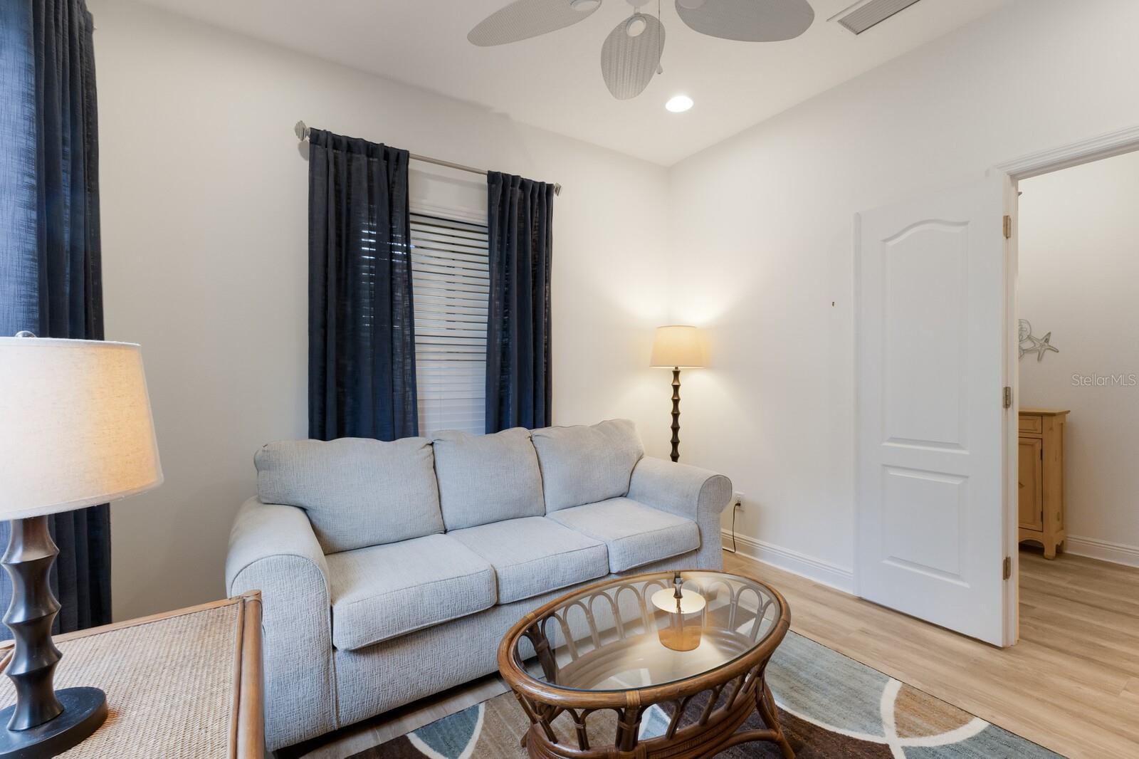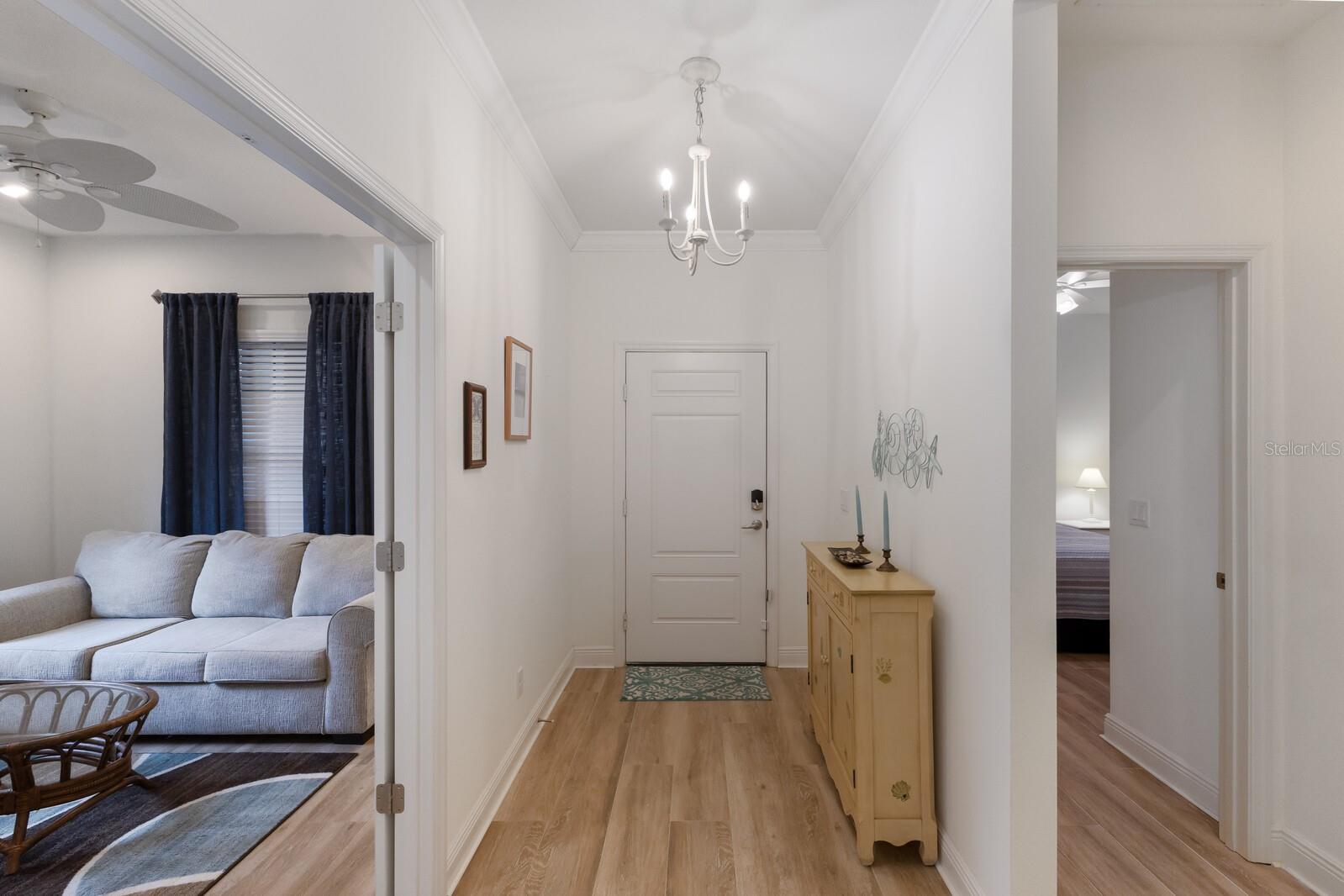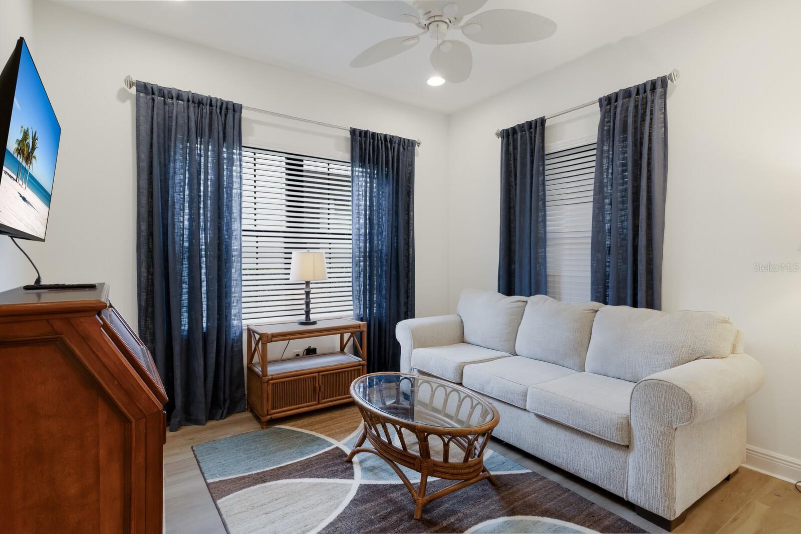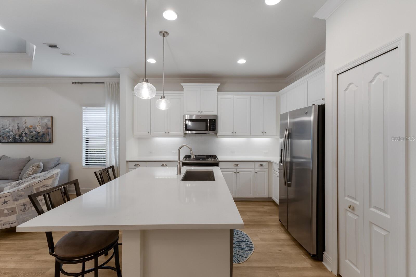 The Art Of Florida Living - Found In Villa Amalfi! Welcome home to this beautiful 2/2 + DEN, Tidewater model where style, comfort, and functionality come together in perfect harmony. Designed with an open-concept floorplan, this villa is ideal for both everyday living & entertaining! You'll fall in love with the beautifully equipped kitchen with extended island, quartz countertops & stainless appliances with gas range. Just to the left there is a charming dining nook perfectly positioned, creating a warm space for memorable meals. Flowing seamlessly from the kitchen, the great room impresses with a tray ceiling & a wall of glass sliders that bring the natural beauty of the outdoors in. The Primary suite boasts an en-suite bath with dual quartz vanities, a large walk-in closet and 2 closets (1 being a walk-in). Just off the foyer, French doors open to a versatile space perfect for a home office or a cozy media room. A thoughtfully designed split plan allows guests to enjoy their privacy in the 2nd bedroom and bath. Beyond the living spaces lies the home's true highlight... A spacious extended lanai, adorned with stunning tile work. It is perfect for lounging in the FL sun or enjoying a glass of wine as evening falls. An added brick patio offers a great grilling spot to dine al fresco and there is a gas hook-up for convenience outdoors as well! Other notable features not to be missed include: High-end plank (wood look) tile flooring throughout, crown moldings, an upgraded laundry, a new screen enclosure at the front entry and a new accordion hurricane shutter on the back sliders for added piece of mind. A two-car garage, paver drive & lush tropical landscape complete this picture-perfect retreat! Living is easy in this gated & pet friendly Neal community, which offers its residents a relaxing community pool/spa, covered cabanas & outdoor kitchen. There are NO CDD's and the lower HOA fee includes all exterior maintenance and reserves for new roofs as well! It is in a prime location near SRQ Airport, I-75, downtown SRQ and the University corridor which offers amazing dining, endless shopping, convenient healthcare, golf options and a short drive to our award-winning area beaches. Added BONUS... This home could be yours FURNISHED! Come take a look!