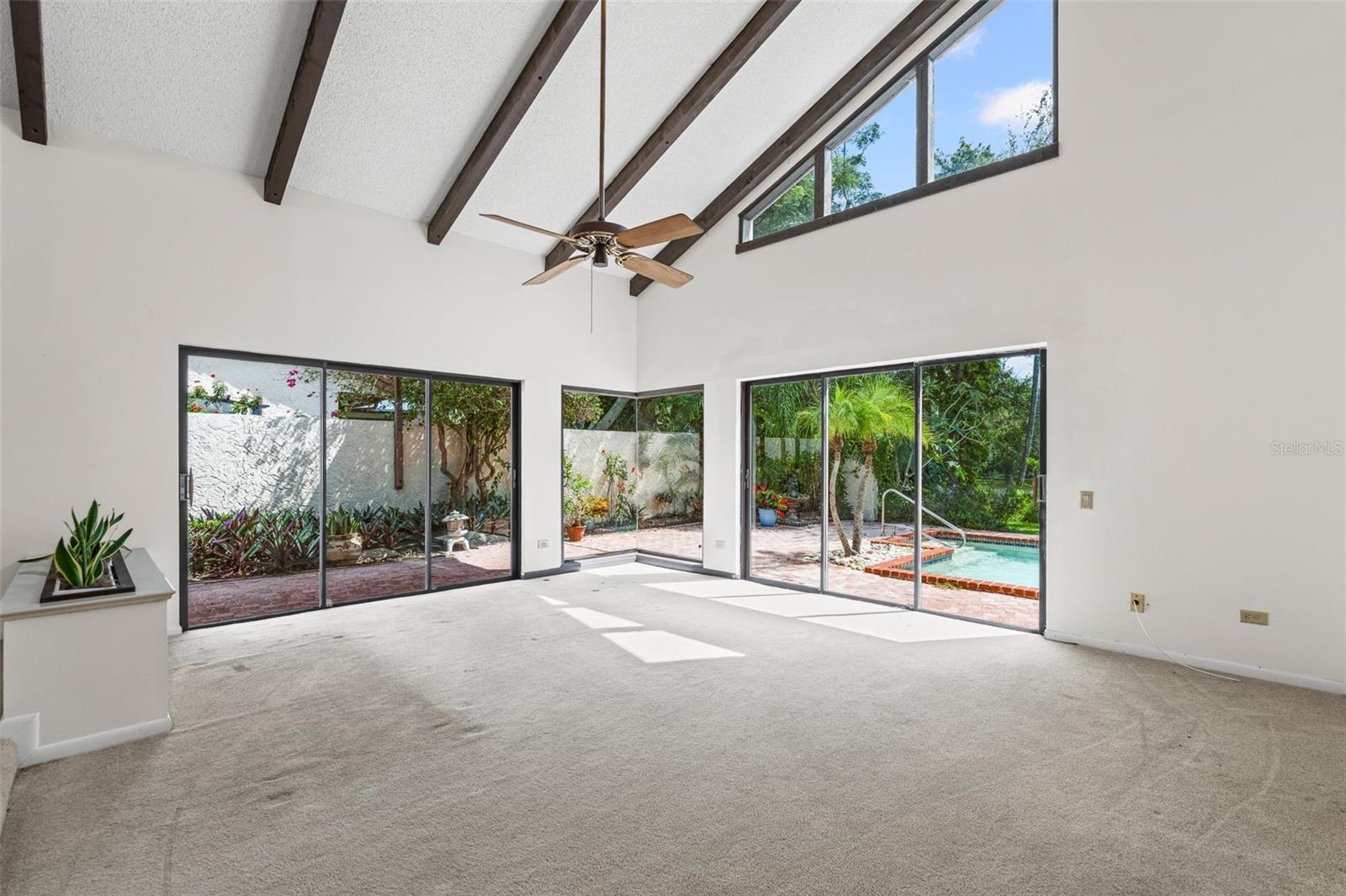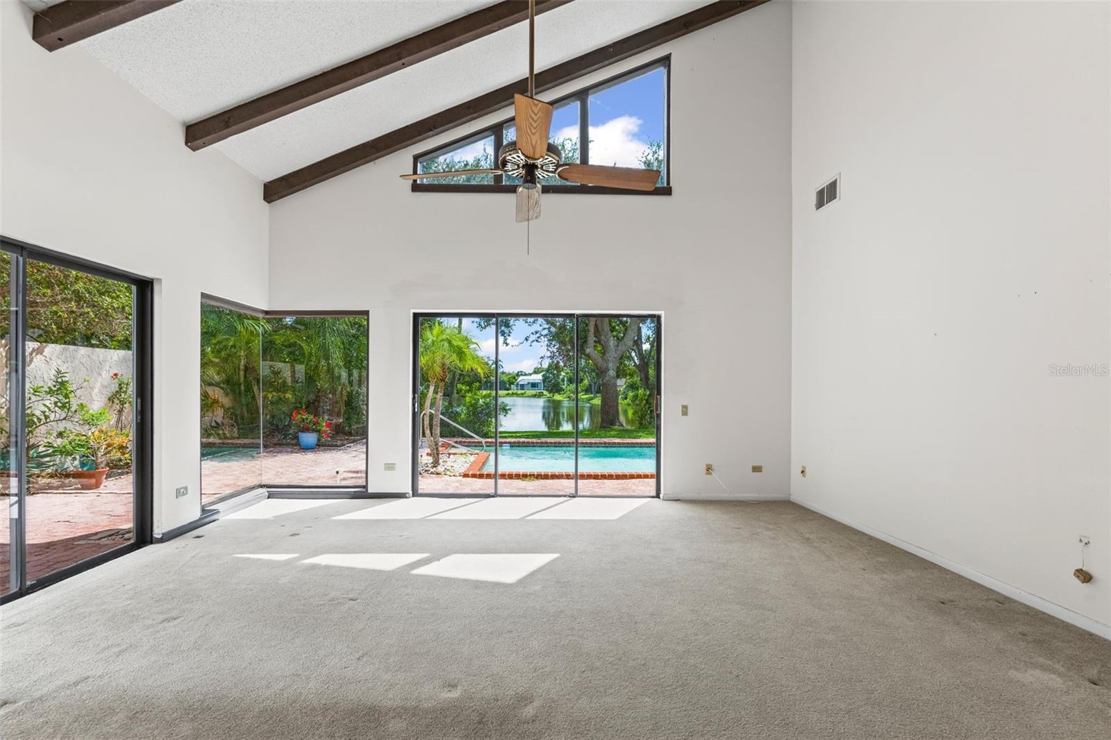 One or more photo(s) has been virtually staged. BACK ON MARKET - DON'T MISS YOUR OPPORTUNITY FOR THIS UNICORN OF A HOME! Welcome to 2214 Kara Chase, Sarasota, Florida - a spacious villa-style condo with character, charm, and endless potential!Truly a one of a kind property featuring 3 bedrooms, 2.5 bathrooms, over 2,300 square feet of air conditioned living space and unique architectural details, making it the perfect canvas for your personal touch. Inside, you'll be greeted by soaring vaulted ceilings and an abundance of natural light from multiple sliders and large windows throughout. Aunique interior atriumbrings the outdoors in, creating a striking centerpiece for the home. The family room and kitchen area provide a warm and inviting space, complete with a cozy fireplace, while the separate dining and living room areas provides flexibility for entertaining or everyday living. Step outside to enjoy your own private retreat: a spaciouspavered courtyardperfect for outdoor dining, and alarge swimming pool overlooking a peaceful lake. The pool was resurfaced just four years ago, ensuring years of enjoyment ahead. Two brand-new garage doors (2025), a new water heater (2025), newer kitchen appliances (2 years old), and one recently replaced AC unit (3 year old). Additionally the 2nd & 3rd bedrooms have a jack-n-jill bathroom, there is a dedicated laundry room and a two-car garage with plenty of storage. The home is part of a quiet, well-kept community with only 12 condos and it has an affordable HOA of just $320 a quarter. Perfectly situated, this property is just minutes fromLakewood Ranch Waterside, a vibrant destination with restaurants, shops, and a lively farmers market, andThe Mall at University Town Center, offering premier shopping and dining. World-class Gulf Coast beaches such asSiesta Key, Lido Key, and Longboat Keyare also within easy reach, along with Downtown Sarasota's rich arts and culture scene. Whether you're seeking a full-time residence, seasonal escape, or investment property,2214 Kara Chase offers incredible value, great bones, and a fantastic Sarasota location.