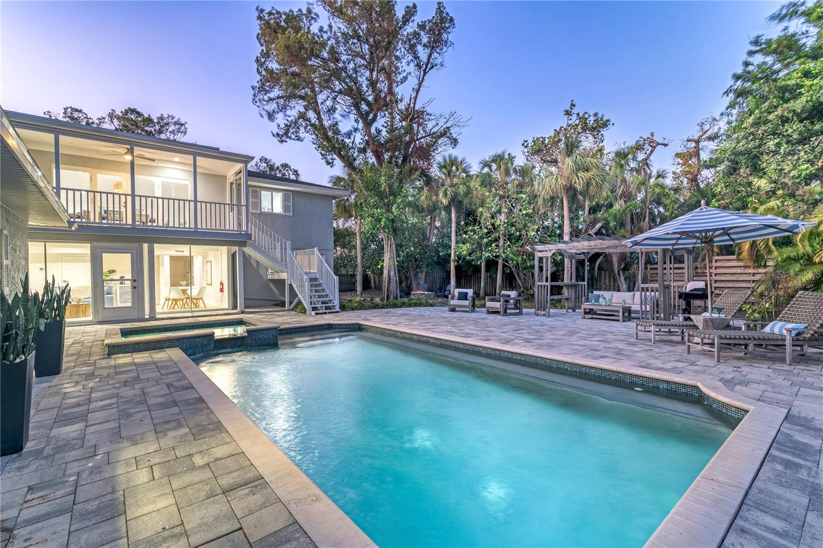 Exceptional Investment Opportunity on Siesta Key - Turnkey 5-Bedroom Home with Strong Rental Income PotentialUnlock the full potential of coastal luxury with this expansive 5-bedroom, 4-bathroom residence offering over 3,700 square feet of casually refined living space. Perfectly situated on an oversized, private lot just minutes from the world-famous Siesta Key Beach, this property is a rare find for savvy investors or those seeking a dual-purpose personal retreat and income-generating asset.Designed with both comfort and functionality in mind, the home features flexible living spaces, an abundance of natural light, a home office, and luxuriously updated kitchen and bathrooms. The kitchen is equipped with high-end stainless steel appliances, custom cabinetry, and ample prep space--ideal for entertaining guests or catering to vacationing families. Step outside to your own tropical oasis: a heated pool and spa, expansive patio, and lush, mature landscaping provide the perfect backdrop for relaxation and outdoor gatherings. The detached 3-car garage offers generous storage for vehicles, beach equipment, and water sports gear--an essential amenity for short-term rental guests. With a 7-night minimum rental policy, this property is perfectly positioned to generate premium vacation rental income year-round. The home's size, layout, and resort-style features make it an ideal choice for large families or groups, significantly increasing its desirability and earning potential in Siesta Key's thriving short-term rental market.