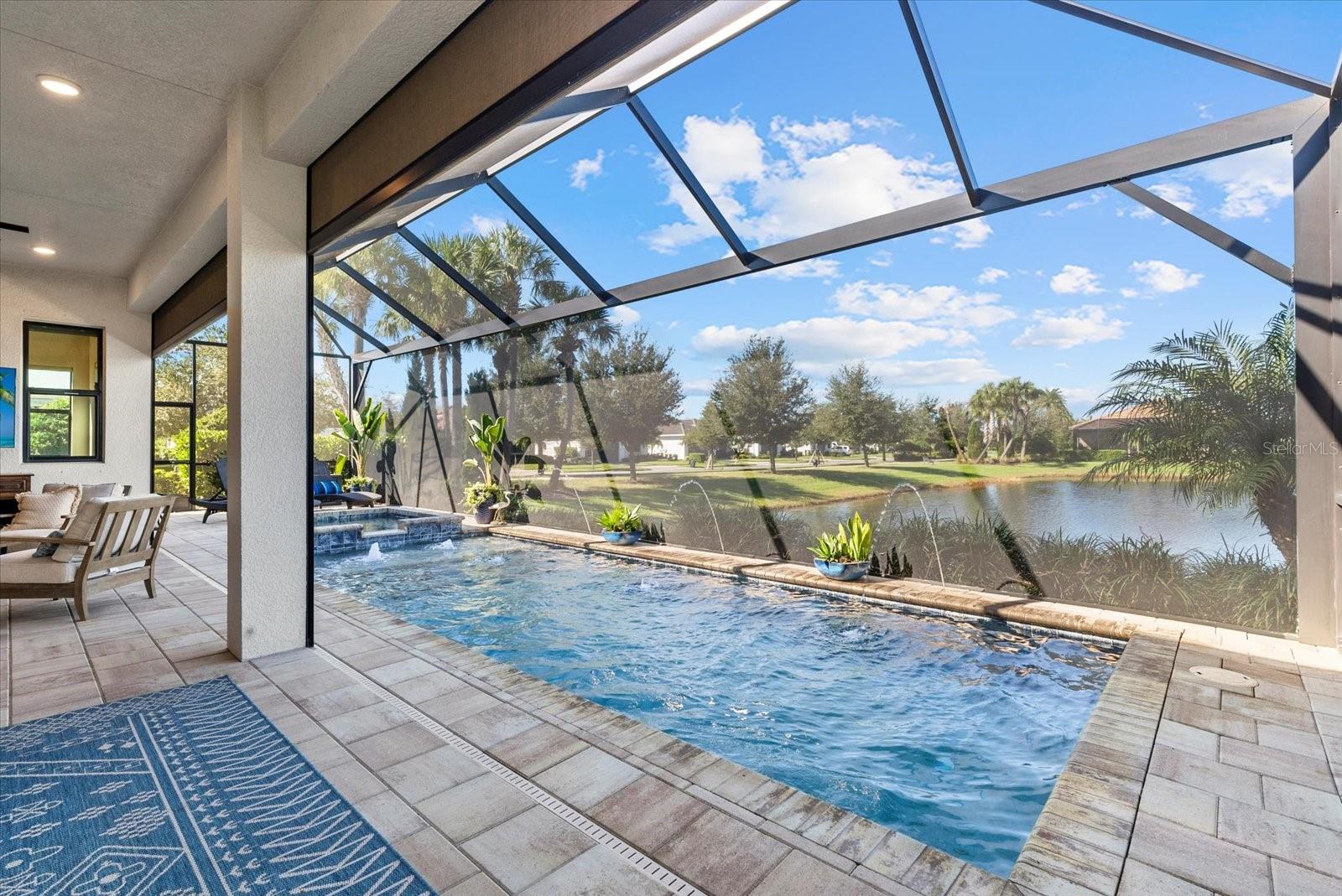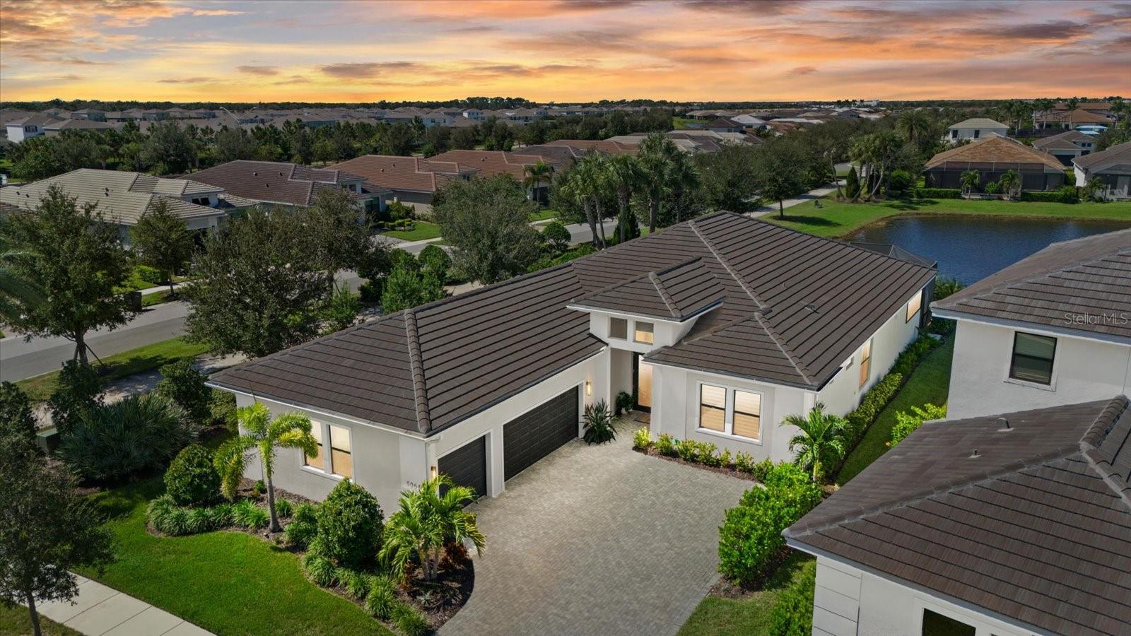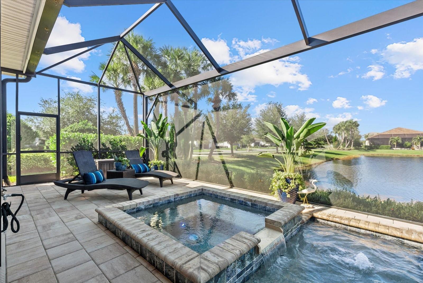 Why Wait? Skip the build time and move right into this better-than-new home in Cresswind at Lakewood Ranch, a premier 55+ resort community. This split floorplan, 3 bdrm 3 bath with den/office, is positioned on an oversized corner lot with sweeping lake and sunset views, this home blends elegance and convenience. Wood flooring flows throughout, while the gourmet kitchen impresses with gas cooktop, custom wooden hood, double ovens, extended quartz island, wine cooler, and abundant upgraded cabinetry. The primary, suite offers custom closets, motorized shades, and a spa-like shower. Flexible spaces include a bonus room with glass French-doors, as den/office space. Outdoors, enjoy a private oasis with panoramic hurricane-rated lanai screens, privacy wall, and a custom pool/spa with waterfall and lighting. Upgrades you won't find in new builds: blue-light air purification, epoxy garage with added insulation, Vitex security, Cat 5 lanai wifi, landscape lighting, and full laundry with cabinets. Living here means more time for what you love--pickleball, tennis, fitness, resort pool, clubs, and events. HOA covers lawn care, irrigation, pest, cable, and internet. This home is *Pre-Loved and Professionally Inspected---schedule your showing today!