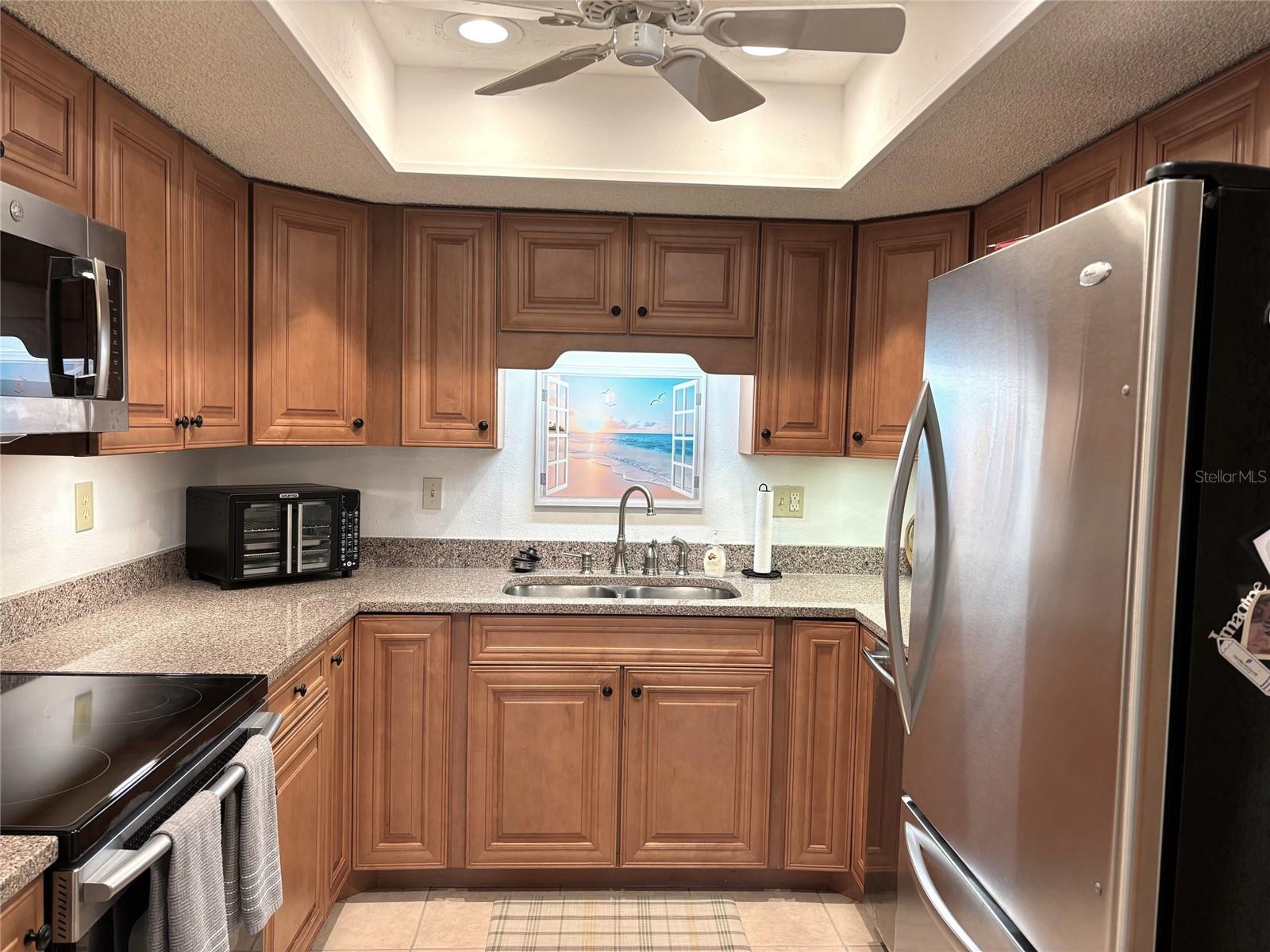 Lovely 2BED/2BATH condo in very desirable 55+ community of MEADOWCROFT. Located in the heart of West Bradenton, this spacious 1269 SqFt end unit is stylish, updated, clean, well-maintained, and MOVE-IN READY. The AC is 2019. The roof, which is covered by the condo association, was replaced in 2019. The kitchen has newer stainless steel appliances, nice wood cabinetry & granite countertops, a tray ceiling with modern can lights & ceiling fan, and a stack washer & dryer. Both bathrooms have been updated with newer vanities and finishes. The neutral tile and LVT flooring will blend well with any decor. You will find yourself enjoying many hours in the FULL-LENGTH LANAI which is glassed-in and equipped with its own air conditioner. This unit is very conveniently located across from the CLUBHOUSE, HEATED POOL, TENNIS & PICKLEBALL courts. Meadowcroft is an active community which offers various fun events & activities throughout the year. This community is PET-FRIENDLY, too. Each condo also comes with a designated covered space for your vehicle in the carport area. Shopping, restaurants, medical & hospital, parks, and our beautiful GULF BEACHES are all just minutes away. Meadowcroft provides MAINTENANCE-FREE Florida living at its finest at a very affordable price. You will definitely enjoy living in this well-managed, friendly, safe, and very conveniently located community in West Bradenton.