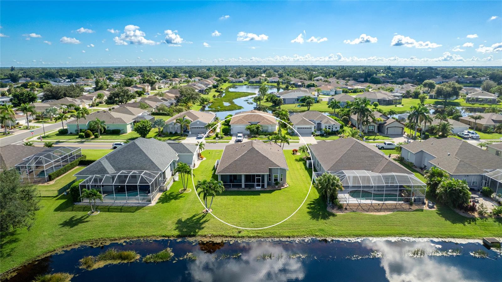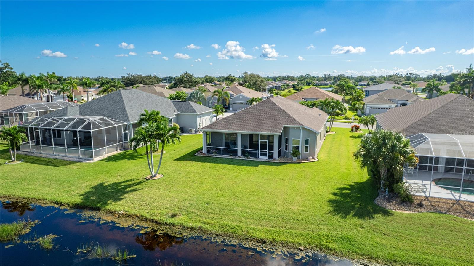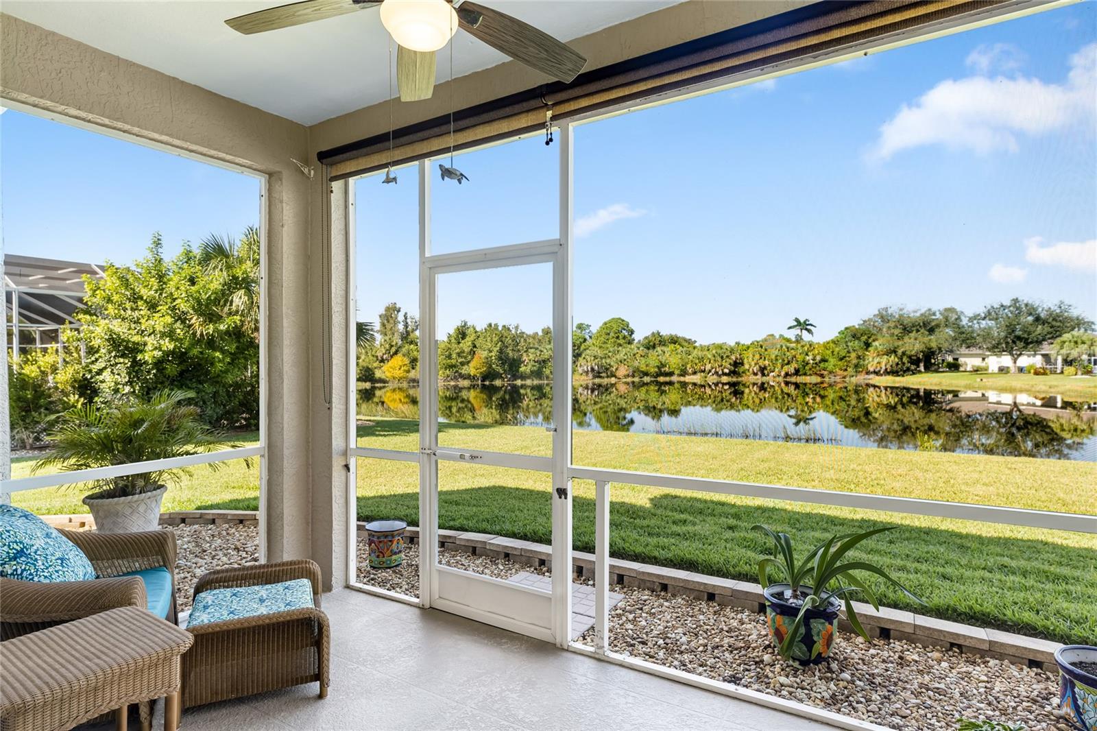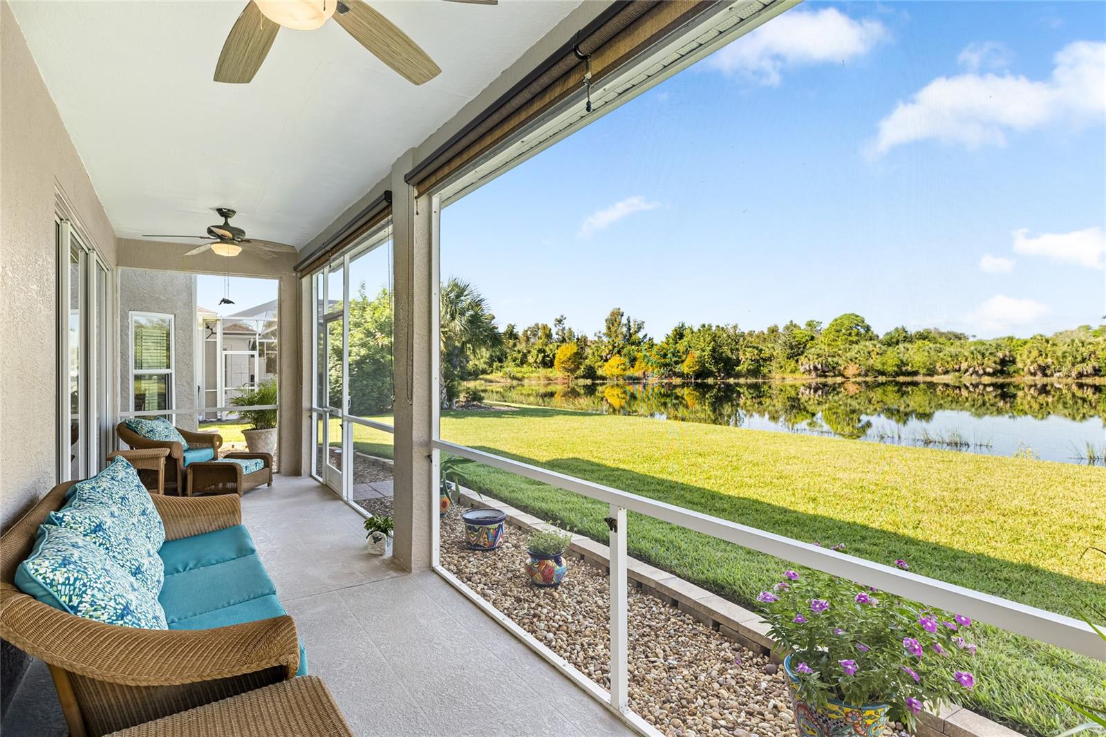 Welcome to this beautifully cared-for home in the desirable Woodmere Lakes community of Venice. Set on a peaceful pond view, this property combines comfort, function, and Florida lifestyle living. From the manicured lawn and landscaping to the screened front porch entry, you'll see the pride of ownership throughout. Inside, the open floor plan with laminate flooring and split-bedroom design offers both style and privacy. The owner's suite is tucked away on its own side of the home, while the guest bedrooms are positioned for convenience with an en-suite and shared bath.At the back of the home, you'll love the west-facing orientation -- perfect for enjoying stunning sunsets. The 28-foot-wide screened lanai is the ideal outdoor retreat, enhanced with retractable sun shades for your comfort year-round.This home has been thoughtfully updated with hurricane-impact windows, an impact garage door, and a whole-home surge protector. Important systems have already been taken care of: roof (2019), AC (2017 with regular maintenance), water heater (2015), re-pipe (2009), plus a new irrigation pump and vent cleanings in 2024. Move in with peace of mind knowing the big-ticket items are done.Perfectly located, you're just minutes from Venice's world-class golf courses and Gulf beaches like Manasota Key, Venice Beach, and Nokomis Beach. Downtown Venice offers charming shops and dining, while the Wellen Park District provides even more restaurants and entertainment. Sarasota Memorial Hospital is nearby for top-rated healthcare. Spend your evenings at the Venice Jetty watching dolphins play and boats cruise by. This home truly delivers the full Florida lifestyle.