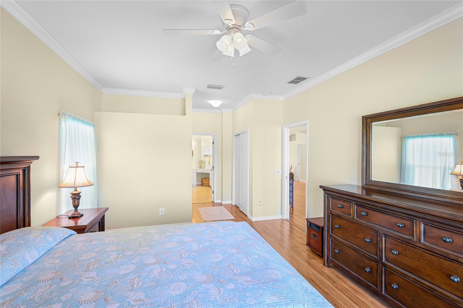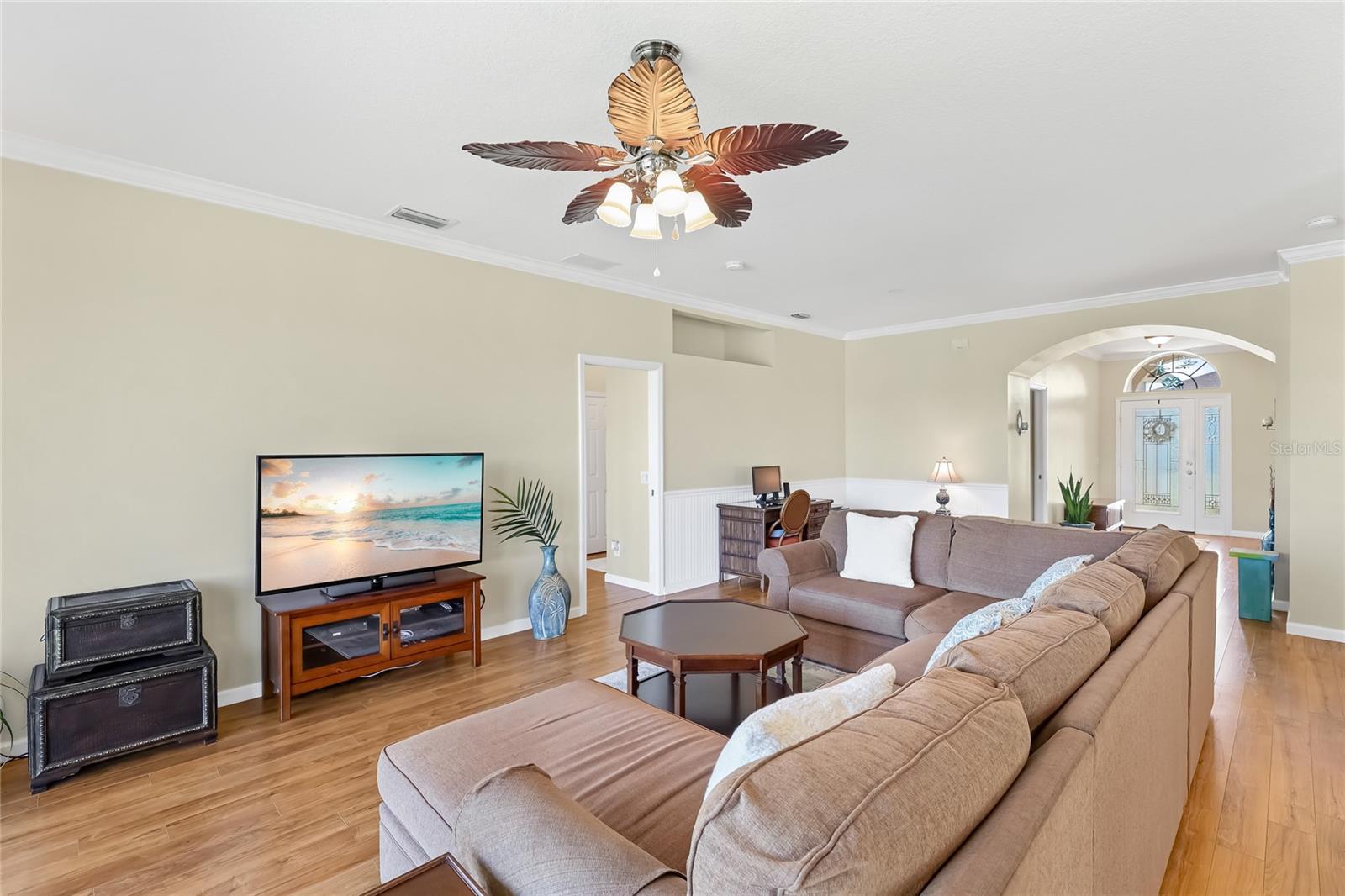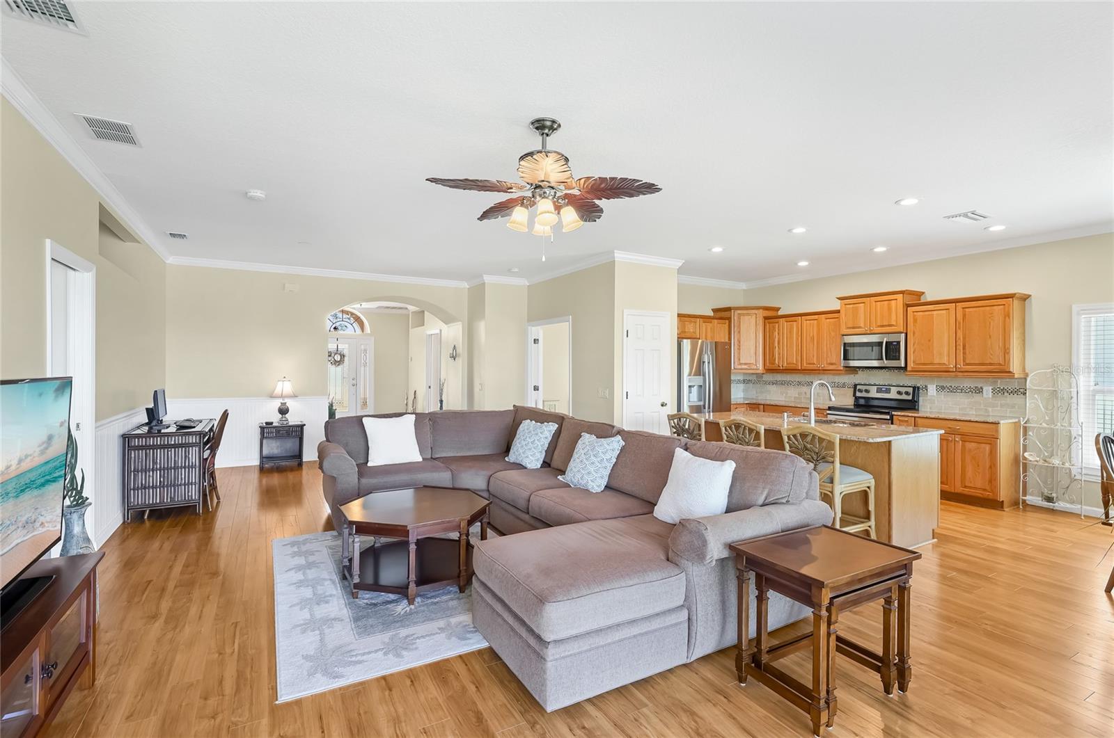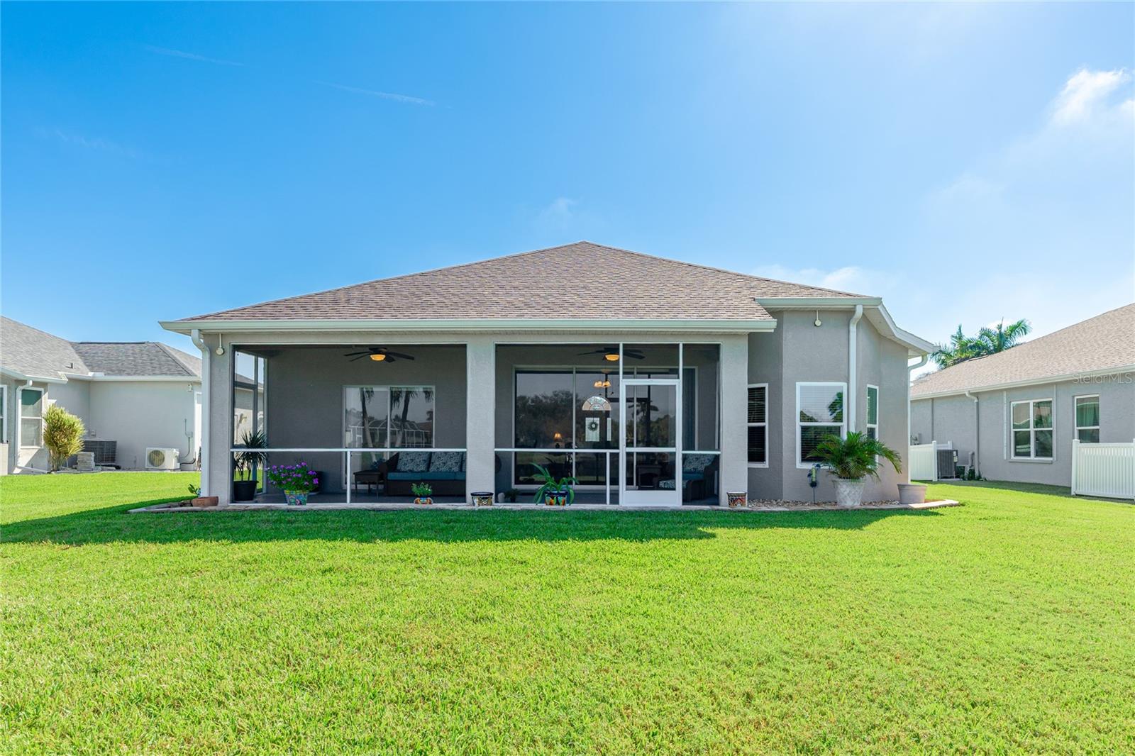 Welcome to this beautifully cared-for home in the desirable Woodmere Lakes community of Venice. Set on a peaceful pond view, this property combines comfort, function, and Florida lifestyle living. From the manicured lawn and landscaping to the screened front porch entry, you'll see the pride of ownership throughout. Inside, the open floor plan with laminate flooring and split-bedroom design offers both style and privacy. The owner's suite is tucked away on its own side of the home, while the guest bedrooms are positioned for convenience with an en-suite and shared bath.At the back of the home, you'll love the west-facing orientation -- perfect for enjoying stunning sunsets. The 28-foot-wide screened lanai is the ideal outdoor retreat, enhanced with retractable sun shades for your comfort year-round.This home has been thoughtfully updated with hurricane-impact windows, an impact garage door, and a whole-home surge protector. Important systems have already been taken care of: roof (2019), AC (2017 with regular maintenance), water heater (2015), re-pipe (2009), plus a new irrigation pump and vent cleanings in 2024. Move in with peace of mind knowing the big-ticket items are done.Perfectly located, you're just minutes from Venice's world-class golf courses and Gulf beaches like Manasota Key, Venice Beach, and Nokomis Beach. Downtown Venice offers charming shops and dining, while the Wellen Park District provides even more restaurants and entertainment. Sarasota Memorial Hospital is nearby for top-rated healthcare. Spend your evenings at the Venice Jetty watching dolphins play and boats cruise by. This home truly delivers the full Florida lifestyle.