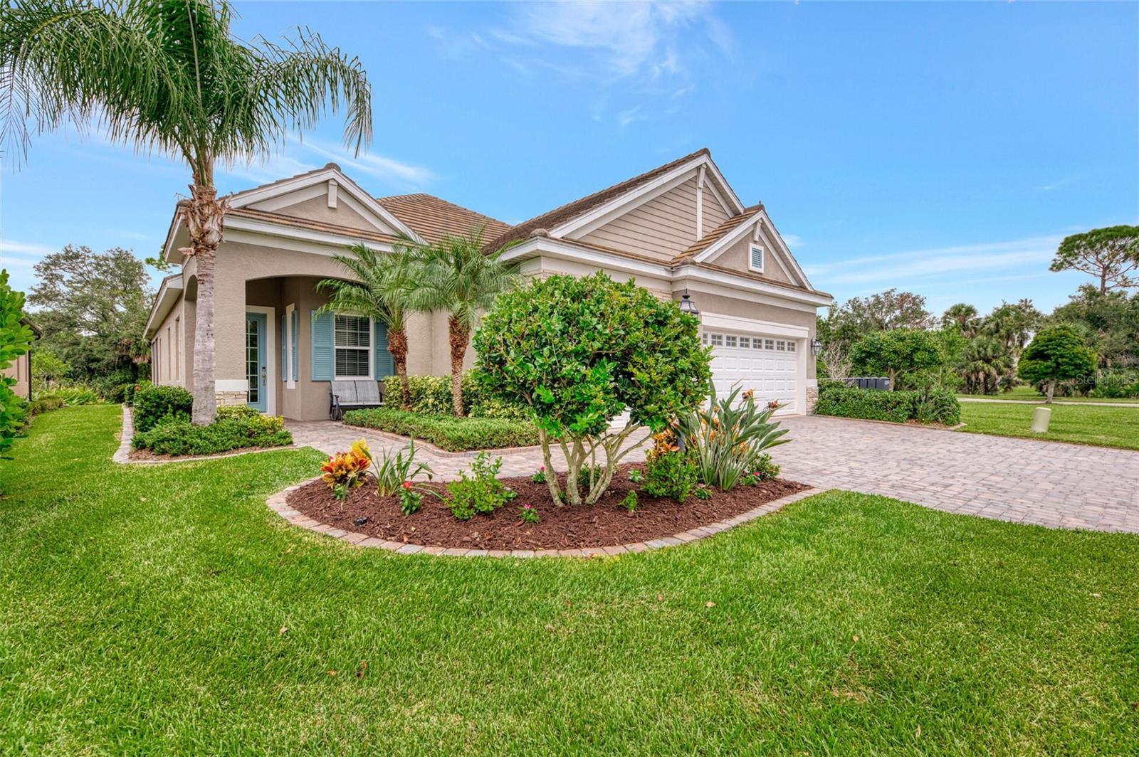 Welcome to Grand Palm's coveted Sea Mist floor plan, where timeless design meets modern luxury. Perfectly situated on a private corner lot with serene preserve and water views, this residence offers 2,427 sq. ft. of elevated living with custom finishes throughout. Offering 3 spacious bedrooms, 2.5 baths, an office, and a 3-car garage, the open design blends functionality with elevated style. The chef's kitchen is the heart of the home, featuring a custom cabinet hood, gas cooking, double-stacked cabinets, and elegant crown molding details. Framed windows and tray ceilings in both the great room and primary suite add sophistication, while custom closets and built-ins provide ample storage. Retreat to the luxurious primary bath with custom tile work extending to the ceiling and a custom 8' x 2' linen closet. The Jack-and-Jill bath impresses with shiplap and full-height tile, while an additional shiplap feature wall adds charm to the third bedroom. Every detail has been carefully considered, from crown molding in every room to a massive laundry room with cabinetry, hanging space, and a laundry tub. Outdoors, enjoy sealed paver driveway, landscaped beds lined with pavers, and a pre-wired pool package with natural gas heater stub-out. Plenty of space to design your dream pool and take in the breathtaking sunsets. With its perfect combination of luxury finishes, custom upgrades, and a setting that delivers serene privacy and sunset views, this Sea Mist is your perfect invitation to Grand Palm living. Grand Palm offers a lifestyle like no other, with endless opportunities for recreation and relaxation. Enjoy a bike ride to Grand Palm's private island, explore Exploration Park (a 10-acre park!), and visit The Social Club, featuring a full-time lifestyle director, a state-of-the-art fitness center, three heated pools (one features a water slide!), a Splash Park, pickle ball, tennis, bocce, and even a private island with fishing piers and walking trails. Don't wait, schedule your private showing today!