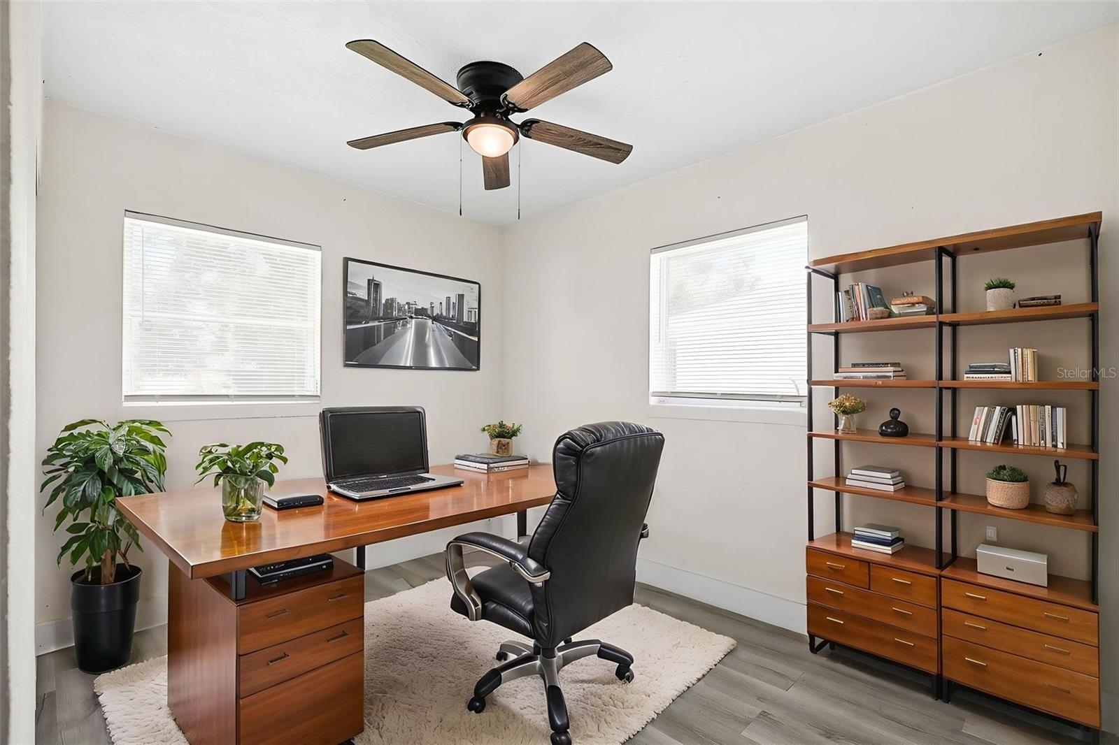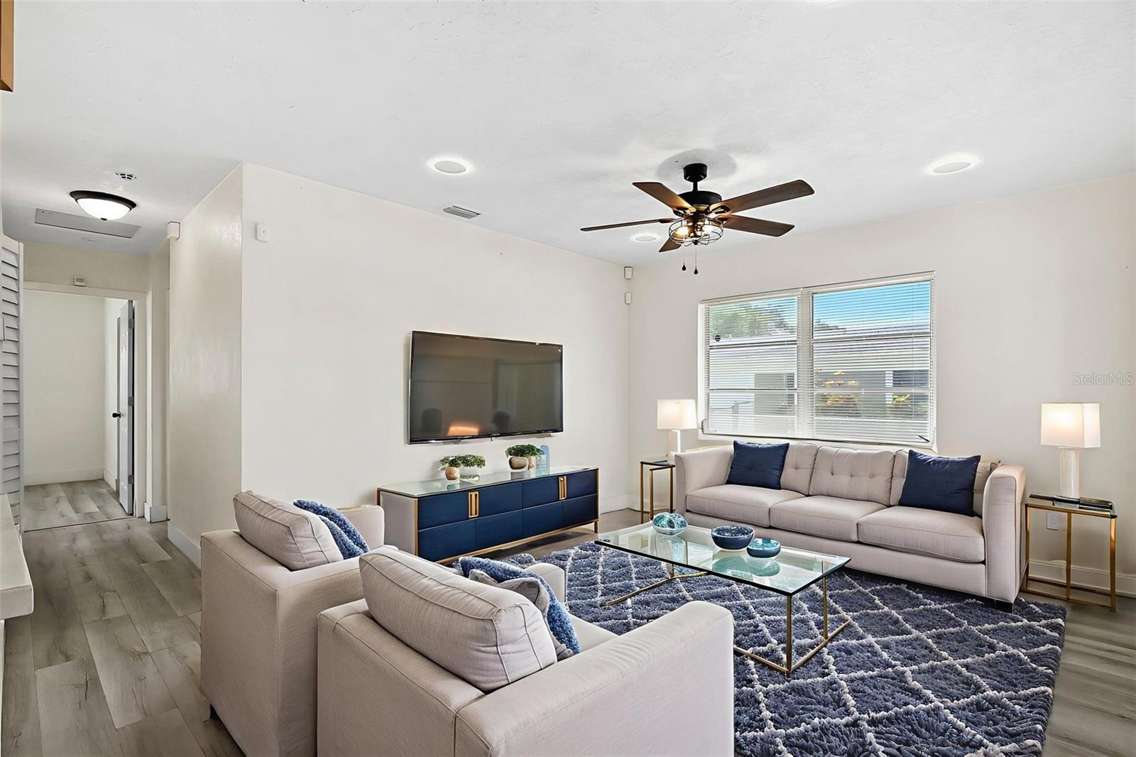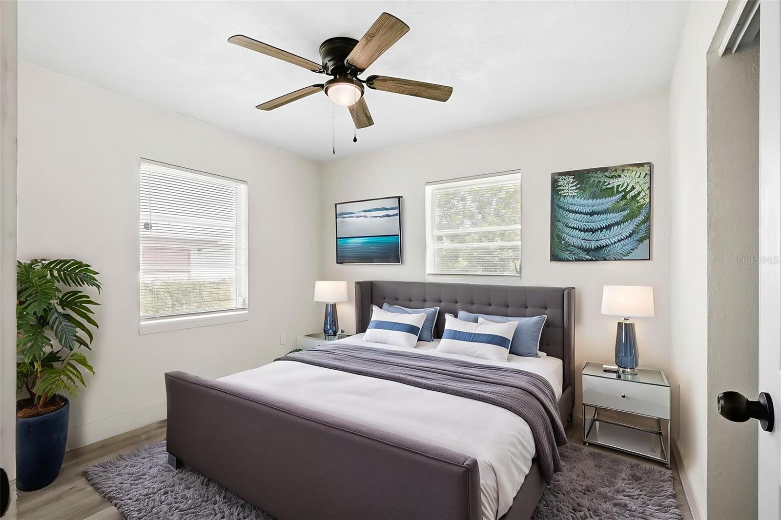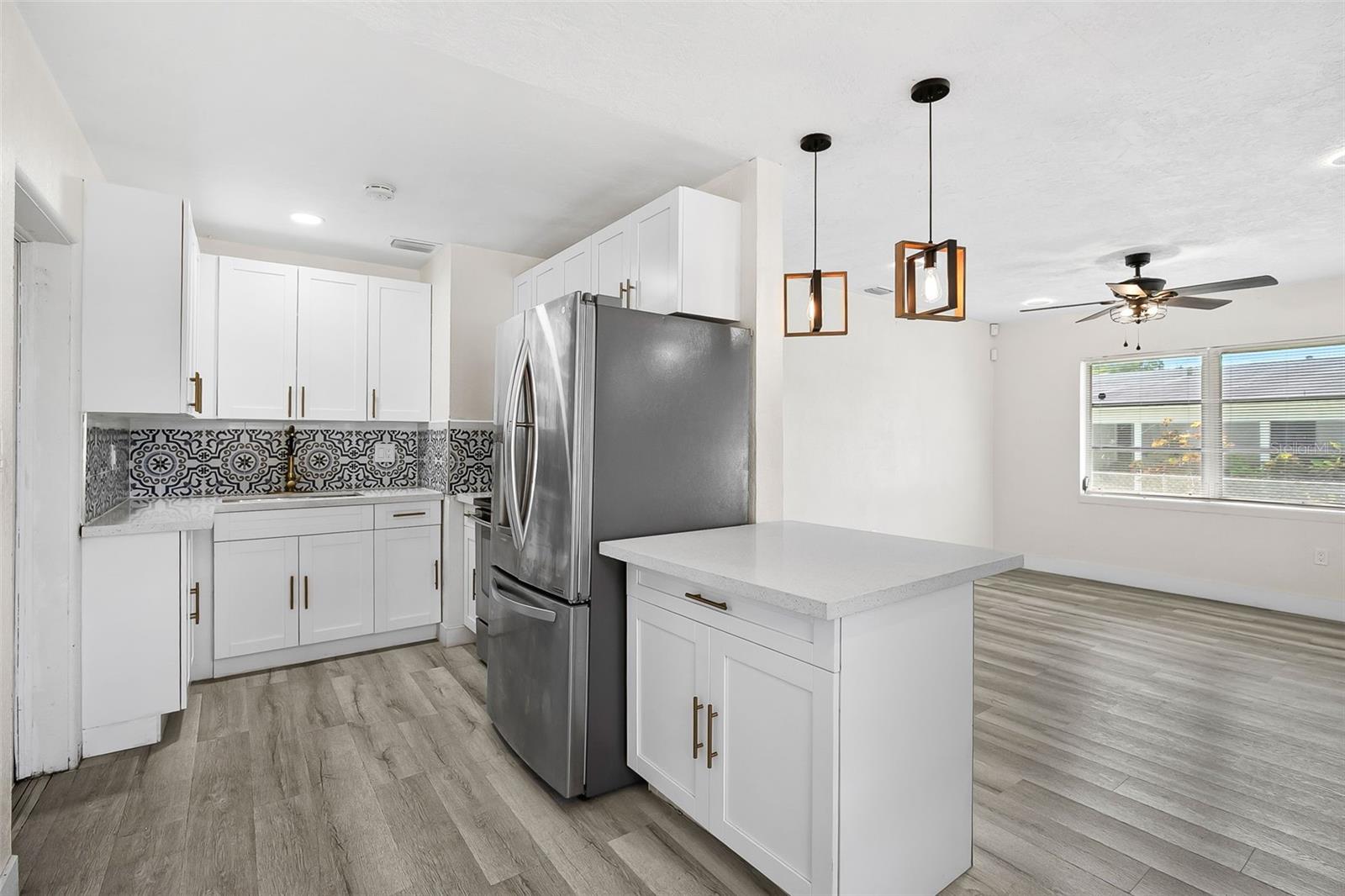 One or more photo(s) has been virtually staged. Welcome to this beautifully maintained 3-bedroom, 1-bath home nestled in the heart of Bradenton. Inside, you'll find stylish vinyl flooring throughout, a modern kitchen with quartz countertops, tile backsplash, and stainless steel appliances, plus plenty of natural light in every room. The home also offers a dedicated utility room with washer and dryer for added convenience.Step outside to a fully fenced yard perfect for pets, and family gatherings. With no HOA or deed restrictions,. Major updates include a newer A/C, a 2017 roof, and a newer water heater, giving you peace of mind for years to come.