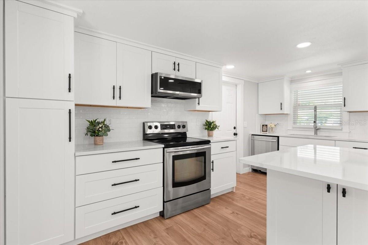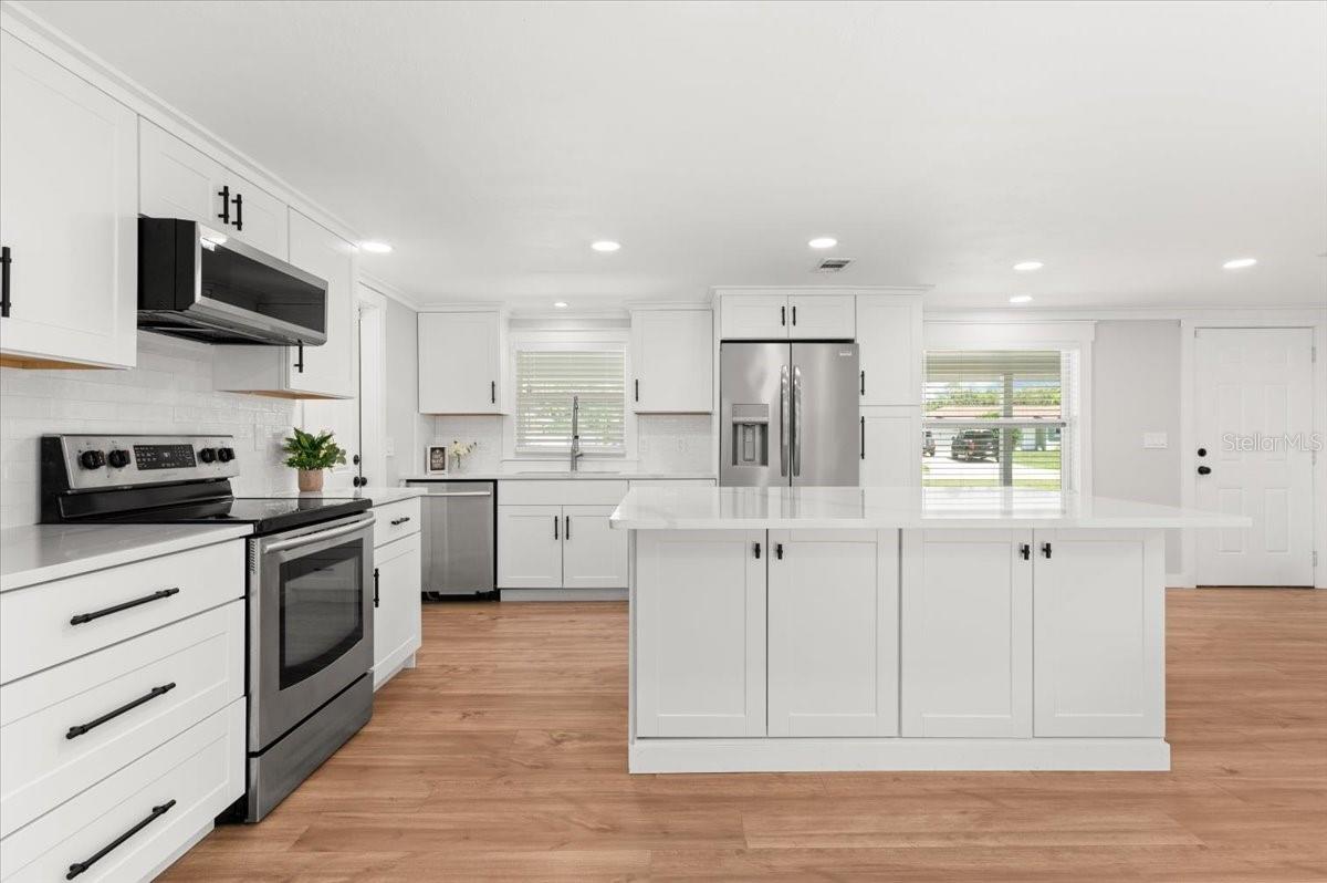 Step into this beautifully renovated 2-bedroom, 2-bathroom home offering 1,144 sqft of thoughtfully designed living space. As you step inside, you're welcomed by a bright and airy open-concept layout featuring brand-new laminate flooring, crisp fresh paint, and updated trim that adds a clean, modern touch throughout the home. The kitchen has been completely transformed with sleek stainless-steel appliances, stunning quartz countertops, and a spacious island that seamlessly connects to the living area. Designed for both functionality and style, the island offers ample storage and seating--ideal for hosting guests or enjoying casual family gatherings. The master bedroom features a spacious closet with custom built-ins for optimal organization, while the versatile second bedroom offers the ideal space for little ones, overnight guests, or a comfortable home office. Both bathrooms have been tastefully renovated with stylish, modern finishes, and the home also includes a generously sized laundry room for added convenience and functionality. This home also includes hurricane impact windows for peace of mind and energy efficiency. Venice East is a prime location just minutes from Venice's best--enjoy easy access to top-rated restaurants, beautiful beaches, and all the vibrant coastal charm the area has to offer. Whether you're a first-time buyer, downsizing, or looking for a turnkey investment, this property checks all the boxes.