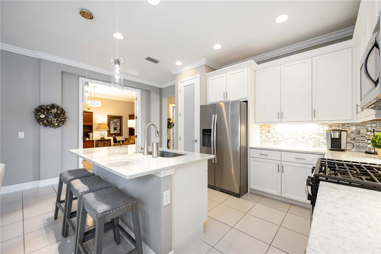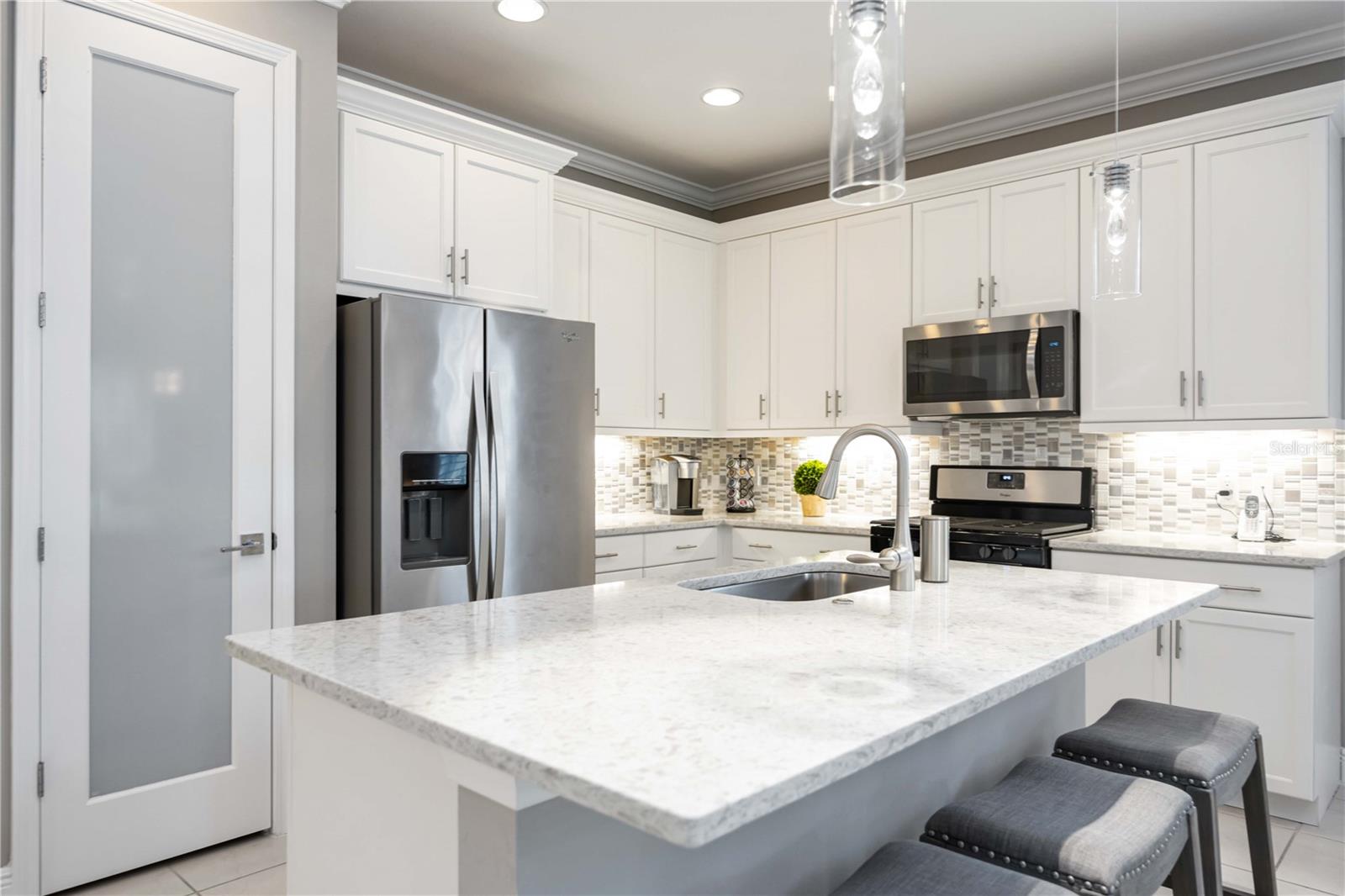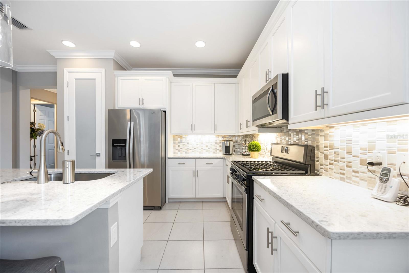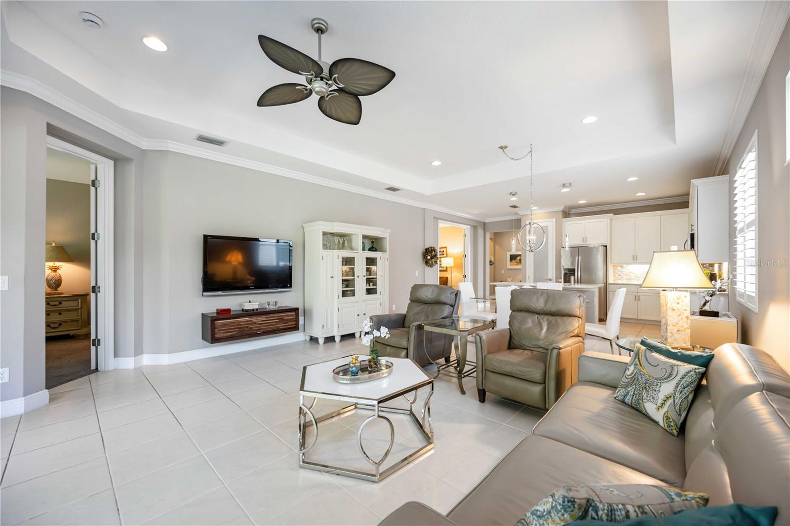 Welcome to this elegant Medallion-built, single-level villa offering effortless living in the sought-after, gated community of University Village. This meticulously maintained home features 2 spacious bedrooms, a versatile den with glass French doors, 2 bathrooms, and a 2-car garage. Enjoy serene and private preserve views from nearly every room in the home, along with an expansive screened-in paver lanai, perfect for relaxing or entertaining. The gourmet kitchen is a chef's dream, showcasing 42" upper cabinets with under-cabinet lighting, a premium stainless steel appliance package, a large center island, and stunning Quartz countertops and matching backsplash.Designer touches throughout include plantation shutters, crown molding in all living areas, and 5 " baseboards. Additional upgrades include a tile roof, paver driveway, and lush, well-maintained landscaping.The luxurious primary suite overlooks the tranquil preserve and features dual walk-in closets, separate vanities, and an oversized walk-in shower.University Village offers low HOA fees, no CDD, and a wealth of amenities including a heated pool & spa, community clubhouse, fenced dog park, and full exterior maintenance for carefree living.Ideally located just minutes from downtown Sarasota and Bradenton, world-class beaches including Siesta Key, Longboat Key, Anna Maria Island, and premier shopping and dining at UTC Mall. Also conveniently close to Benderson Park, Detwiler's Farm Market, and so much more! Don't miss your chance to own this move-in-ready villa in one of the area's most desirable communities!