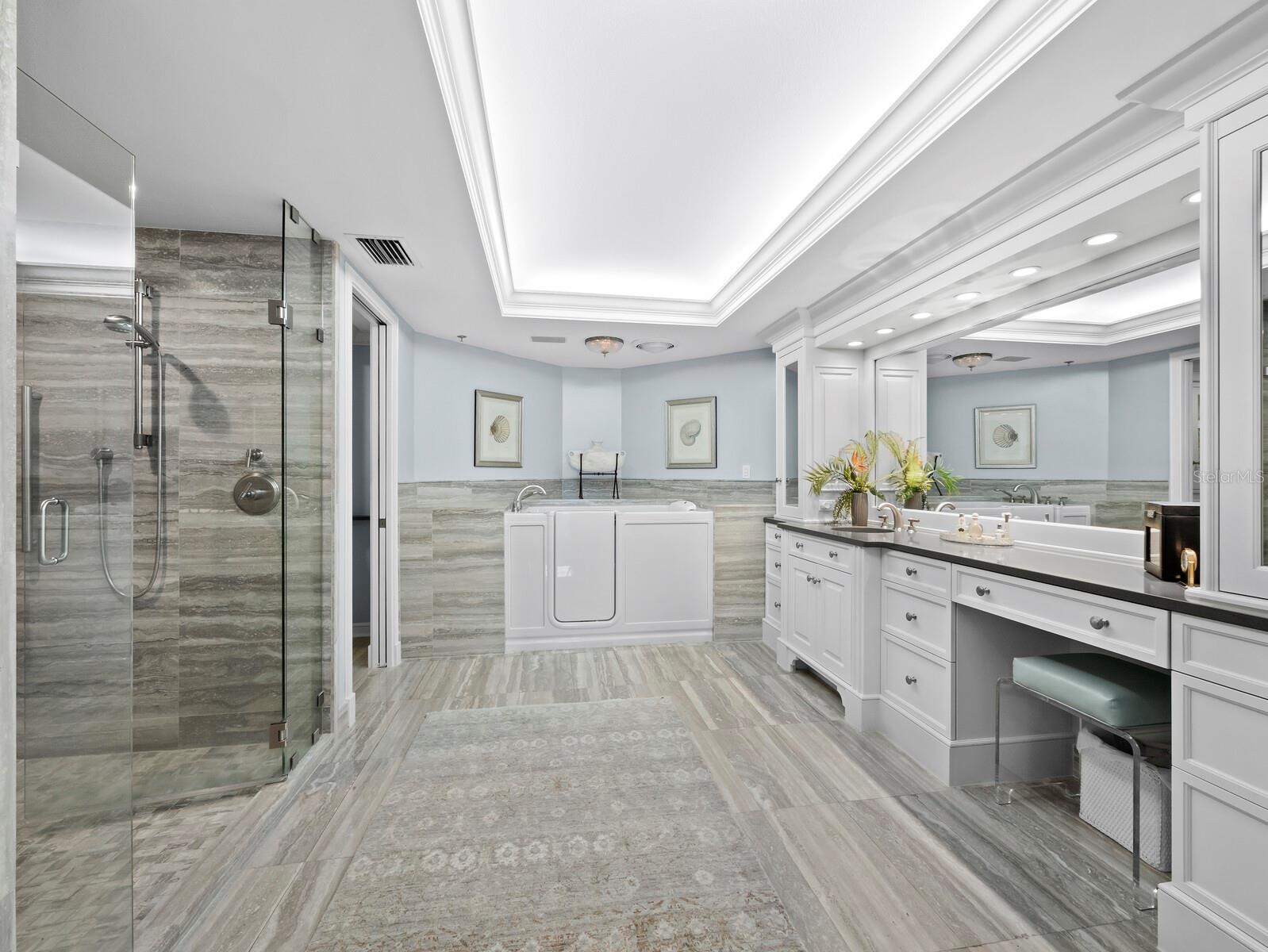 This corner 3 BR / 3 BA + Family Room Penthouse in Marina Bay on Longboat Key offers 3,825 sq. ft. of comfortable living with exceptional views of Sarasota Bay and tropical landscaping. A private elevator opens to a bright, open floor plan with tray ceilings, neutral finishes, and walls of glass that bring the outdoors in. The spacious living room extends to a wrap-around terrace, ideal for dining or relaxing. The formal dining area with wet bar connects to the updated kitchen, featuring custom cabinetry, stone counters, stainless appliances, a center island, and breakfast nook. The split-bedroom layout provides privacy, with a primary suite that includes bay views, terrace access, a custom walk-in closet, and a bath with dual vanities, soaking tub, and glass shower. Two guest suites each have their own baths and generous closets. Marina Bay has new roofs and includes 2 under building parking spaces. Marina Bay offers tennis and pickleball courts, heated pool & spa, on-site management, and 24-hour security. Ownership also includes deeded access to the Bay Isles Beach Club. For those seeking more, optional membership to the Longboat Key Club provides access to championship golf, a world-class marina, tennis, spa, dining, and social amenities.