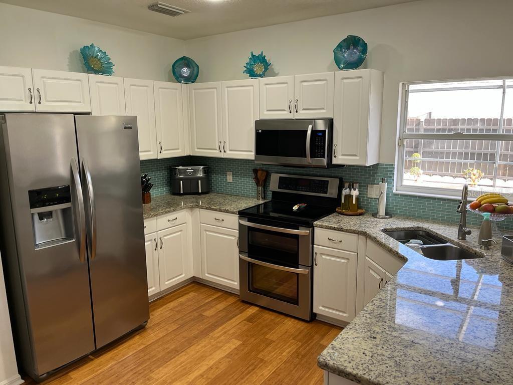 Spacious 4-bedroom, 2.5-bathroom home located at Foster's Creek community, No CDD ,Low HOAUpon entering the home, you will be greeted with bamboo wood flooring which runs throughout the 1st floor living, kitchen and master bedroom .Fenced backyard with Private Pool with screen enclosure. white kitchen cabinets with granite and a pop of color in the backsplash . There's a convenient half bath located on the 1st floor for your guests. The 1st floor master bedroom features a view of backyard/pool and features dual sinks, separate water closet, linen closet and walking closet.Loft & 3 bedrooms, Minutes to both I-75 and I-275 so commuting to Tampa, St Pete, Bradenton & Sarasota is a breeze.