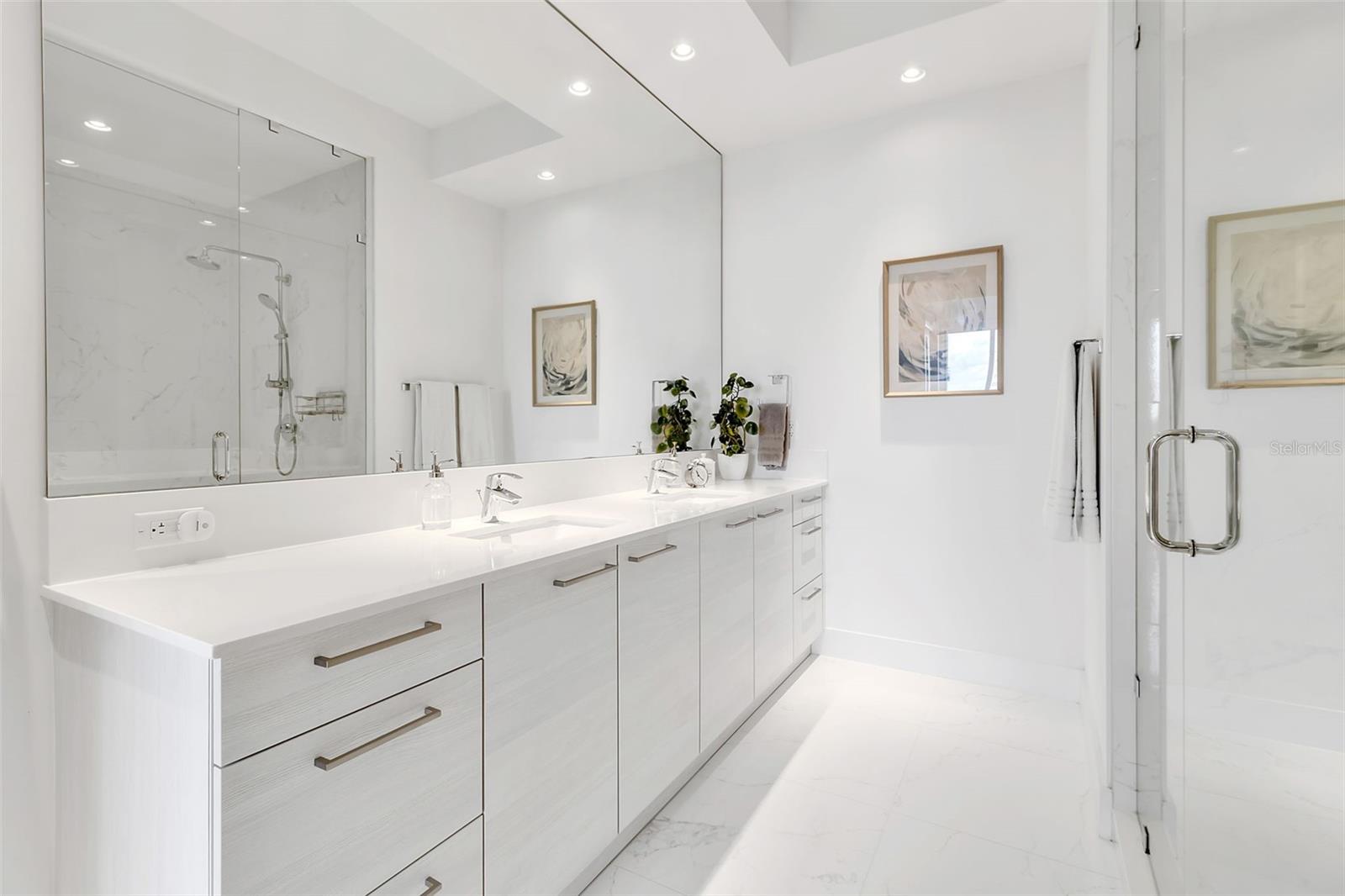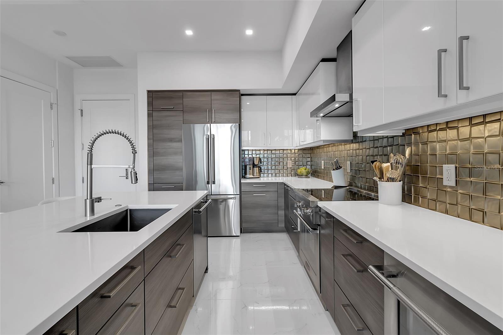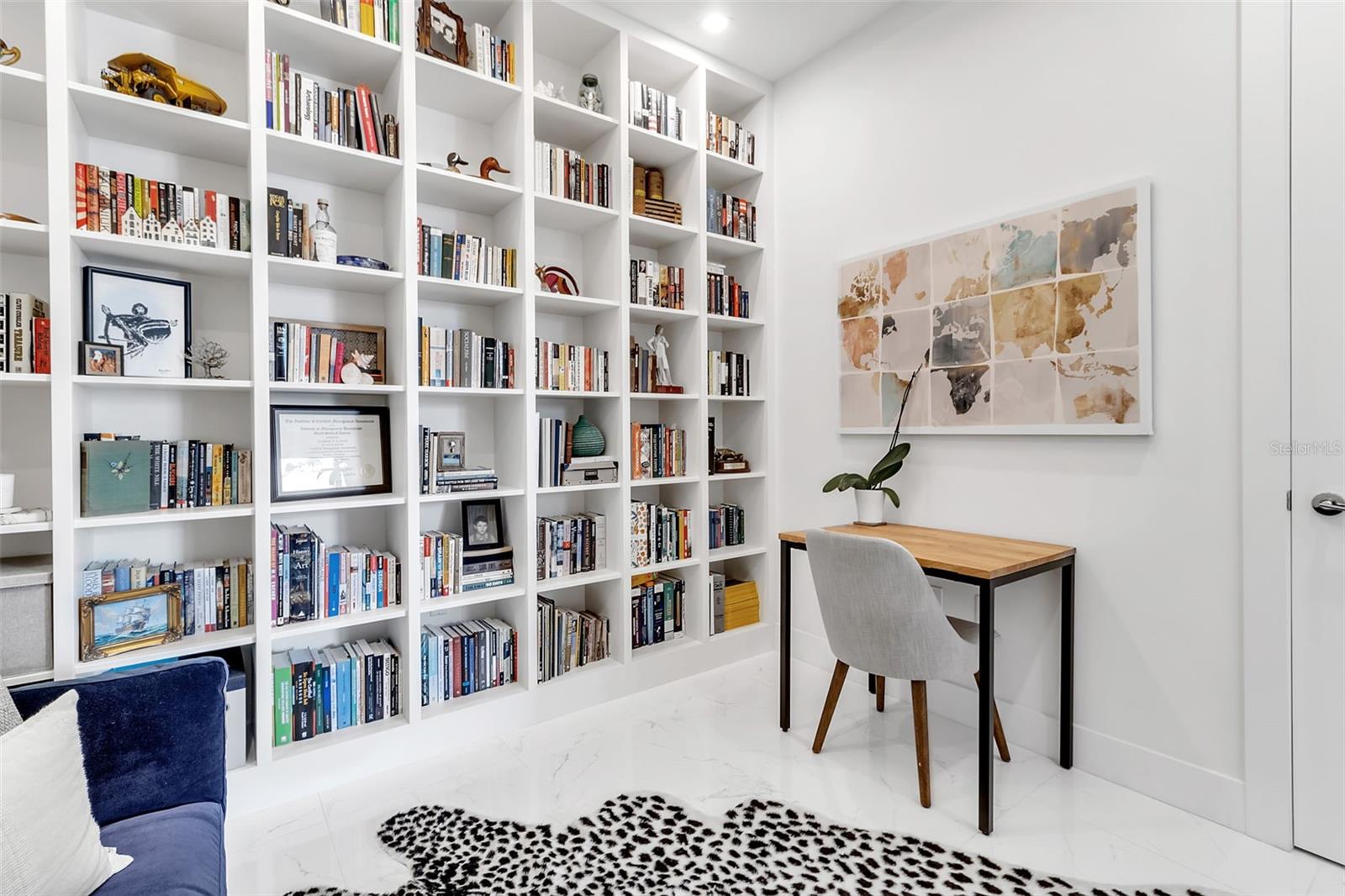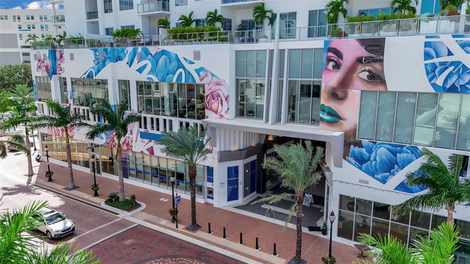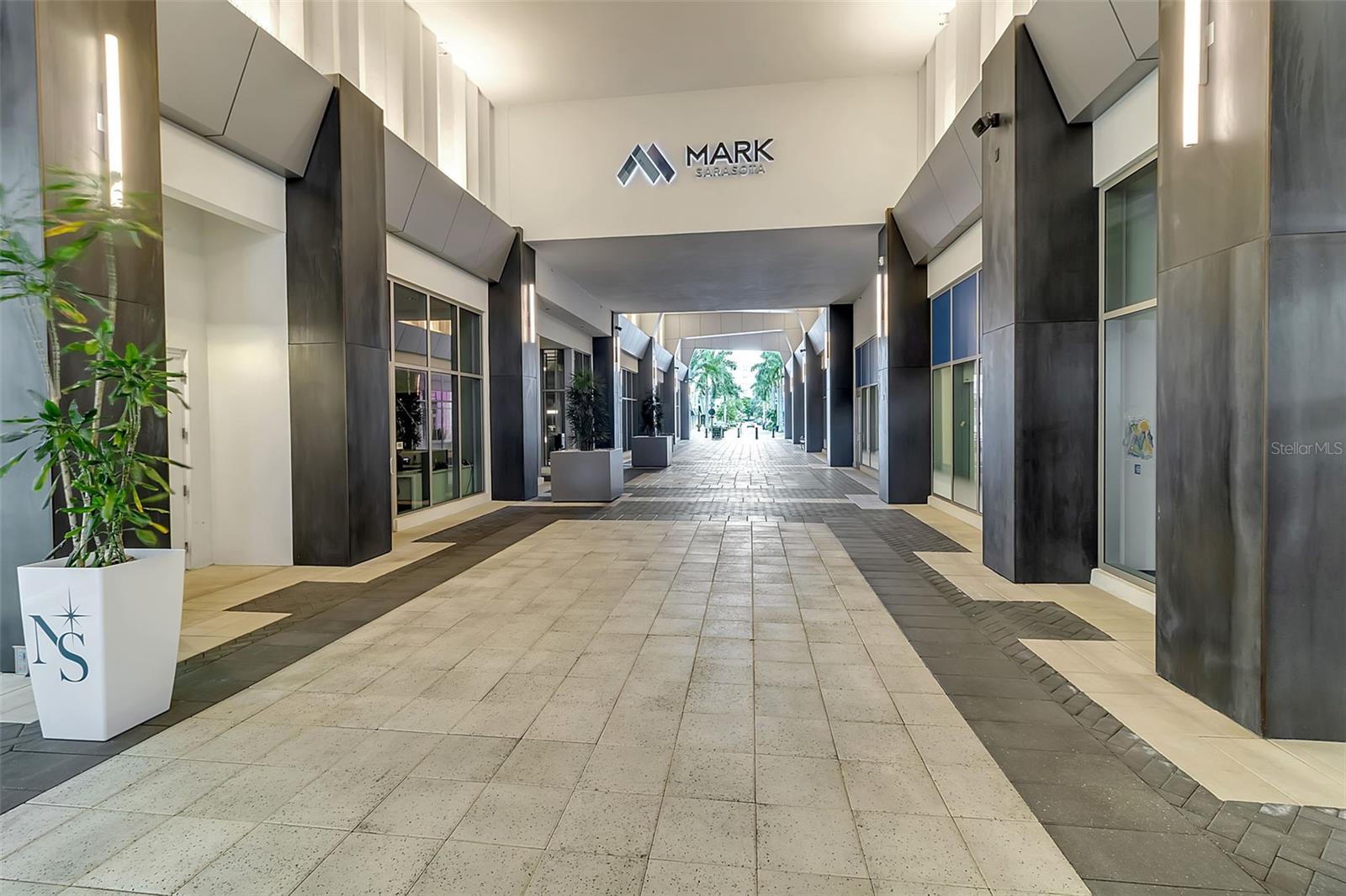 Experience the best of modern downtown living at The Mark Sarasota -- where luxury design meets an unbeatable location. This north-facing 5th floor residence offers a sophisticated urban locale with downtown Sarasota just downstairs. And with a rarely found outdoor living space over 600 sf - this is more than just a home - it's a lifestyle! Step inside this 2-bedroom, 2.5 bath home with a den and discover soaring 10-11 ft. ceilings, clean modern lines, and a seamless flow that extends effortlessly to your 20x40 outdoor terrace--perfect for indoor-outdoor entertaining. Enjoy gorgeous city views from your private retreat - while knowing your residence is built to the highest standards for safety and security. The gourmet kitchen is a showpiece, featuring European cabinetry, quartz countertops, custom backsplash - and newer Thermador stainless steel appliances, including a French door refrigerator and convection cooktop. A custom bookshelf makes the den the perfect spot to unwind and enjoy your favorite book - or privacy if working from home. You'll instantly appreciate the expansive living and dining area - complete with RH lighting, gleaming floors and motorized shades. The split bedroom layout offers privacy and flexibility. The primary suite is spacious and bright, with direct access to the terrace and a spa-inspired bathroom featuring a large glass shower, dual vanities, quartz counters, and elegant marble tile floors. The guest bath boasts modern finishes with a tub/shower combo and glass doors. Your private terrace spans over 600 sf - rarely found in downtown Sarasota. It's the perfect spot for winding down or entertaining a crowd for dinner and drinks. Steps from your door, resort-style amenities await: gorgeous saltwater pool and spa, cabanas, a fire pit lounge and grilling stations for effortless entertaining. Inside you'll enjoy a state-of-the-art fitness center, club room with billiards, catering kitchen and bar - and even a media room for private screenings. With convenience and easy living in mind - you'll also have access to a 24-hour concierge service, two assigned parking spaces, extra storage all in a pet-friendly community. With downtown Sarasota as your front yard, you'll enjoy immediate access to award-winning restaurants, boutique shopping, cultural venues, theatre, a weekly farmers market - all just 2 blocks from Sarasota Bay. Downtown is downstairs!