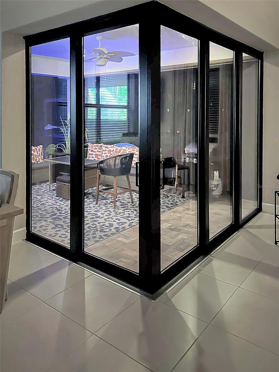 Exterior: Hurricane Shutters, Lighting, Rain Gutters, Sidewalk, Sliding Doors