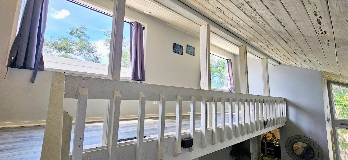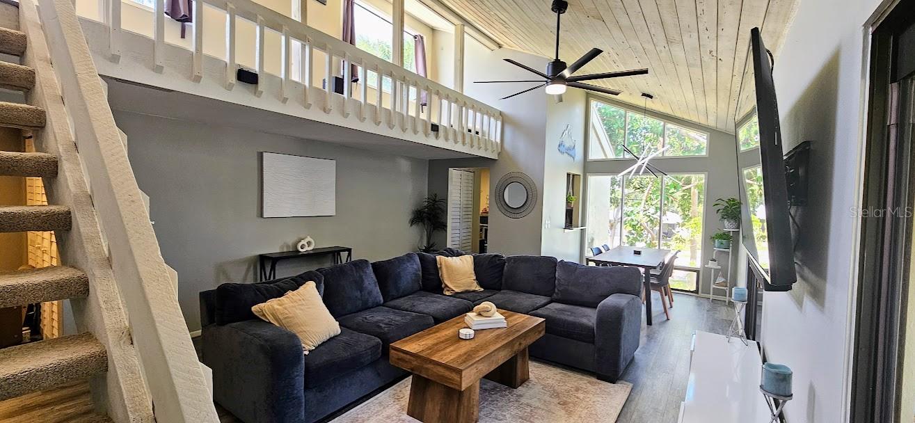 Welcome to this beautifully maintained end-unit condominium ideally situated in one of Sarasota's most sought-after neighborhoods. Just minutes to vibrant downtown Sarasota's arts district, offering fine dining, boutique shopping, theaters, and cultural venues.Close to the scenic Bayfront Park and Marina Jack, perfect for waterfront dining, walking trails, and watching sunsets over Sarasota Bay.Easy access to Sarasota Memorial Hospital, world-class beaches (including Siesta Key and Lido Beach), and premier golf courses.This spacious 2-bedroom, 2-bath split-plan layout offers privacy and comfort, ideal for both seasonal or year-round living. As an end unit, this home features extra privacy and natural light, enhanced by soaring vaulted Pecky Cypress ceilings and large transom windows that fill the open-concept living area with abundant light, while adding warmth and architectural character. The open floor plan includes a spacious kitchen, perfect for entertaining, and flows into the main living and dining areas. Enjoy a bonus loft perfect for a home office, guest space, or creative studio, and relax on two private, screened-in lanais--ideal for morning coffee or evening cocktails. Additional features include updated bathrooms, in-unit laundry, and plenty of storage throughout. Whether you're looking for a primary residence, seasonal retreat, or an income-producing property (with 6-month rental capability), this home offers the best of Sarasota living in an unbeatable location.
