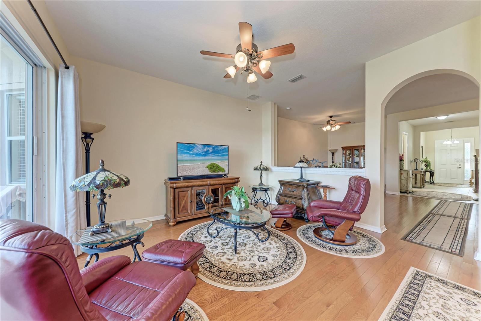 Exterior: Hurricane Shutters, Rain Gutters, Sidewalk, Sliding Doors