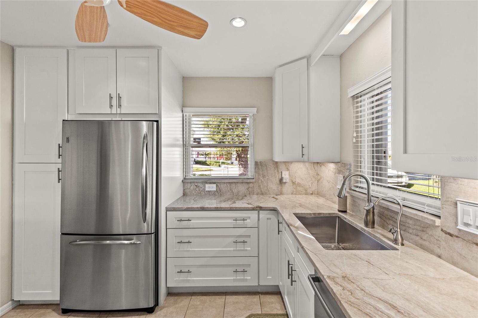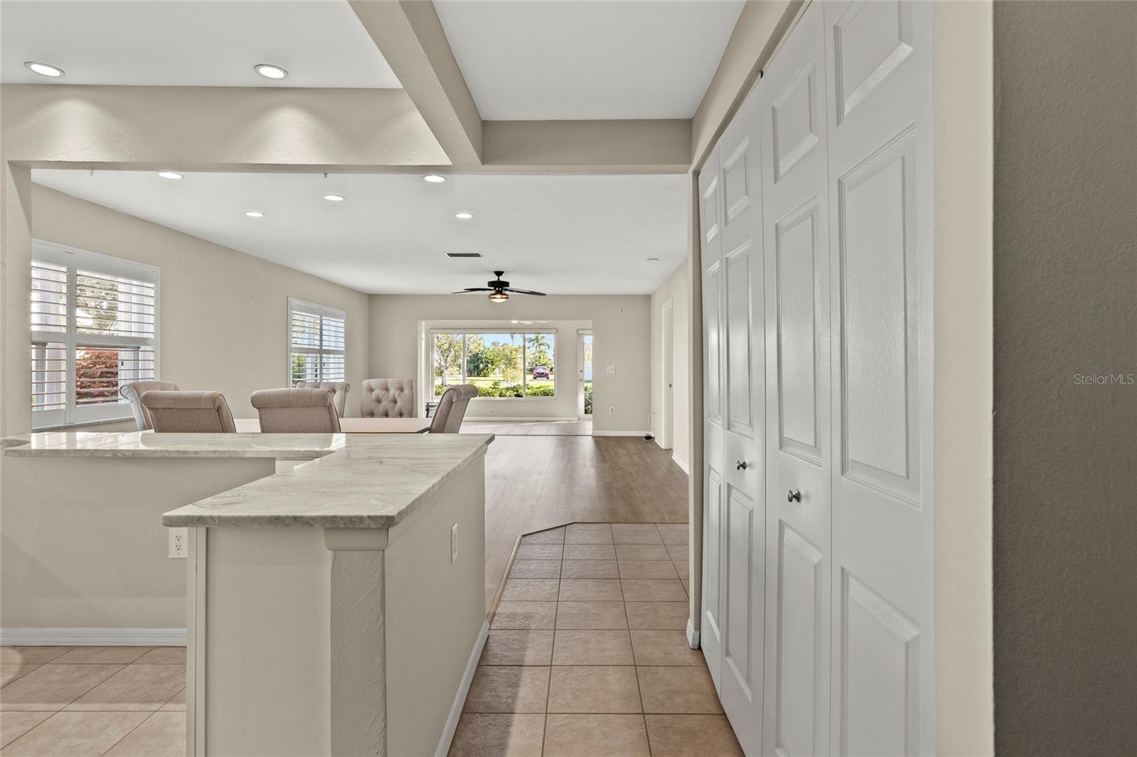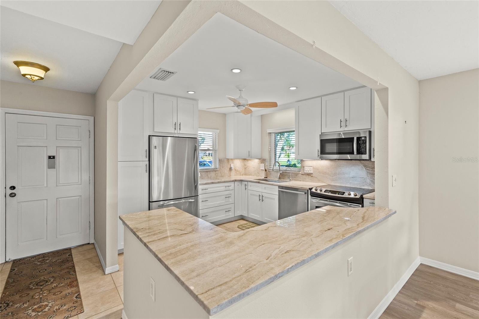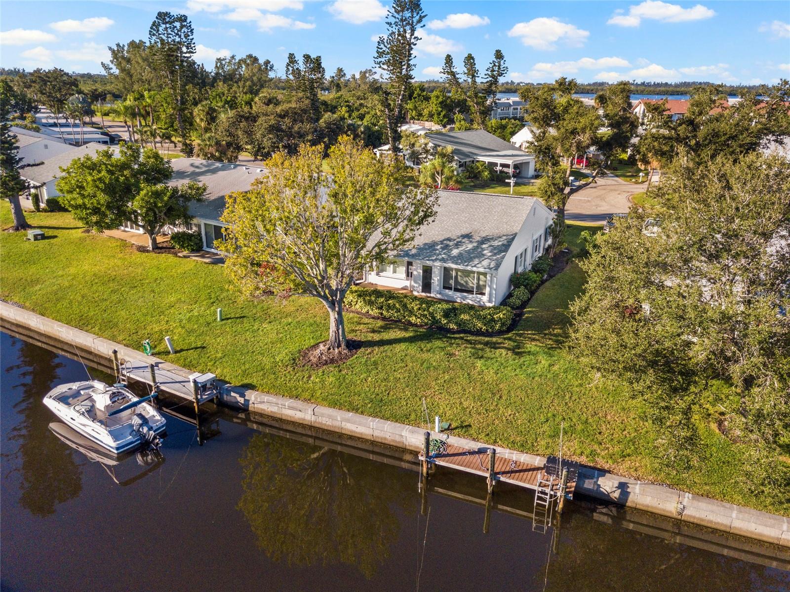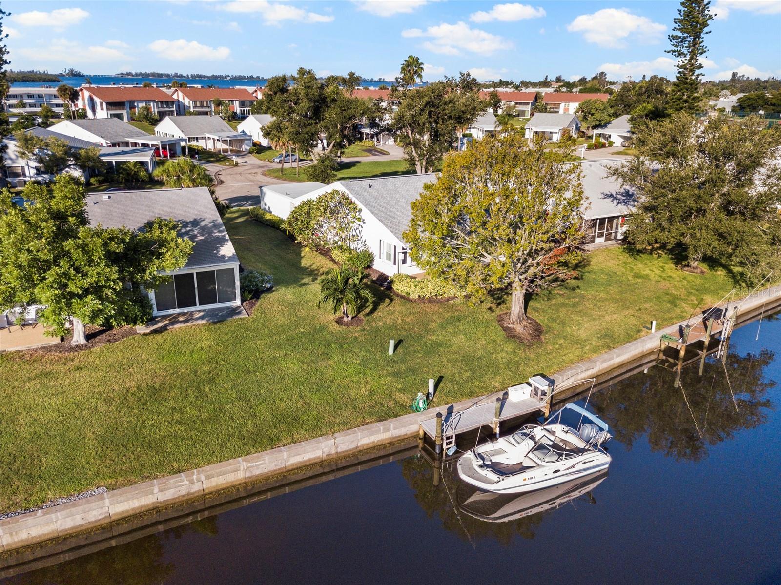 BRING YOUR BOAT! Offers 1% lender credit at closing. Experience the ultimate in waterfront living with this beautifully updated 2BR/2BA stand-alone villa in the highly sought-after Mount Vernon 55+ Community. This home has been completely remodeled with luxury plank vinyl flooring, a modern kitchen featuring stone countertops, solid wood cabinetry, and custom finishes throughout. The primary suite offers serene canal views, a spa-like ensuite bath with bidet, and a custom walk-in closet with organizers. A split-bedroom layout provides privacy for guests, with the second bedroom offering a built-in workspace and extra storage.Enjoy direct water access with no bridges to Sarasota Bay or Anna Maria Island--perfect for boating enthusiasts. Boat dock spaces are available to rent for only $25 annually, and the new roof (2023) provides added peace of mind. Seller also offers transferable flood insurance, homeowners insurance, and an active service contract on the AC unit--providing exceptional value and protection for the new owner.Mount Vernon residents enjoy resort-style amenities including a heated pool, pickleball and tennis courts, shuffleboard, kayak storage and launch, walking trails, a scenic lakeside gazebo, and a vibrant community center with frequent social activities and a library.Don't miss this rare opportunity to own a fully updated waterfront villa offering luxury, comfort, and Florida's best coastal lifestyle!