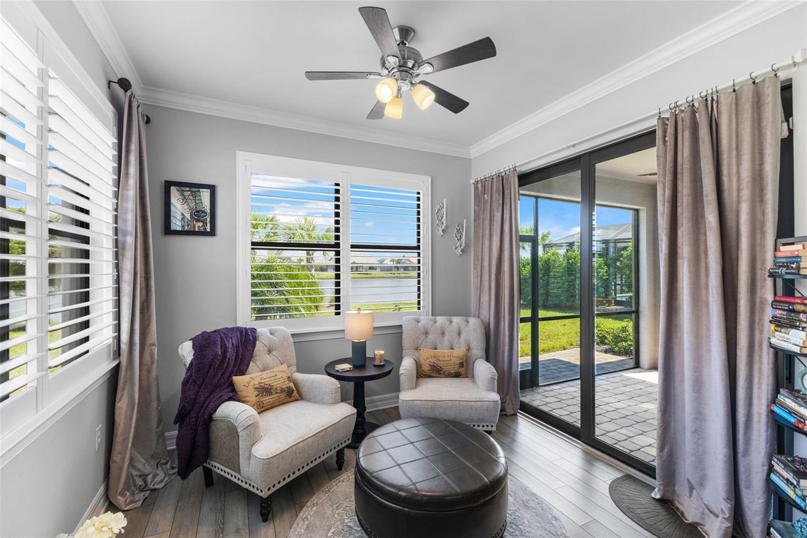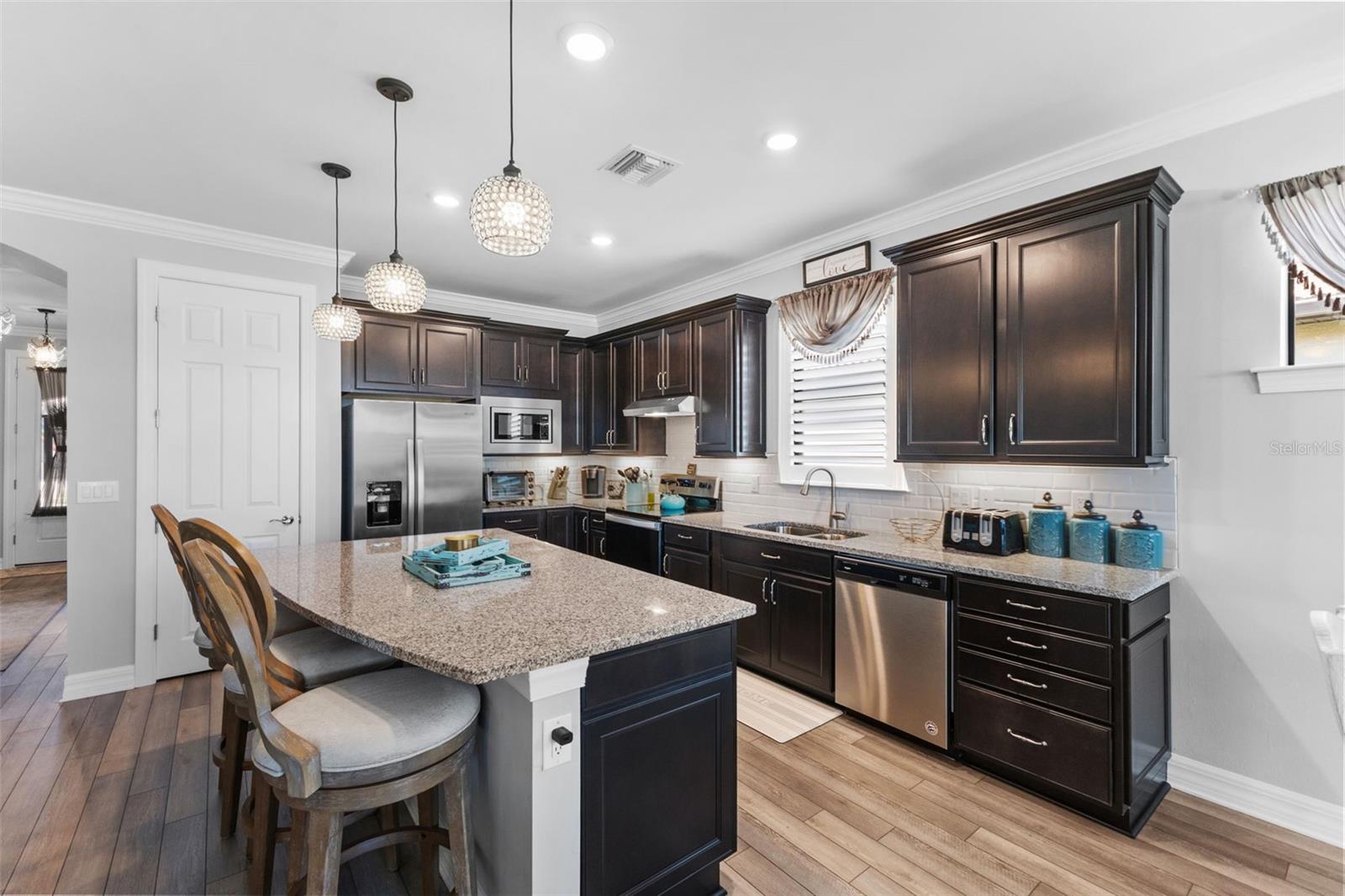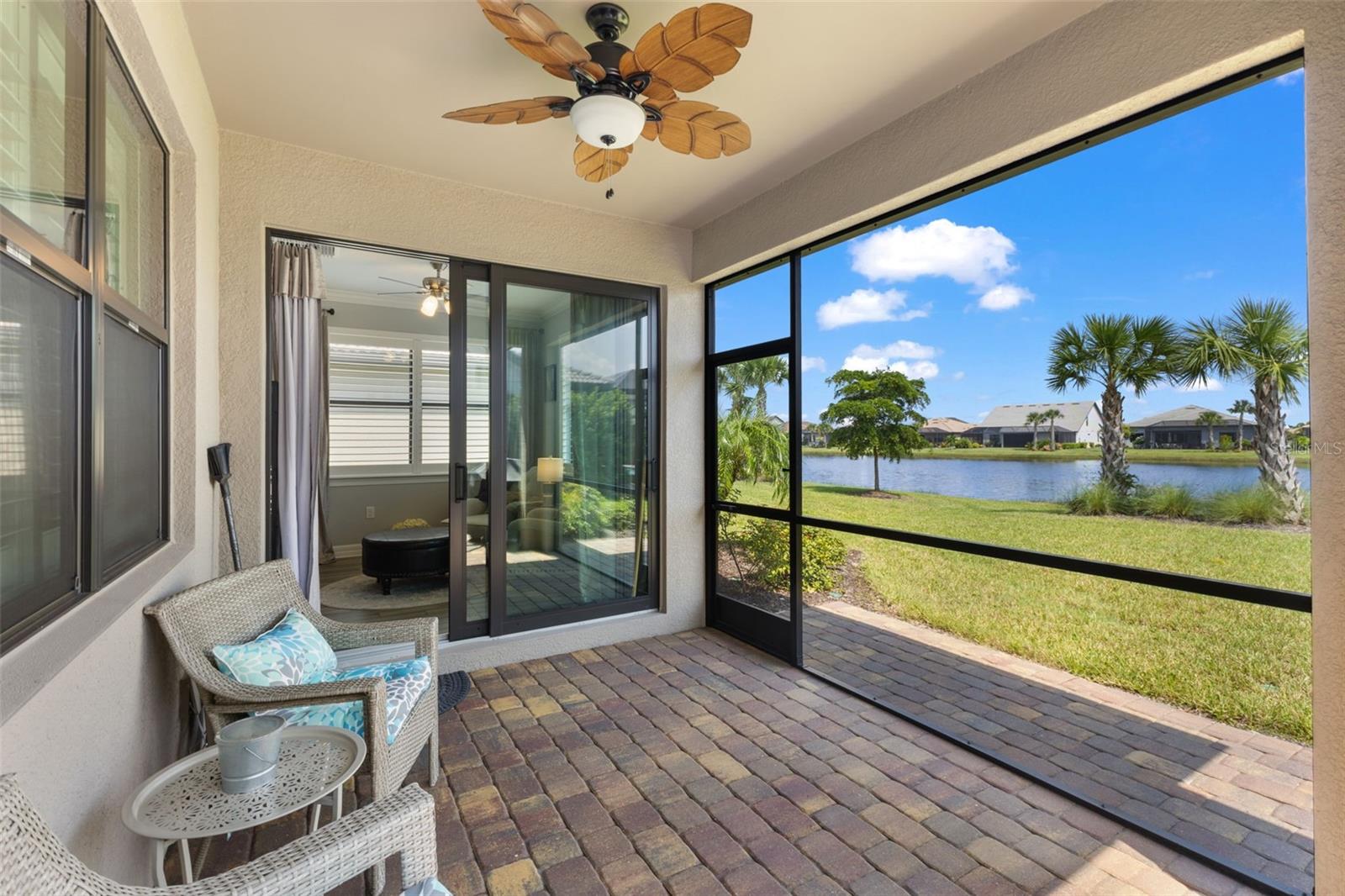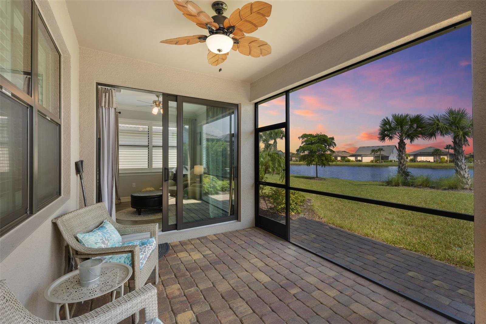MOVE RIGHT IN TO THIS IMPECCABLE, FULLY FURNSIHED SINGLE FAMILY HOME IN POPULAR ISLANDWALK! This stunning lakefront home was just built in 2021 and has barely been lived in! This home shows and looks like a model home, nothing to do but bring your suitcase! As you enter through the screened front entry you are greeted with tall ceilings, crown molding, and lovely plank flooring. Built by Divosta homes this upgraded Abbeyville model offers plantation shutters, 8 foot doors, granite counters, upgraded lighting and ceiling fans throughout, extended sunroom, and so much more. The gourmet kitchen features stainless appliances, an oversized island, 42 inch soft close cabinets, and a lovely backsplash. The primary suite has a huge walk in closet and the bathroom boasts a double vanity with granite counters. Even the garage is large, clean, and organized with a sink and fridge! It features squeaky clean epoxy floors and a keypad for easy entry. The extended covered and screened lanai overlooks the lovely lake, what better place to enjoy your morning coffee. The large laundry room has built in cabinets and a sink! This concrete/block home is located in a X flood zone requiring no additional flood insurance and hurricane impact windows providing additional peace of mind. Islandwalk offers the true Florida resort lifestyle. This maintenance free (lawn care included), gated community provides a 24 hour guard. Islandwalk is well established with lush landscaping and no need to wait for the amenities to be built. This community features: 8 Har Tru Tennis Courts; 12 Pickleball Courts; 2 Resort and Clubhouse Pools and Spas; 8 Bocce Courts; 2 Fitness Centers with Movement and Massage Rooms; a Library; a Community Room; an Arts and Crafts Room; Catering Kitchens; Barbeque Grills; and 2 Fire pits!! Don't miss out on calling this fully furnished home yours.