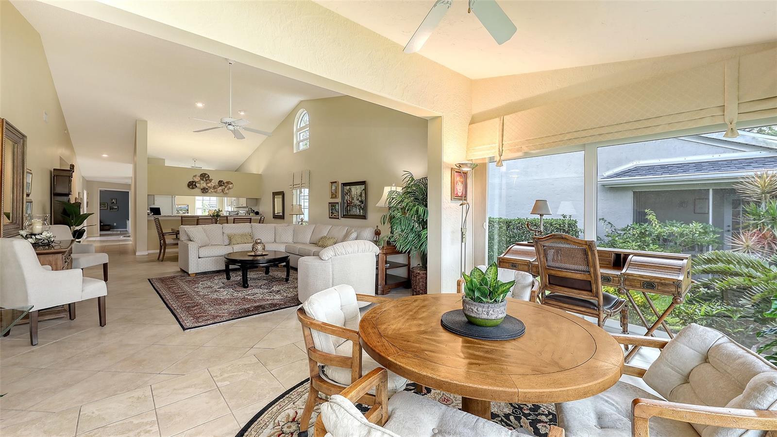 Welcome to your new lifestyle in Sarasota in this inviting and spacious villa, beautifully situated on the No.8 fairway of the Champs course and just blocks away from the renowned Palm Aire CC. Step inside this two-bedroom/two-bath plus den with vaulted ceilings and an open concept floor plan. Hurricane windows and doors. New roof & HVAC 2024. Water heater 12/2022. Residents of Club Villas II enjoy fantastic community amenities, including a swimming pool, a clubhouse with social events and exercise classes. Additionally, just a street away, the Palm Aire Country Club offers a variety of optional membership plans, ranging from social and fitness to golf. As a member-owned, full-service country club, Palm Aire features two premier golf courses, tennis and pickleball courts, a restaurant, banquet facilities and a new outdoor entertainment area, all designed for an exceptional lifestyle. In Palm Aire the use of your own golf cart is allowed. Located just minutes from UTC Mall, Sarasota airport, fine dining, and Sarasota's vibrant downtown, this residence is also within easy reach of the world-renowned Siesta Key and Lido Beach. Experience the perfect combination of privacy, luxury and convenience.