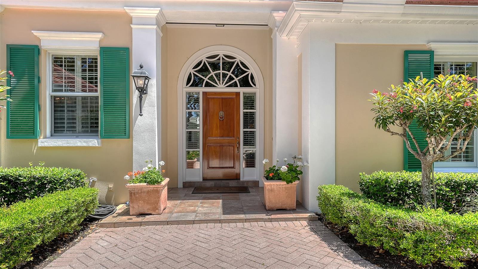 Exterior: Awning(s), Courtyard, French Doors, Garden, Hurricane Shutters, Lighting, Private Mailbox, Rain Gutters, Sprinkler Metered