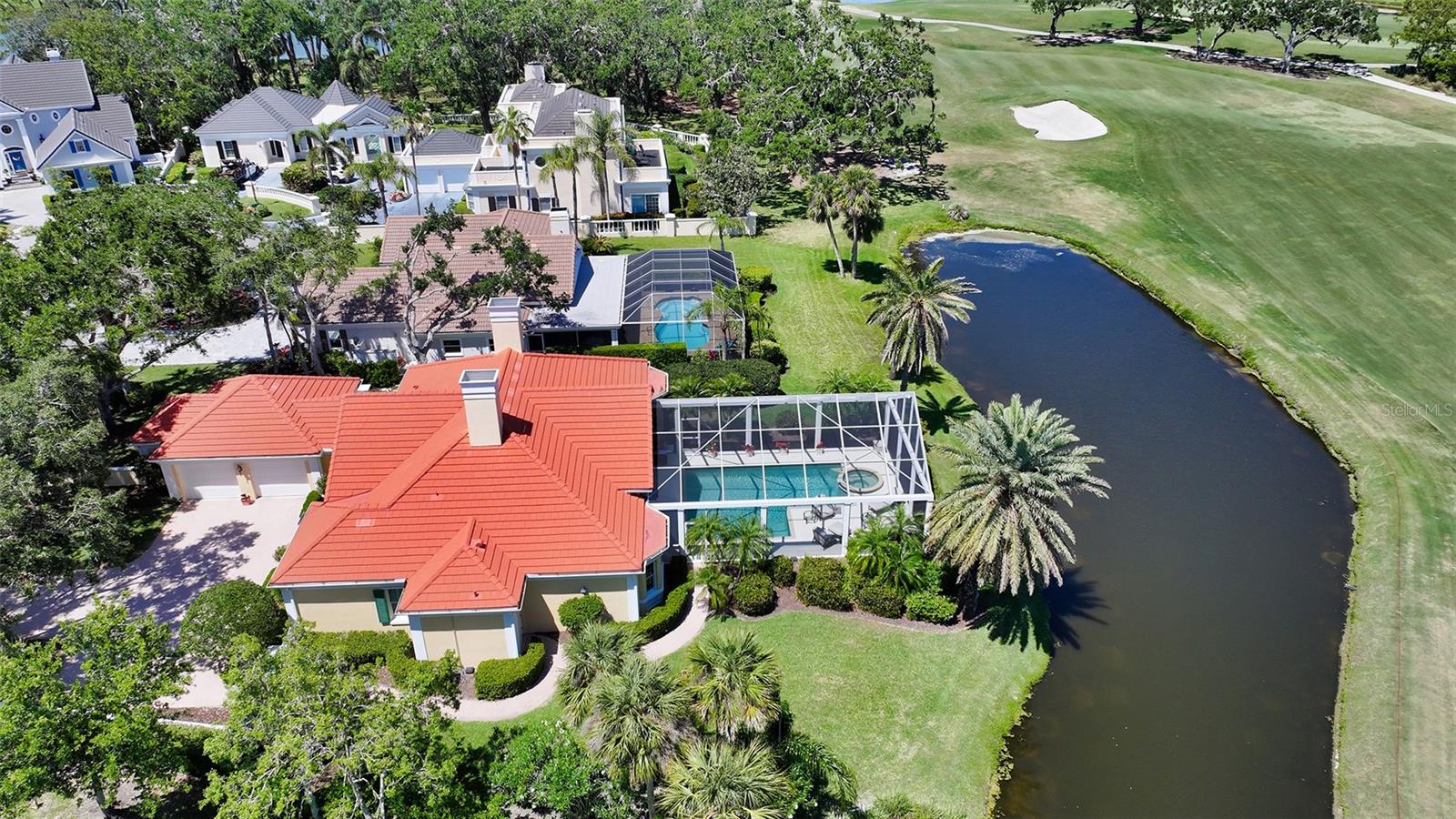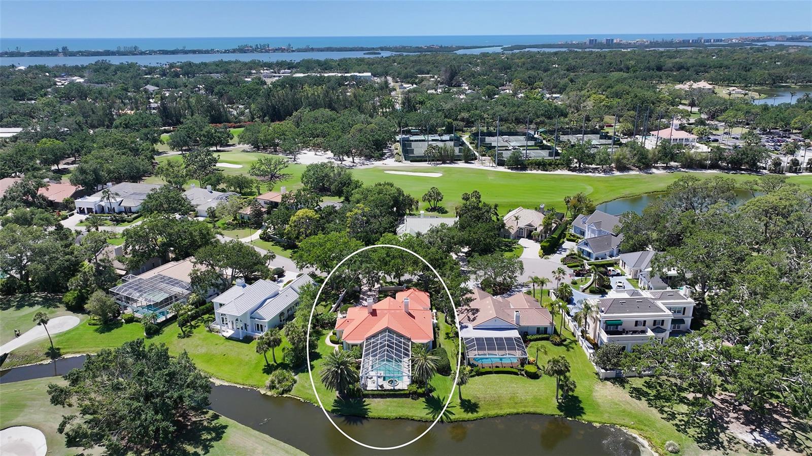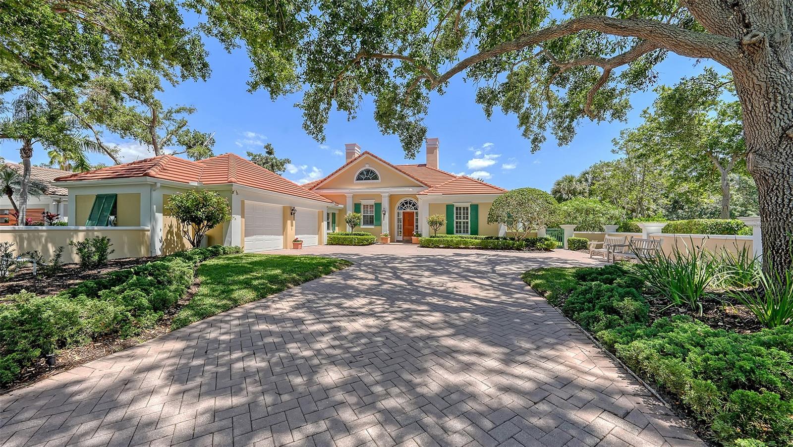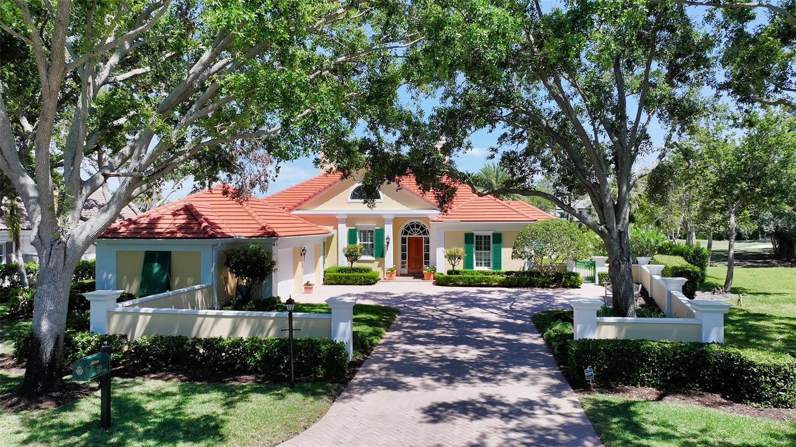 Experience the unparalleled charm and convenience of this golf course home in The Oaks Club, the country club community designed by noted Sarasota architect Bo MacEwen. 228 Saint James Park is an original Bo MacEwen design, is located on the leafy and quiet Saint James Park cul-de-sac, and directly overlooks the opening hole of the Heron golf course. This single-floor three-bedroom, two-and-a-half bath will captivate you from the moment you step inside with its open floor plan, high, coffered ceilings with extensive crown moldings, and generous French doors providing wonderful lighting, beautiful views to the lanai, swimming pool, spa, and the Heron golf course itself. 228 provides mahogany flooring in most areas, and a completely redesigned and updated kitchen with quartz countertops, Sub-Zero refrigerator, wine refrigerator, cooktop, microwave, two beverage-cooling drawers, center island, custom cabinetry, and walk-in pantry. The great room is perfect for entertaining and flows seamlessly onto the lanai that overlooks Heron #1. The split floor plan has ensuite sleeping and bath areas on each side of 228: the master suite on the north side of the home features a completely remodeled spa-like bath and soaking tub, separate glassed-in shower, stylish lighting, and a generous, custom walk-in closet. On the south side of 228 is the ensuite guest area with the spacious second bedroom and fully renovated guest bath. The third bedroom is on this south side of the home as well, and is currently being used as the residents' office, which enjoys pleasant, direct views of Heron #1 also and direct access to the lanai and pool. Numerous details associated with this home a two-car garage with epoxy floor, storage areas, and refrigerator/freezer, French doors, plantation shutters, newer roof (2020), plantation shutters, hurricane shades, walled-in motor court, and new bay windows by Pella. Saint James Park is the residential area closest to the athletic facilities of The Oaks Club, so SJP residents can easily walk or bike to the tennis courts, pickleball courts, Well-Fit Center, or golf pro shop. Residents enjoy both casual and fine dining, as well as a social atmosphere that encourages all to stay engaged in all that The Oaks Club offers. For those electing golf memberships, the ability to play the two courses here is immediate....no waiting period! And The Oaks Club has been designated a Platinum Club of America and an Emerald Club, signifying its standing among the finest country clubs in Florida and the nation. Schedule a showing today!
