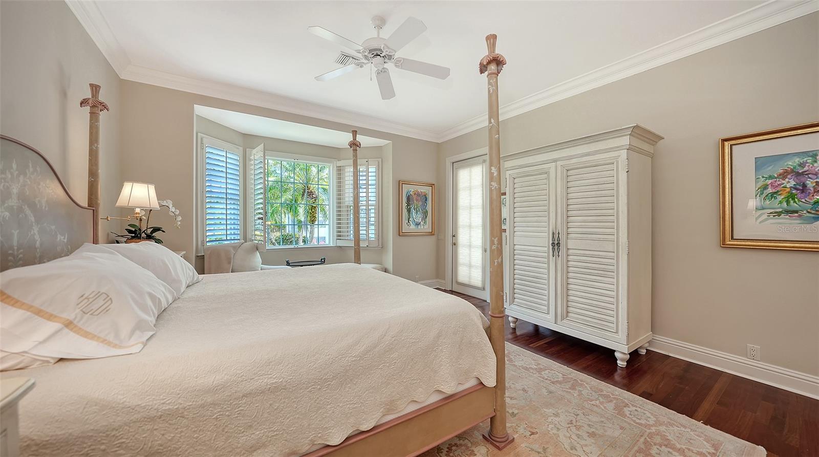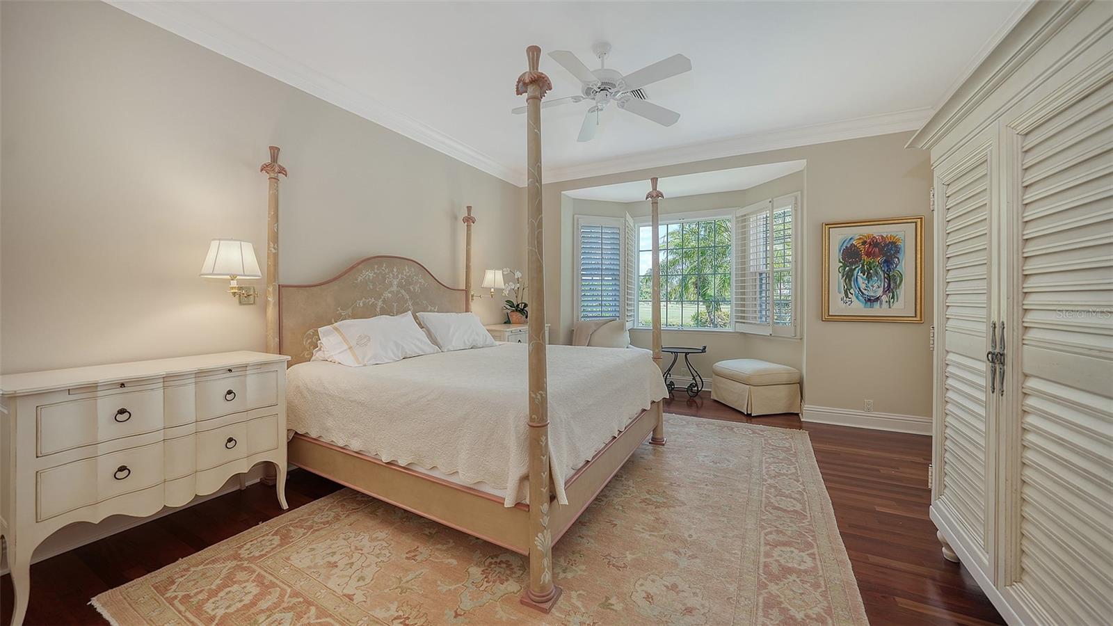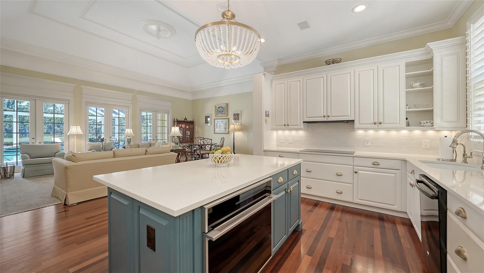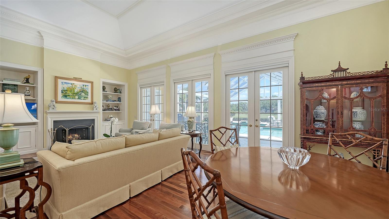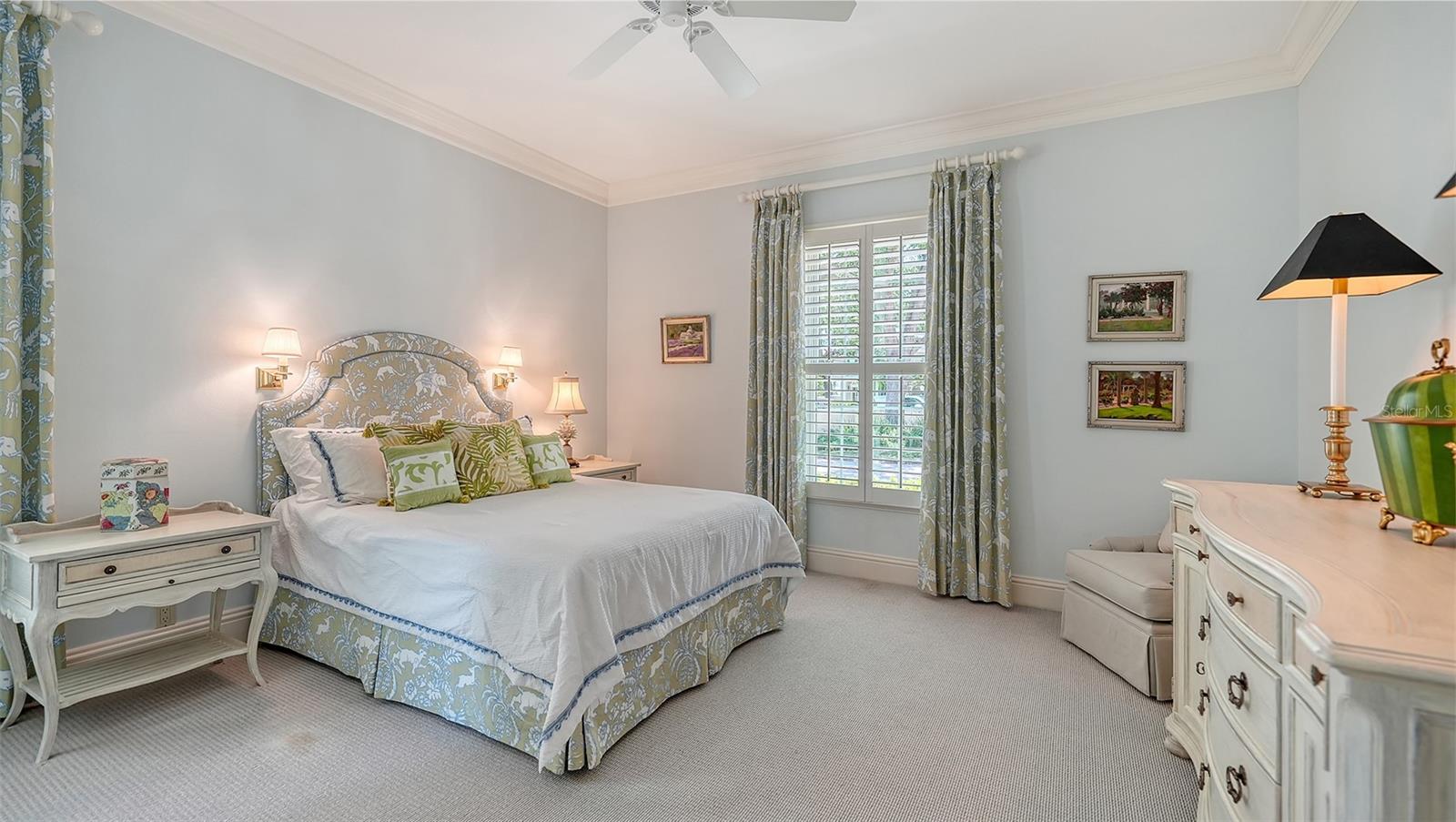 Experience the unparalleled charm and convenience of this golf course home in The Oaks Club, the country club community designed by noted Sarasota architect Bo MacEwen. 228 Saint James Park is an original Bo MacEwen design, is located on the leafy and quiet Saint James Park cul-de-sac, and directly overlooks the opening hole of the Heron golf course. This single-floor three-bedroom, two-and-a-half bath will captivate you from the moment you step inside with its open floor plan, high, coffered ceilings with extensive crown moldings, and generous French doors providing wonderful lighting, beautiful views to the lanai, swimming pool, spa, and the Heron golf course itself. 228 provides mahogany flooring in most areas, and a completely redesigned and updated kitchen with quartz countertops, Sub-Zero refrigerator, wine refrigerator, cooktop, microwave, two beverage-cooling drawers, center island, custom cabinetry, and walk-in pantry. The great room is perfect for entertaining and flows seamlessly onto the lanai that overlooks Heron #1. The split floor plan has ensuite sleeping and bath areas on each side of 228: the master suite on the north side of the home features a completely remodeled spa-like bath and soaking tub, separate glassed-in shower, stylish lighting, and a generous, custom walk-in closet. On the south side of 228 is the ensuite guest area with the spacious second bedroom and fully renovated guest bath. The third bedroom is on this south side of the home as well, and is currently being used as the residents' office, which enjoys pleasant, direct views of Heron #1 also and direct access to the lanai and pool. Numerous details associated with this home a two-car garage with epoxy floor, storage areas, and refrigerator/freezer, French doors, plantation shutters, newer roof (2020), plantation shutters, hurricane shades, walled-in motor court, and new bay windows by Pella. Saint James Park is the residential area closest to the athletic facilities of The Oaks Club, so SJP residents can easily walk or bike to the tennis courts, pickleball courts, Well-Fit Center, or golf pro shop. Residents enjoy both casual and fine dining, as well as a social atmosphere that encourages all to stay engaged in all that The Oaks Club offers. For those electing golf memberships, the ability to play the two courses here is immediate....no waiting period! And The Oaks Club has been designated a Platinum Club of America and an Emerald Club, signifying its standing among the finest country clubs in Florida and the nation. Schedule a showing today!