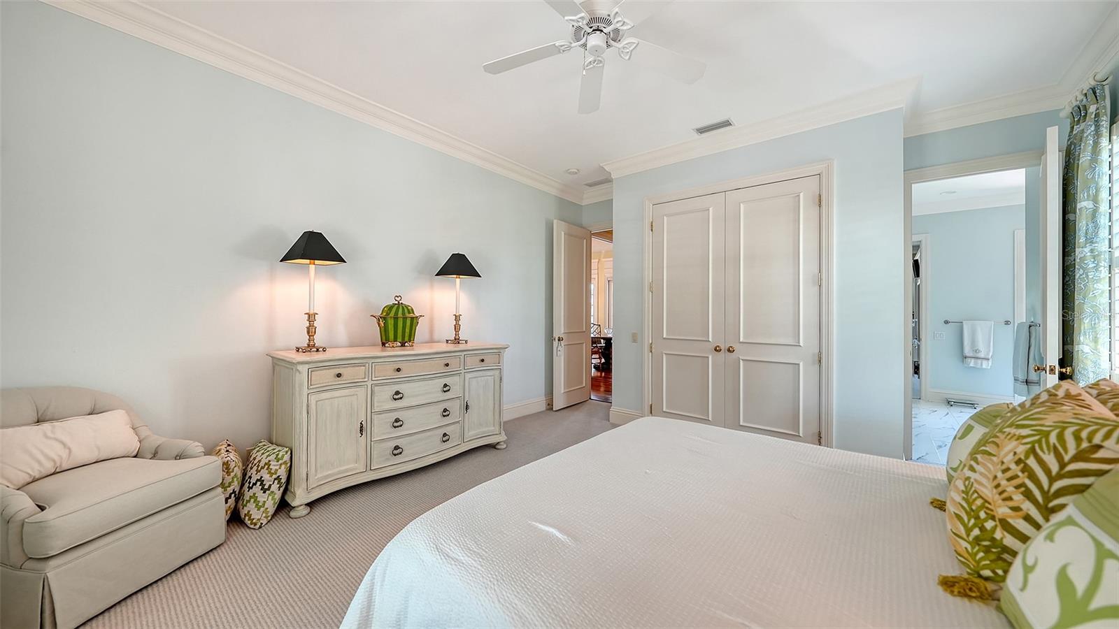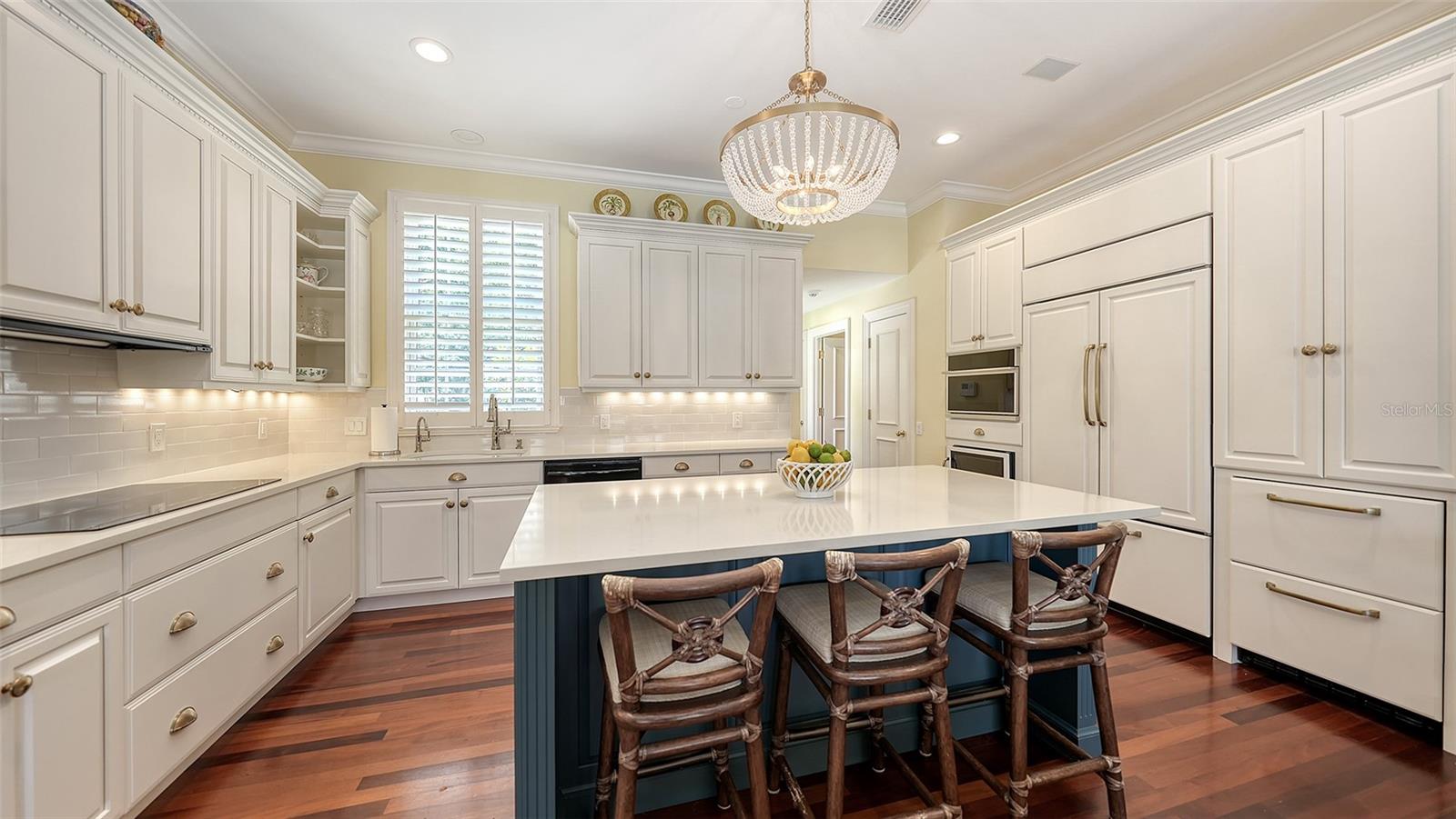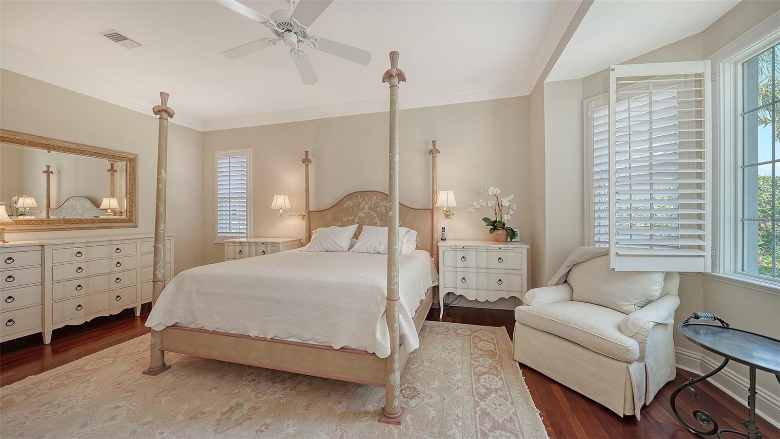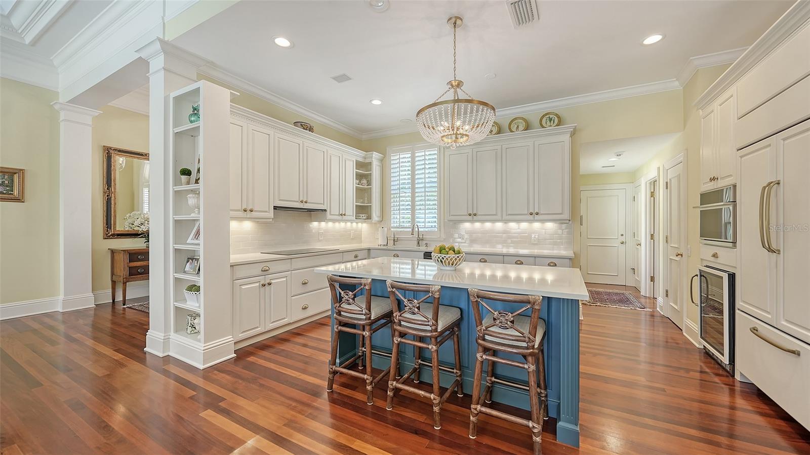 Experience the unparalleled charm and convenience of this golf course home in The Oaks Club, the country club community designed by noted Sarasota architect Bo MacEwen. 228 Saint James Park is an original Bo MacEwen design, is located on the leafy and quiet Saint James Park cul-de-sac, and directly overlooks the opening hole of the Heron golf course. This single-floor three-bedroom, two-and-a-half bath will captivate you from the moment you step inside with its open floor plan, high, coffered ceilings with extensive crown moldings, and generous French doors providing wonderful lighting, beautiful views to the lanai, swimming pool, spa, and the Heron golf course itself. 228 provides mahogany flooring in most areas, and a completely redesigned and updated kitchen with quartz countertops, Sub-Zero refrigerator, wine refrigerator, cooktop, microwave, two beverage-cooling drawers, center island, custom cabinetry, and walk-in pantry. The great room is perfect for entertaining and flows seamlessly onto the lanai that overlooks Heron #1. The split floor plan has ensuite sleeping and bath areas on each side of 228: the master suite on the north side of the home features a completely remodeled spa-like bath and soaking tub, separate glassed-in shower, stylish lighting, and a generous, custom walk-in closet. On the south side of 228 is the ensuite guest area with the spacious second bedroom and fully renovated guest bath. The third bedroom is on this south side of the home as well, and is currently being used as the residents' office, which enjoys pleasant, direct views of Heron #1 also and direct access to the lanai and pool. Numerous details associated with this home a two-car garage with epoxy floor, storage areas, and refrigerator/freezer, French doors, plantation shutters, newer roof (2020), plantation shutters, hurricane shades, walled-in motor court, and new bay windows by Pella. Saint James Park is the residential area closest to the athletic facilities of The Oaks Club, so SJP residents can easily walk or bike to the tennis courts, pickleball courts, Well-Fit Center, or golf pro shop. Residents enjoy both casual and fine dining, as well as a social atmosphere that encourages all to stay engaged in all that The Oaks Club offers. For those electing golf memberships, the ability to play the two courses here is immediate....no waiting period! And The Oaks Club has been designated a Platinum Club of America and an Emerald Club, signifying its standing among the finest country clubs in Florida and the nation. Schedule a showing today!