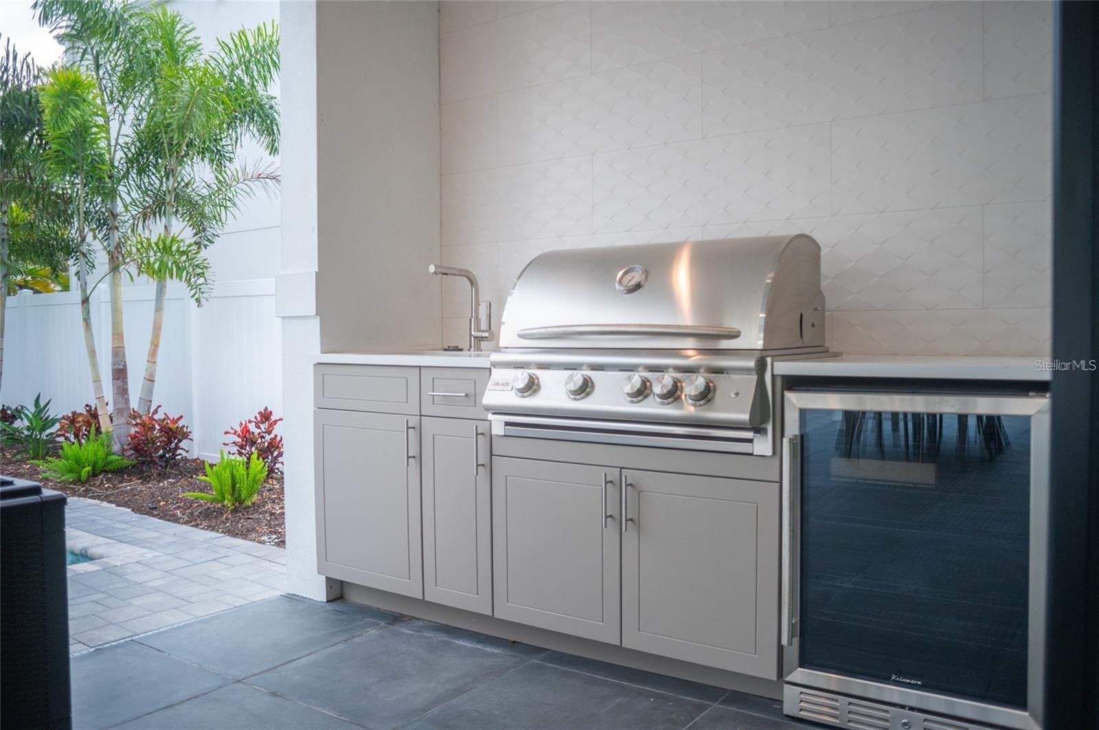 Exterior: Awning(s), Balcony, Lighting, Outdoor Grill, Outdoor Kitchen, Private Mailbox, Rain Gutters, Sidewalk, Sliding Doors, Sprinkler Metered
