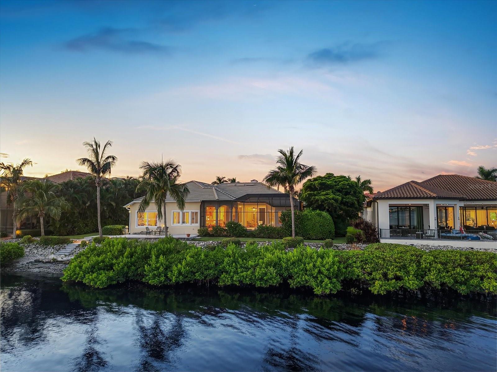 Imagine a picturesque John Canon home nestled within the exclusive gated community of the Island at Riviera Dunes, positioned on a double lot with expansive water frontage on the beautiful Manatee River. This luxurious residence offers breathtaking views that stretch across the horizon, showcasing water views and the beauty of the surrounding landscape. Designed with meticulous attention to detail, the home embodies a blend of elegance and modern comfort. Its architecture is characterized by clean lines, large windows, and spacious outdoor living areas that seamlessly merge with the interior spaces. The exterior features pristine landscaping, enhancing the property's allure and creating a tranquil oasis. Inside, the interior spaces are thoughtfully crafted with high-end finishes and sophisticated dcor. From the gourmet kitchen, and the inviting living areas, to the tranquil primary ensuite, every room exudes a sense of luxury and warmth. Floor-to-ceiling windows frame stunning views from almost every room allowing the natural light to illuminate the space throughout the day. One of the most coveted features of this home is its deeded 62-foot boat slip in the neighborhood marina located right across the street from the residence. Not only does this deep-water hurricane shelter basin provide the deepest and most secure harborage in the area, but it also ensures direct access to Tampa Bay, the Intercoastal Waterway and the Gulf of Mexico. This prime location offers endless possible boating adventures for the avid yachter. The outdoor living spaces are designed for relaxation and entertainment, a sparkling pool, hot tub and outdoor kitchen create a fabulous retreat. Southern exposure at the back of the property provides steady warmth and light without the blazing heat of direct morning and afternoon exposure. Watch the sunset and sunrise from the private waterfront patio. Launch paddle boards and kayaks from the private beach or wade in and cast a line from your private beach area. Whether enjoying a quiet evening or hosting gatherings with friends and family, the outdoor areas offer the ideal setting for every occasion. Located within a private gated community, residents of the Island at Riviera Dunes enjoy exclusive amenities and a sense of security, ensuring a peaceful and prestigious lifestyle. With its prime waterfront location, stunning views, and luxurious amenities, this John Cannon home epitomizes waterfront living at its finest, promising a lifestyle of unparalleled beauty and comfort