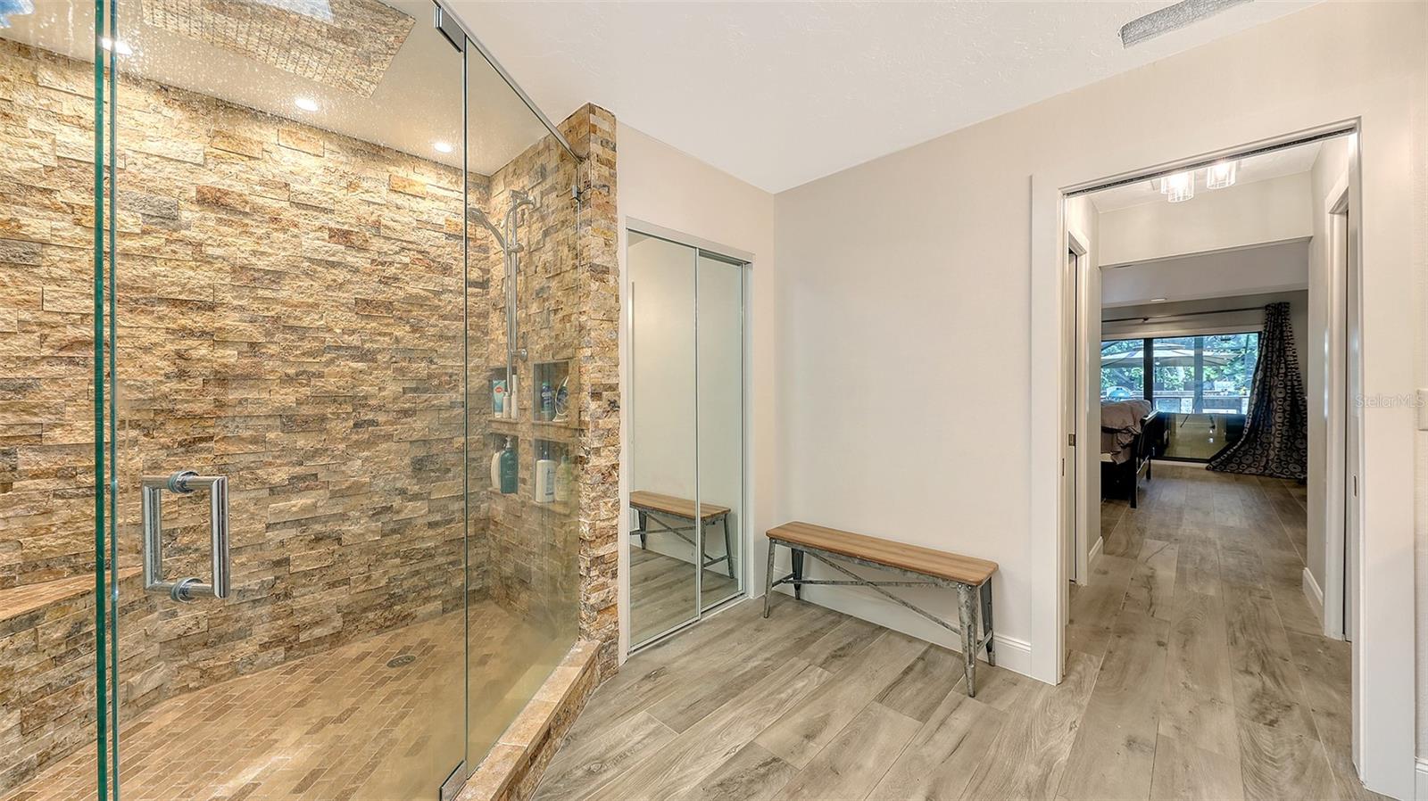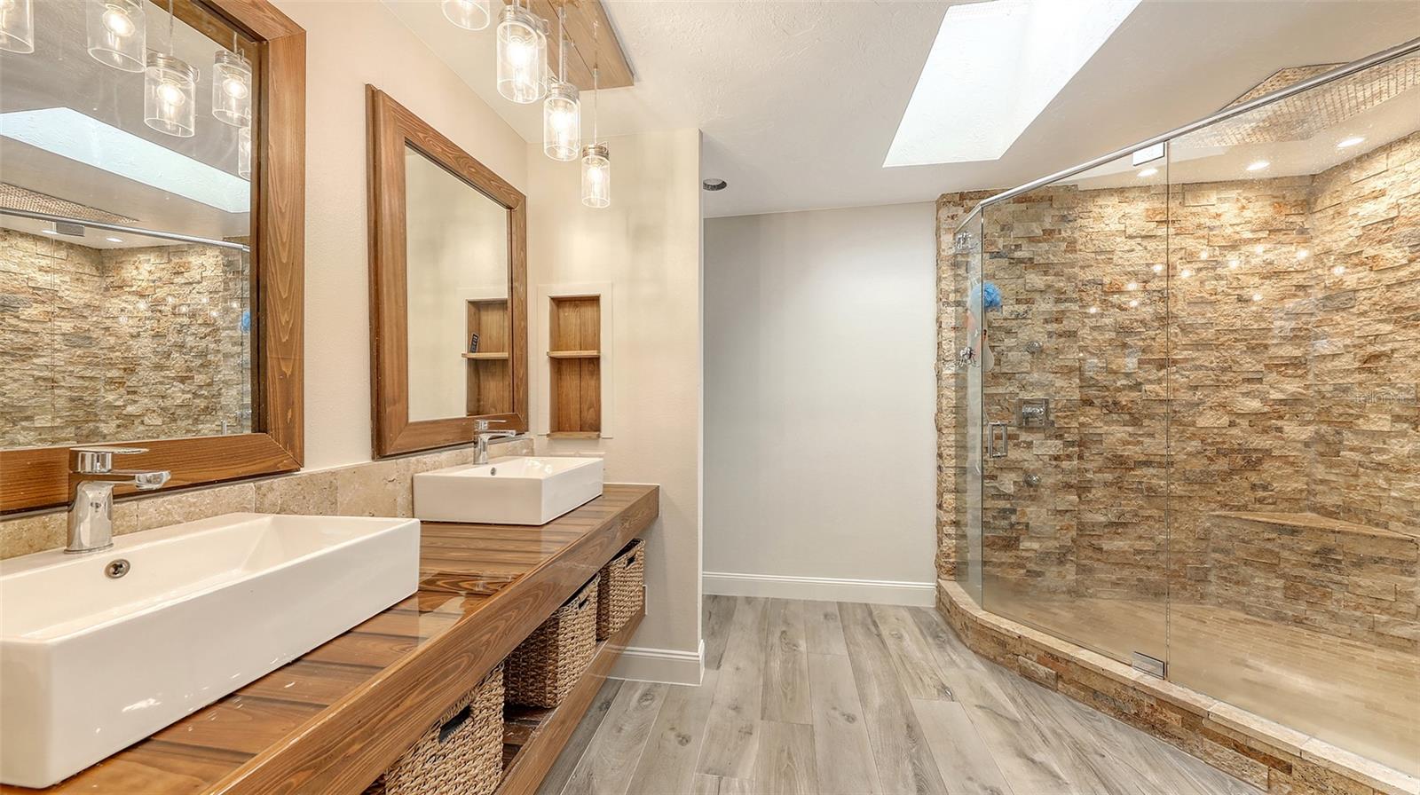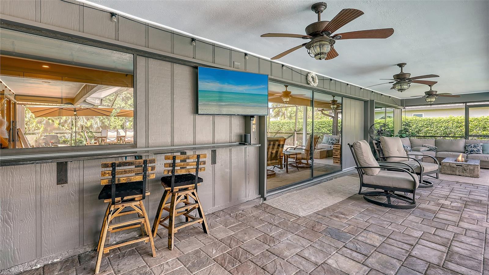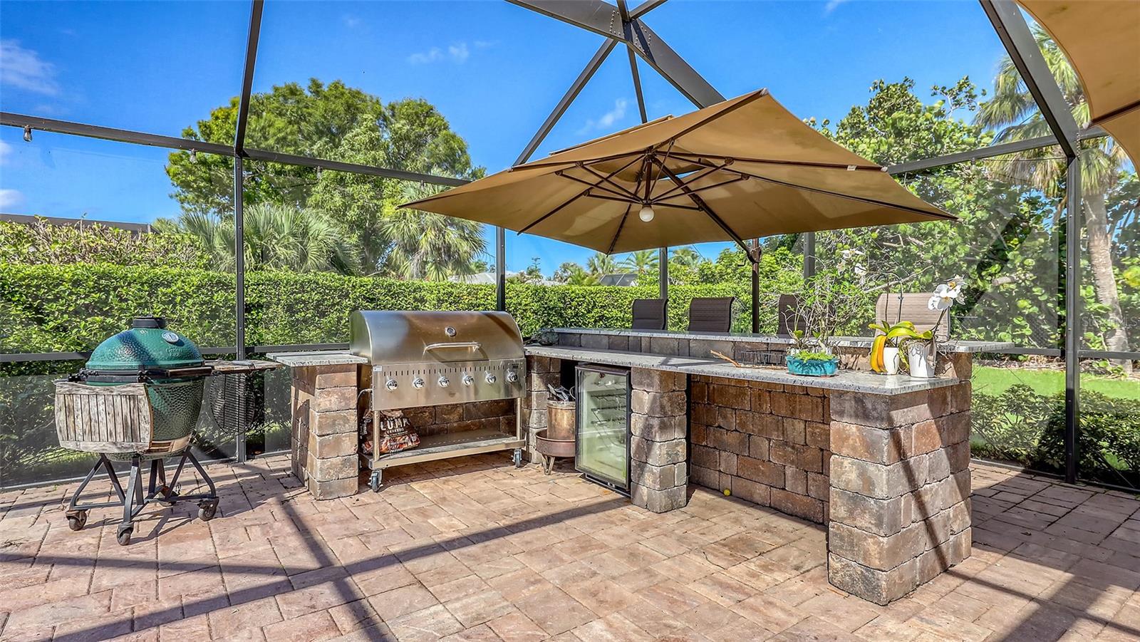 Exterior: Outdoor Kitchen, Outdoor Shower, Rain Gutters, Sidewalk